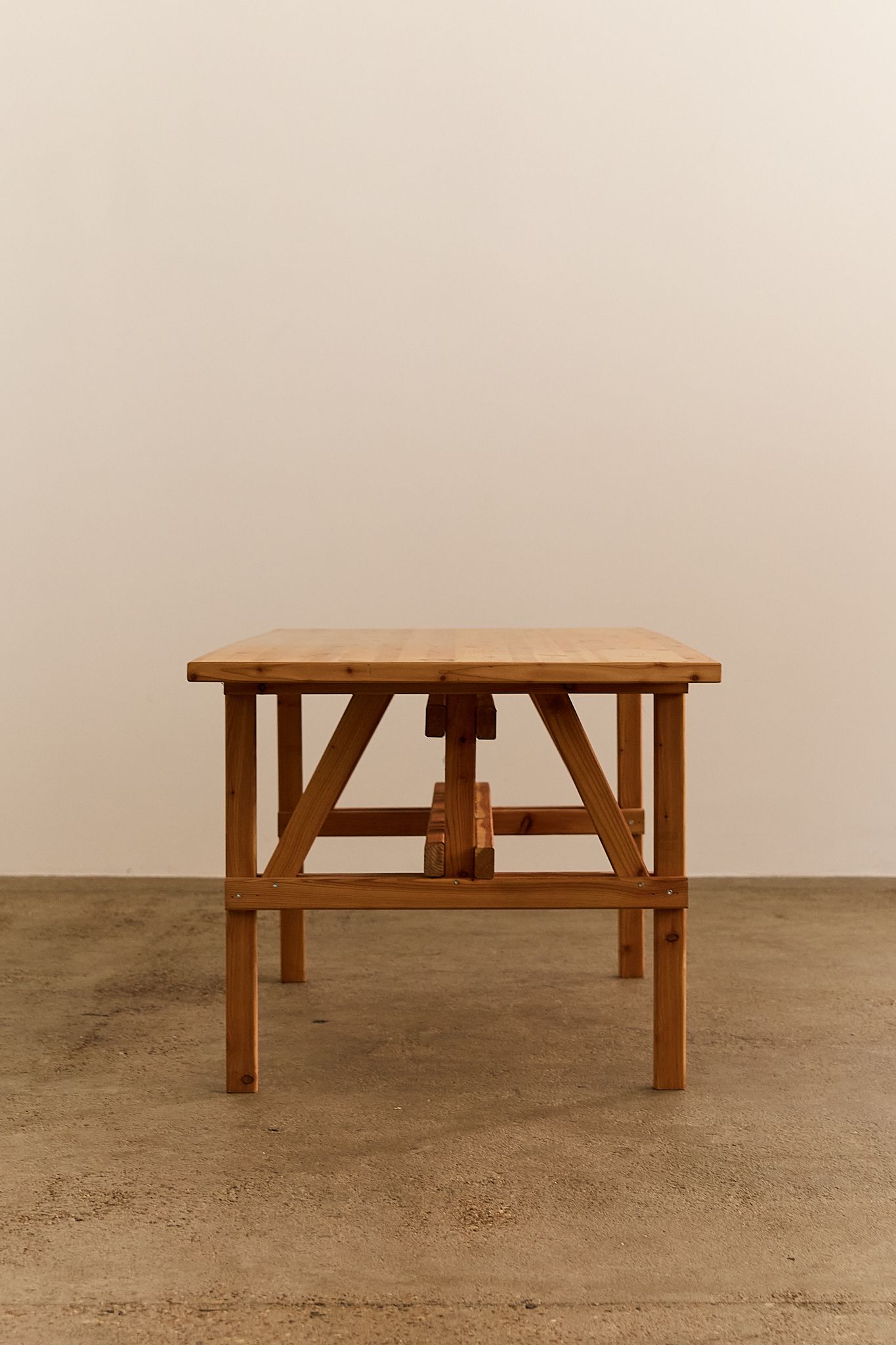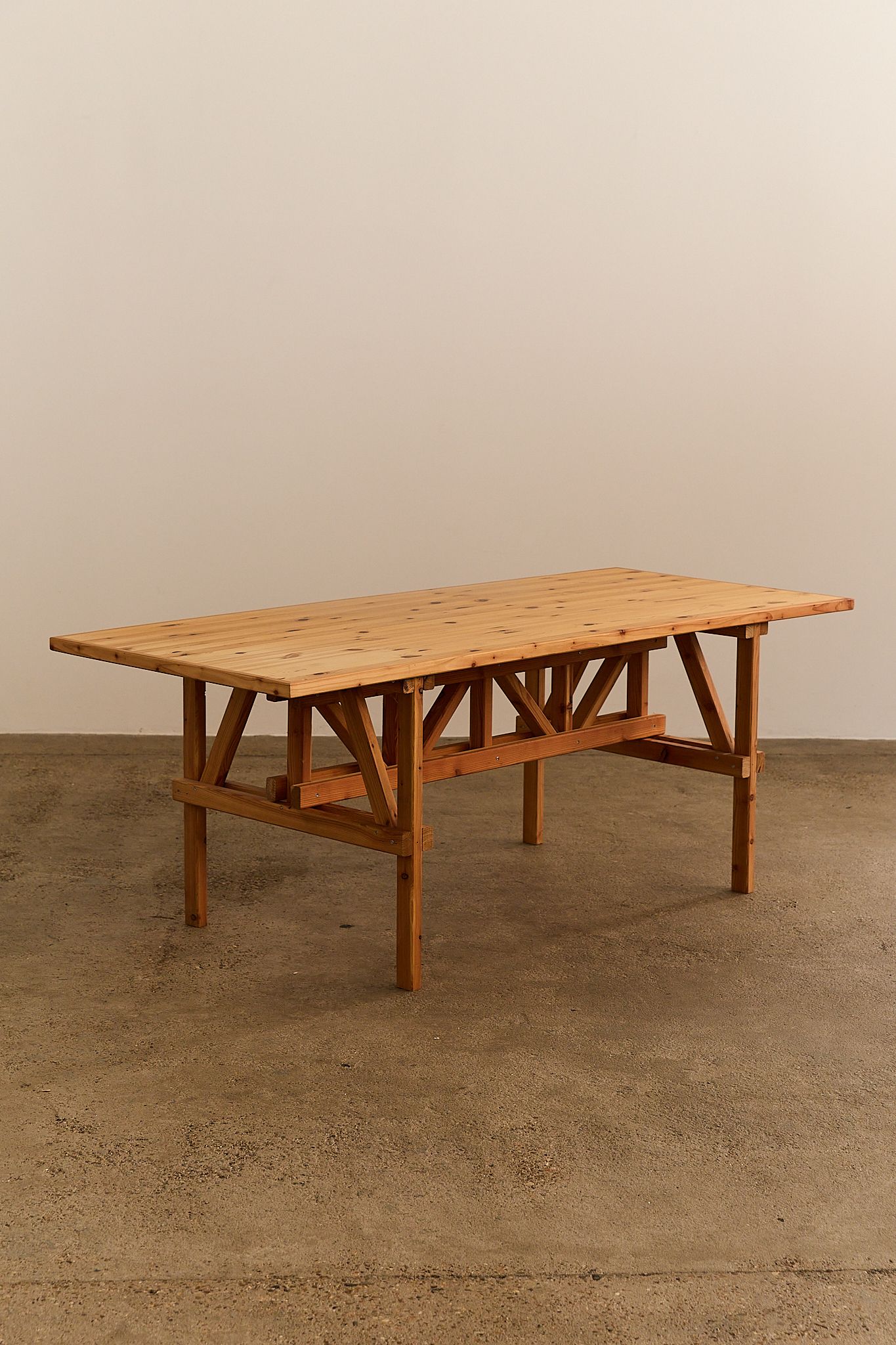 In 1974, the Italian designer Enzo Mari published 19 furniture designs that one could make by oneself in his book ‘Autoprogettazione?’, herein creating a milestone in the history of design. Built from Enzo Mari’s original plans for the ‘Tavolo-Rettangolare-Grid’, this pine wood table embodies his democratic design ethos. Part of the Autoprogettazione project, it reflects Mari’s vision of accessible, self-built furniture rooted in simplicity and function.