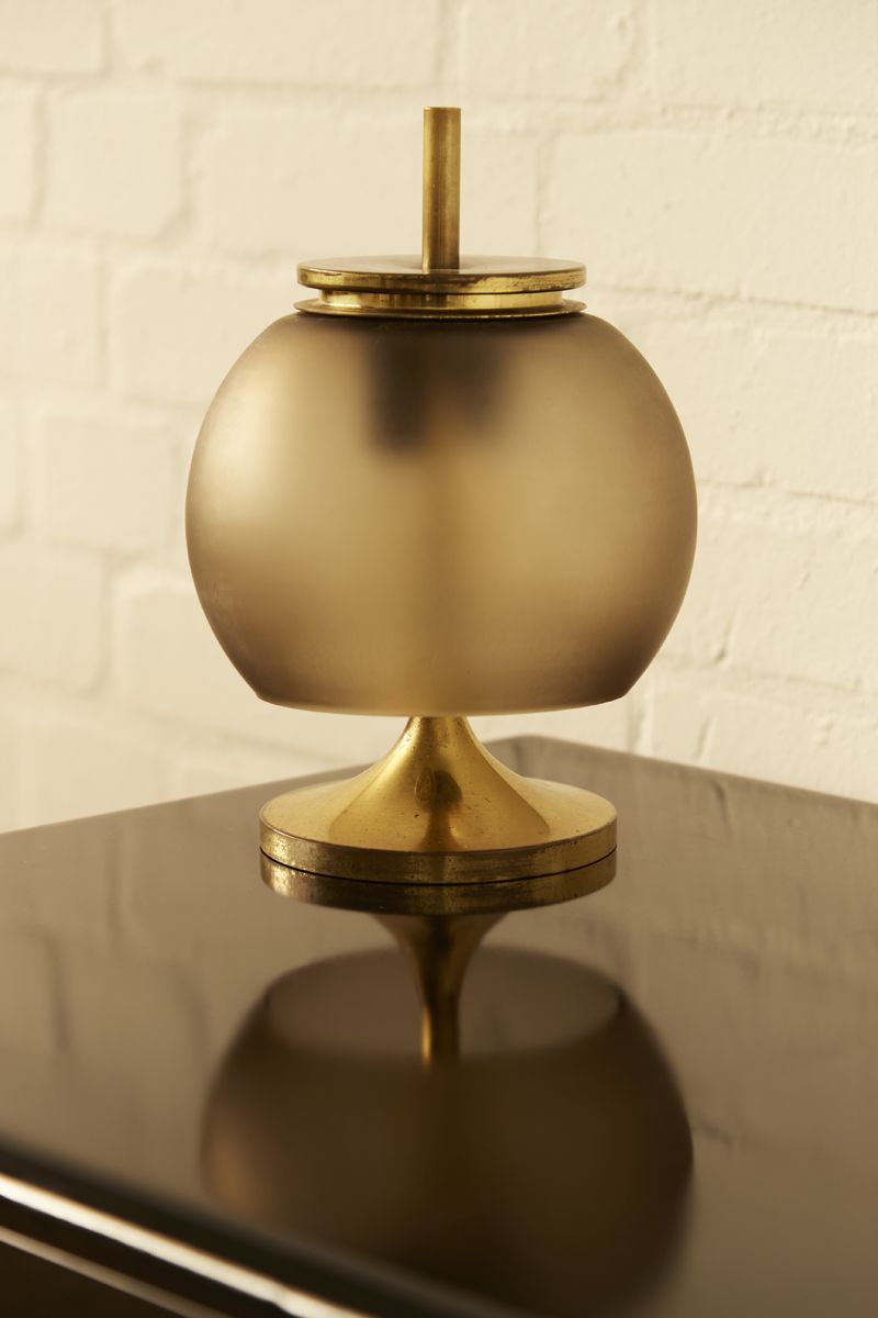 Nickel-plated brass structure with an etched glass diffuser. Produced by Artemide, Italy, 1961.