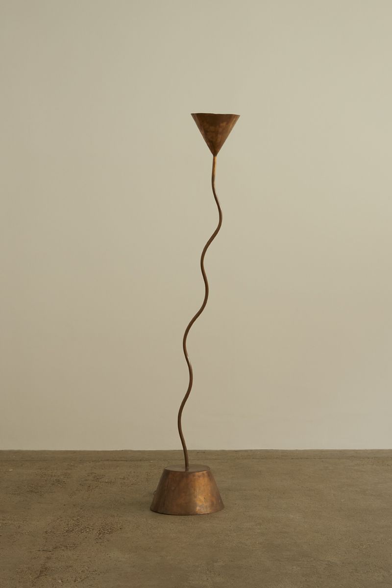 Handcrafted by an artisanal maker in Italy during the 1970s, this sculptural floor lamp features a gracefully curved design. Made entirely of copper, its patinated finish and organic form add a warm, elegant touch to any interior.