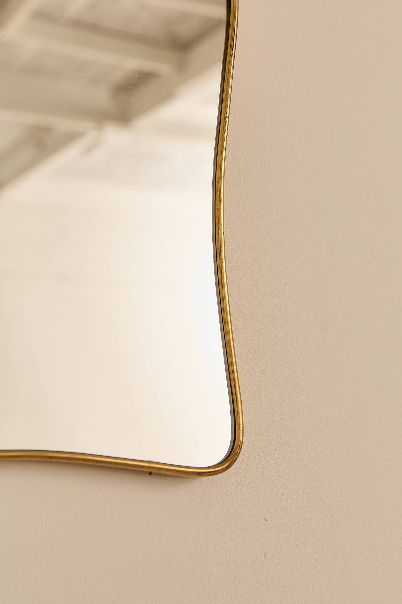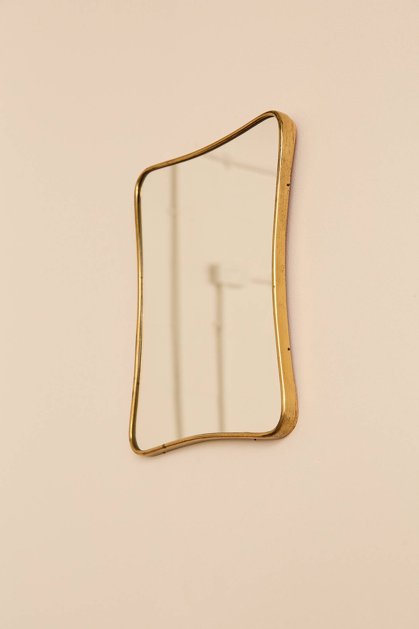 Featuring a gently curved rectangular form with a slim brass frame, this piece combines simplicity and elegance