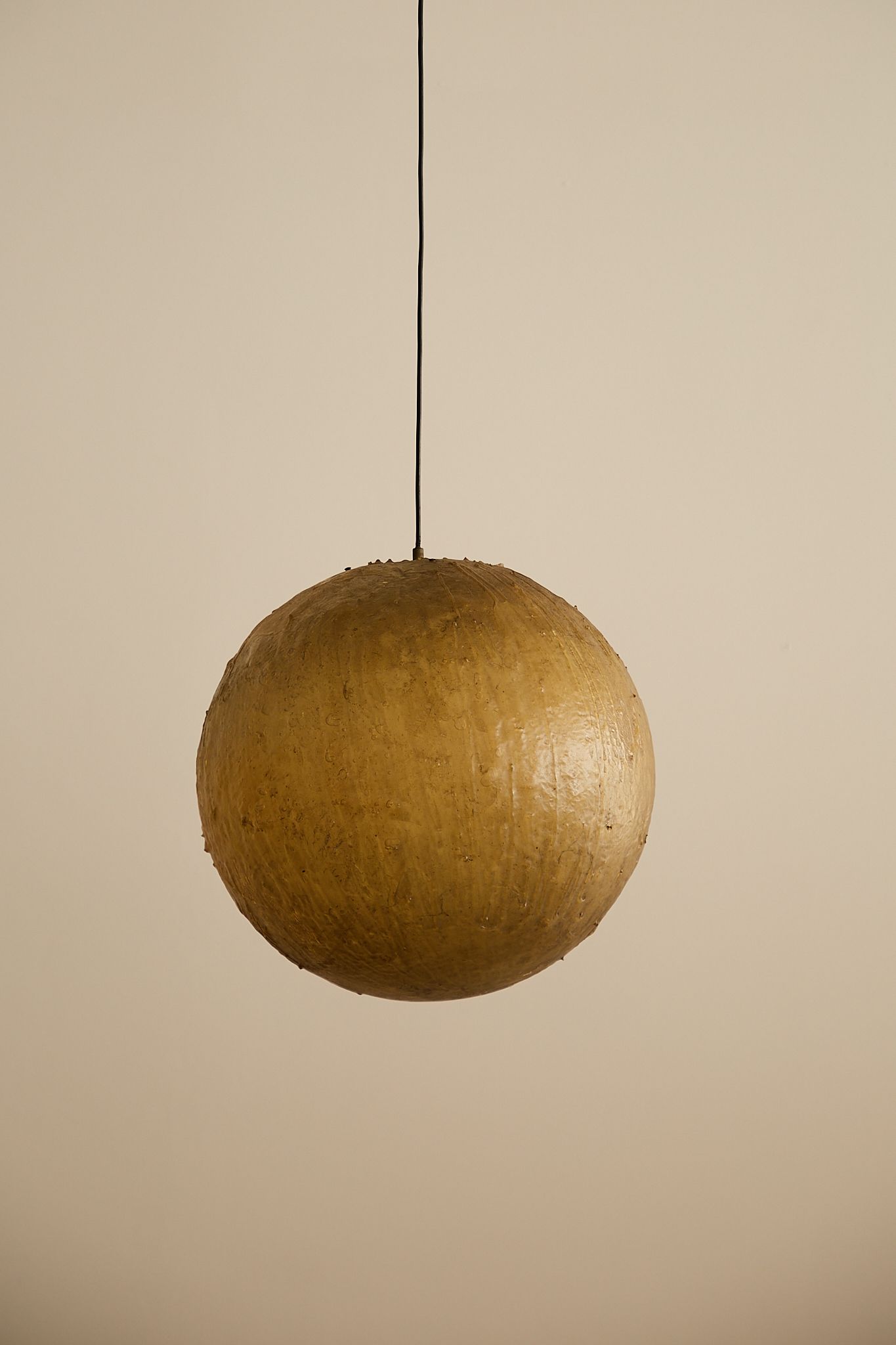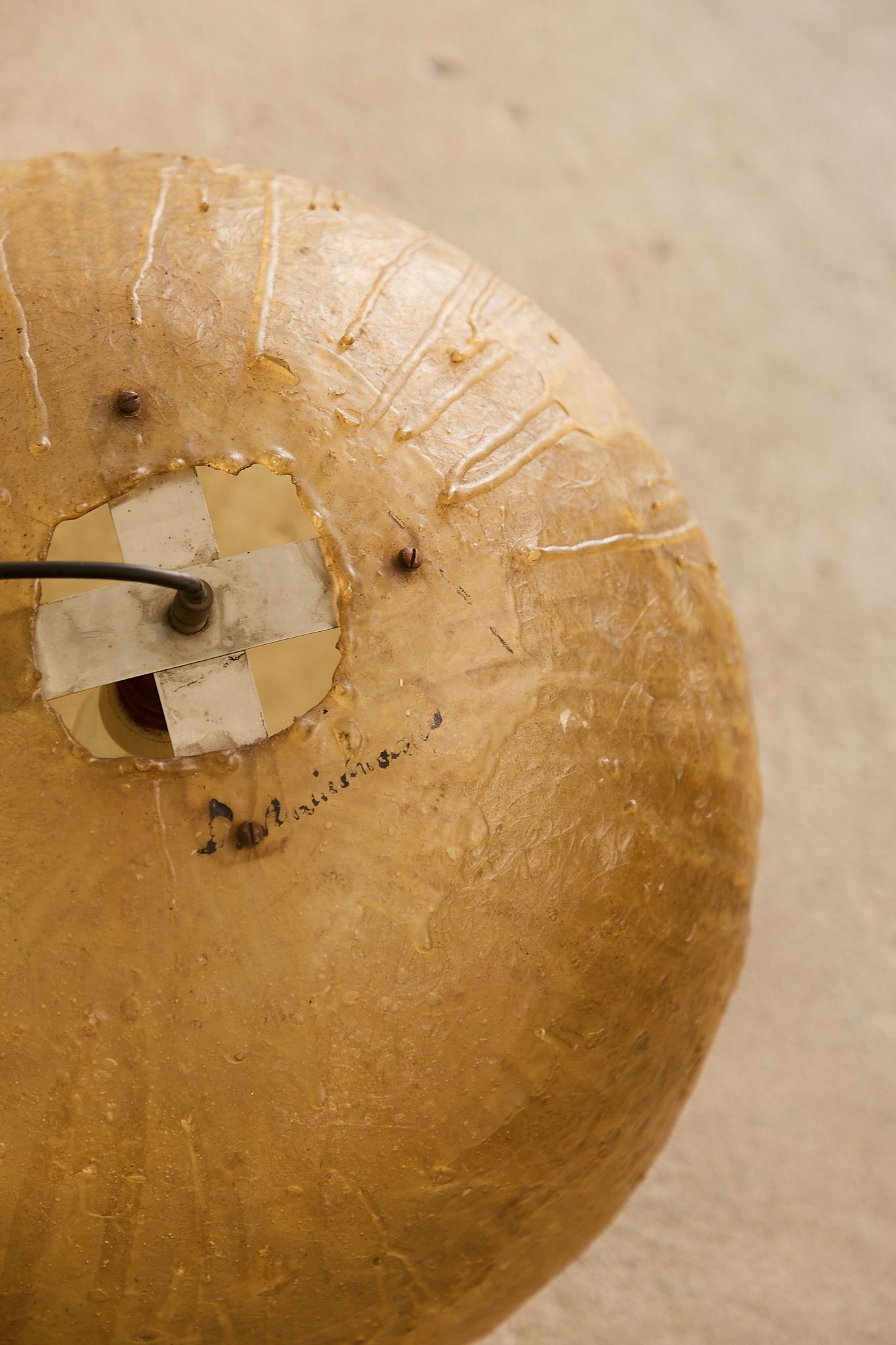 Italian fibreglass ceiling light, likely from the 1970s. Featuring a softly diffused glow and a sculptural form, this piece combines lightweight construction with a warm, ambient presence.