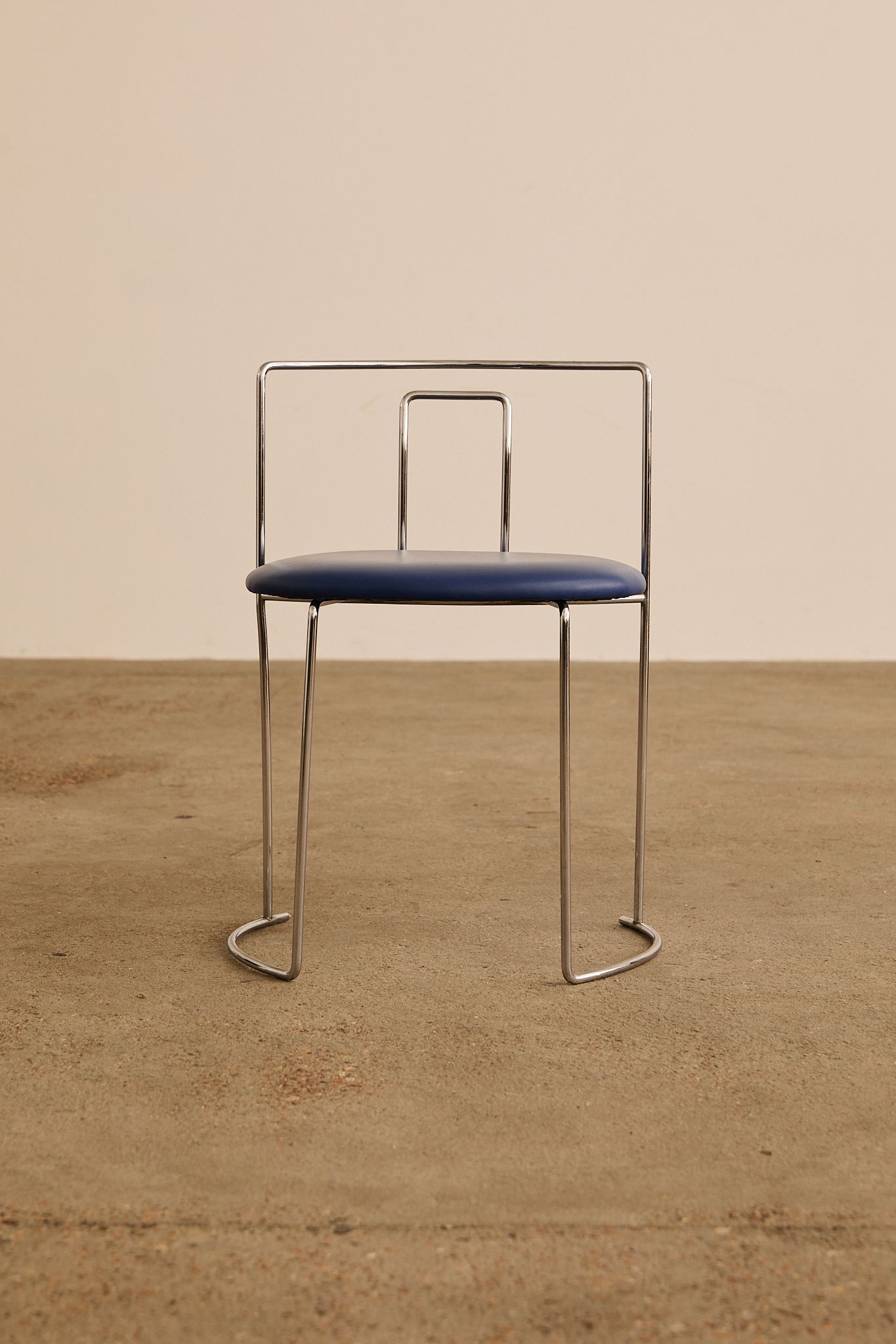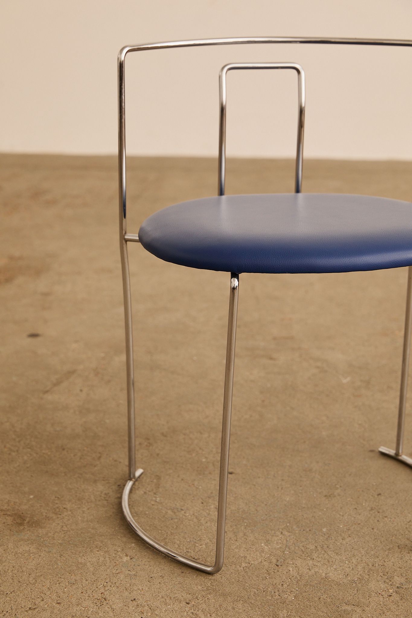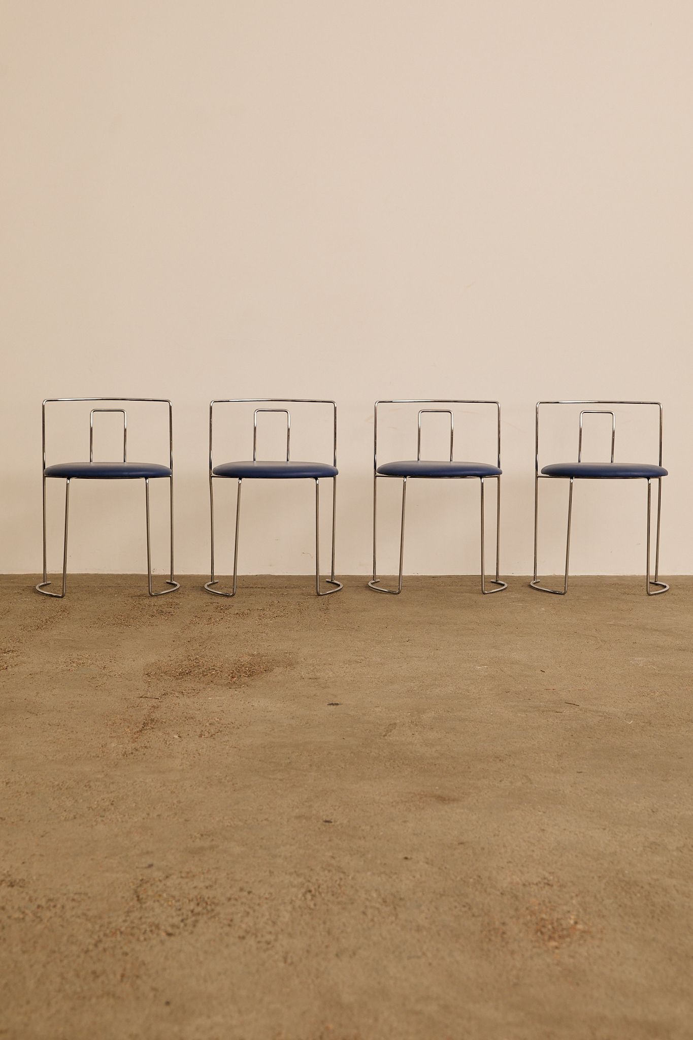 Iconic Italian design chairs from the 1970s, model “Gaja” by Kazuhide Takahama for Simon Gavina. Lightweight and elegant, featuring a delicate, slender steel frame with a clean architectural silhouette; designed to stack for easy, space-saving storage. Price is for the set. Reupholstery service available upon request.
