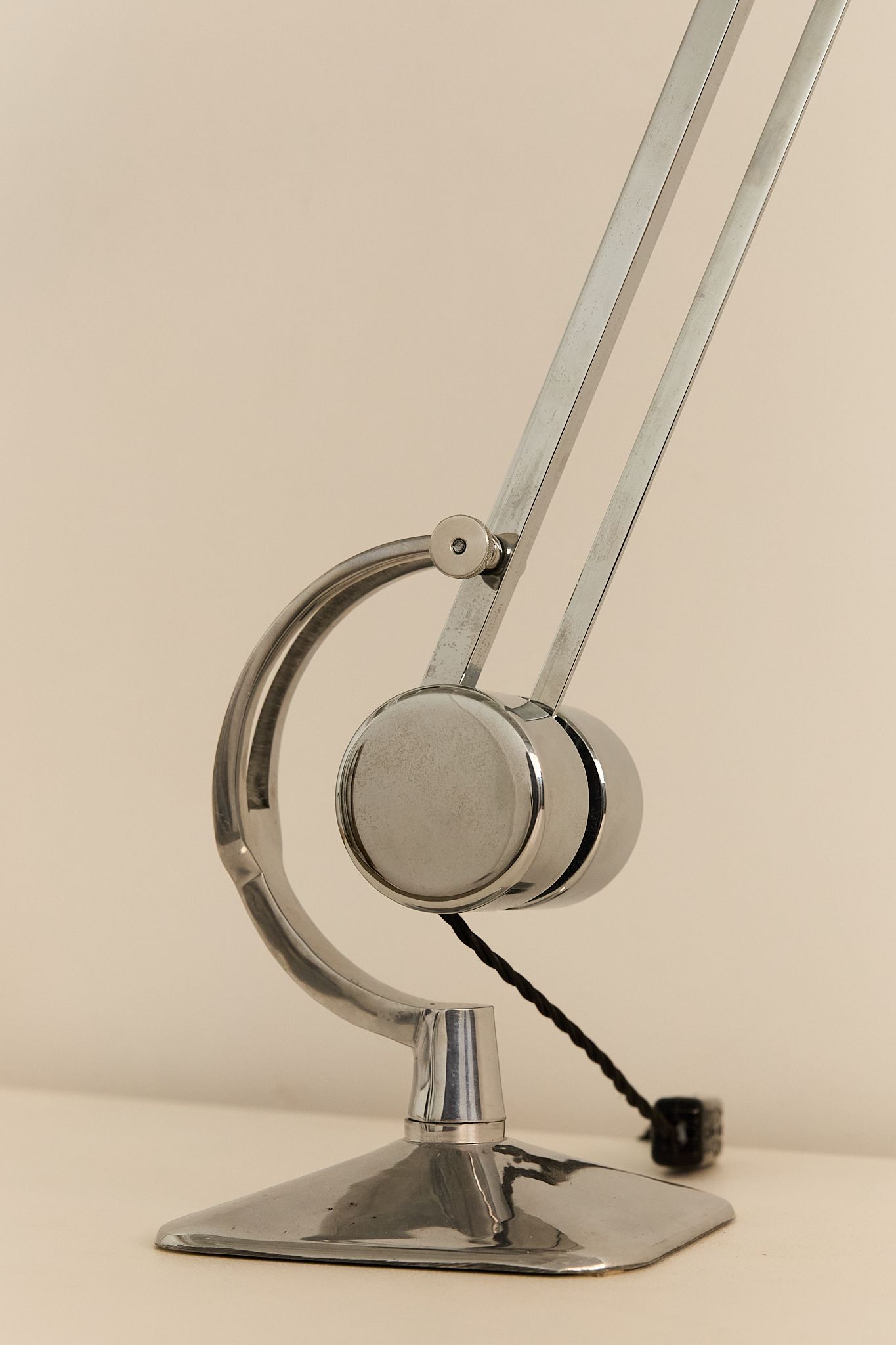 Adjustable chrome-plated frame with counterweight mechanism, allowing smooth movement and balance.