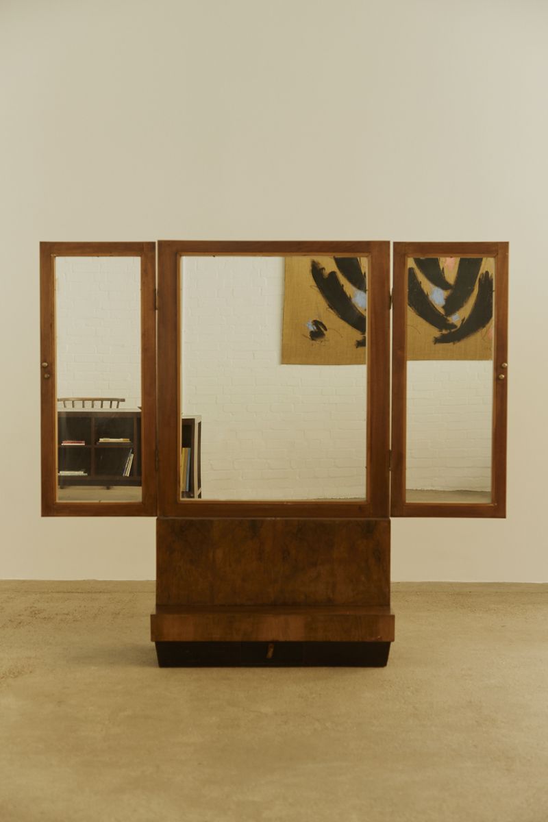 This stunning Italian Art Deco freestanding mirror is a true statement piece, combining elegance and functionality. Featuring three beautifully framed mirror elements, it offers a striking yet practical design.
