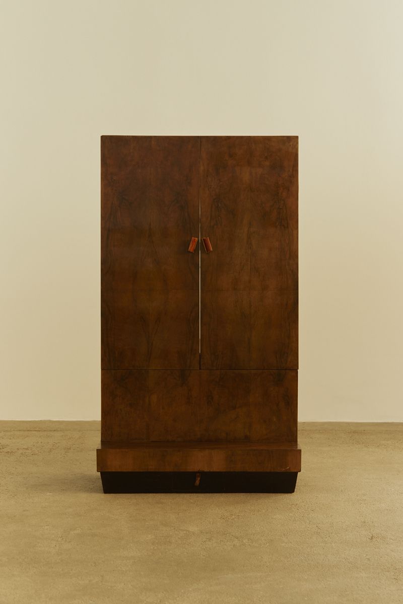 The exquisite Bakelite handles add a touch of vintage charm, while the small drawer with a leather pull handle provides convenient storage for personal items. A perfect blend of form and utility.