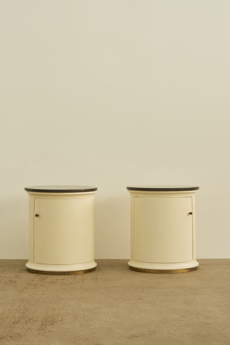 1960s Italian bedside tables / storage in lacquered wood, granite and original brass knobs.