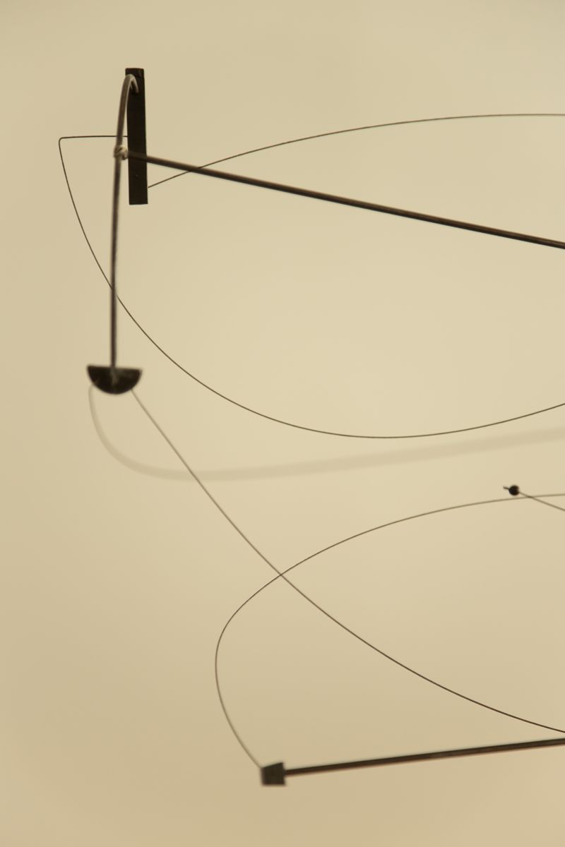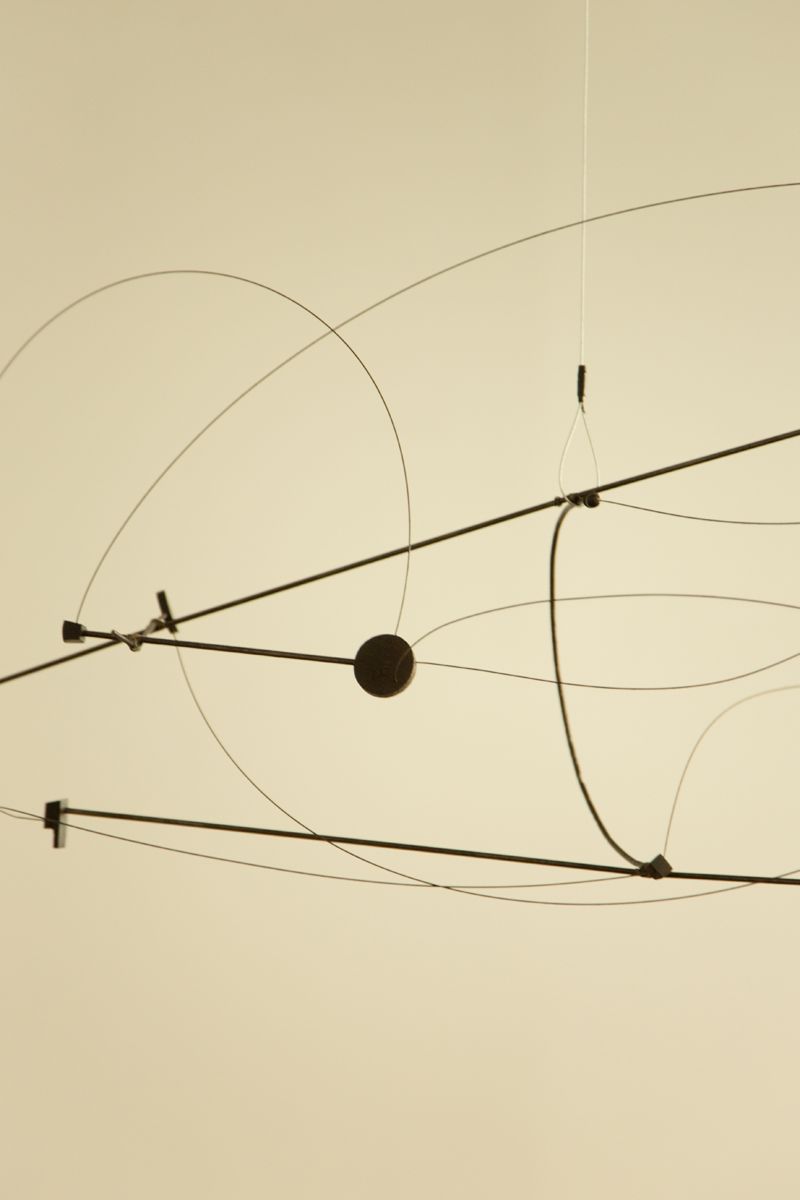 This elegant suspension piece by Arnaud Bazille, known as BAZ, blends minimalist design with sculptural expression. Mobile lunaire features a delicate arrangement of rods and tension wires that create sweeping, orbital curves in space, reminiscent of celestial motion. The dynamic composition balances precision with organic flow, transforming light and structure into a floating kinetic artwork. Both functional and poetic, the piece is signed on a small disc and stands as a striking example of contemporary mobile design.