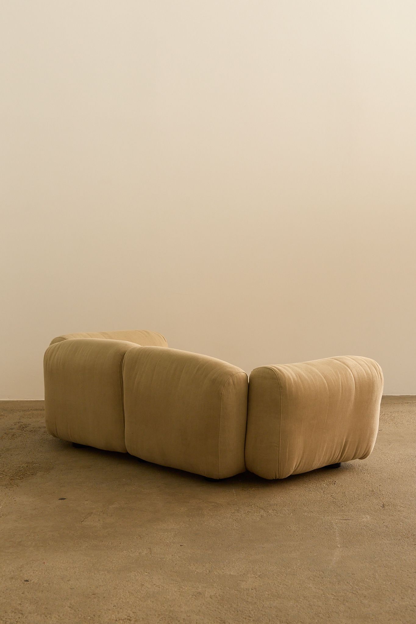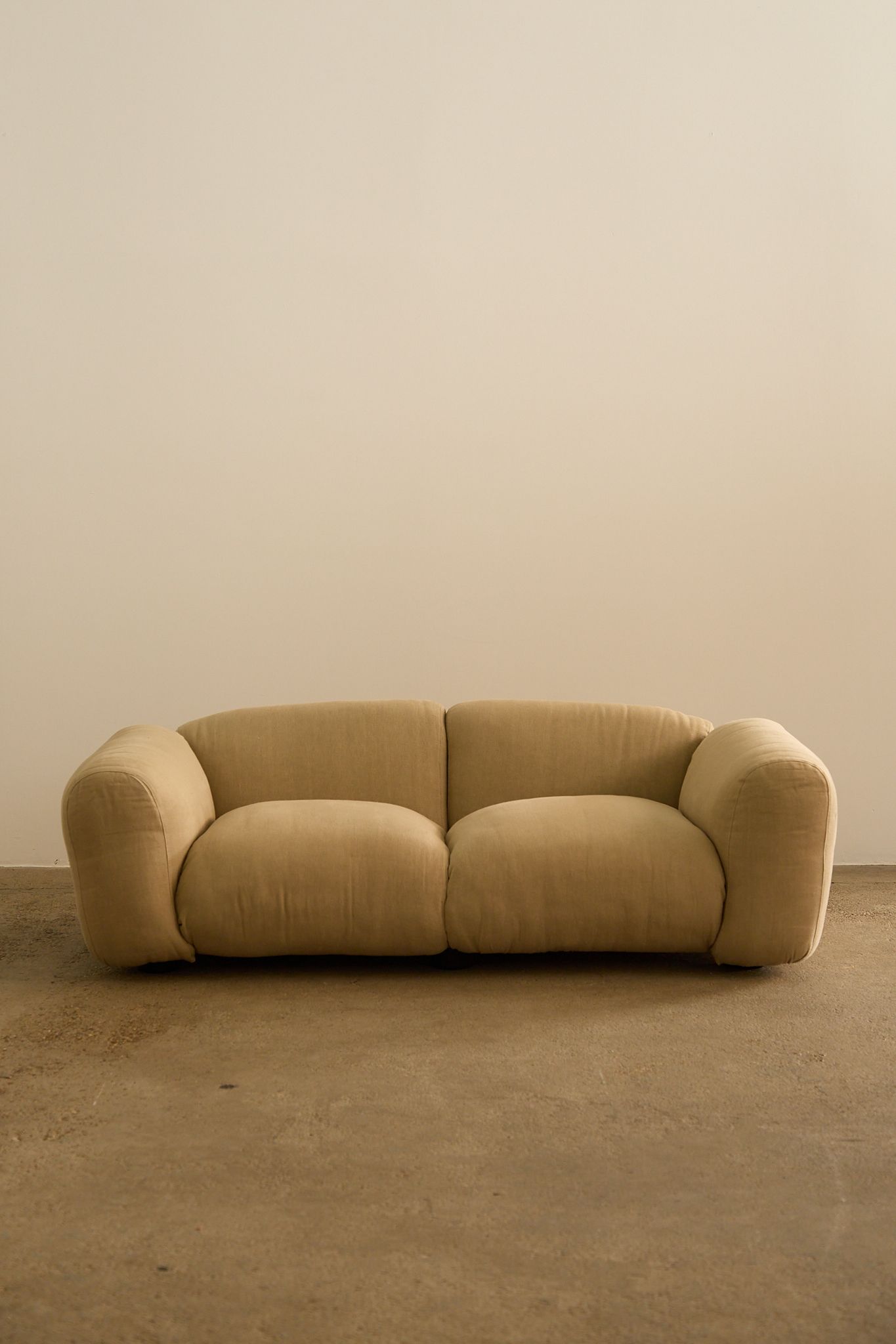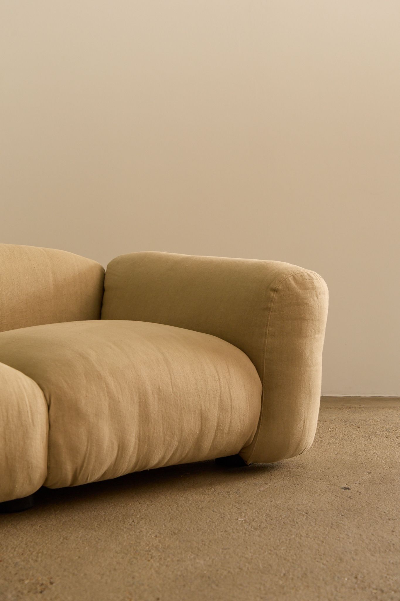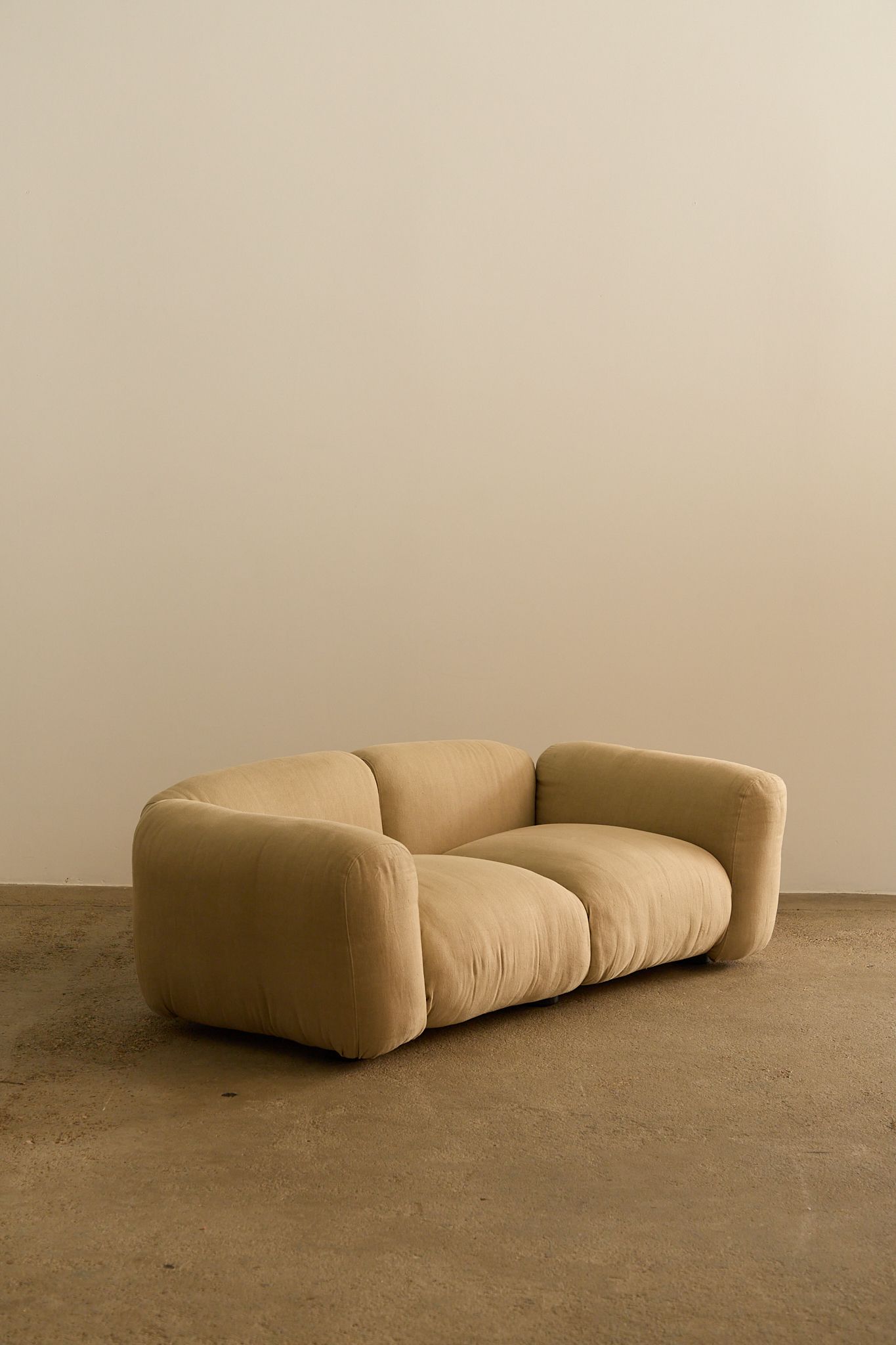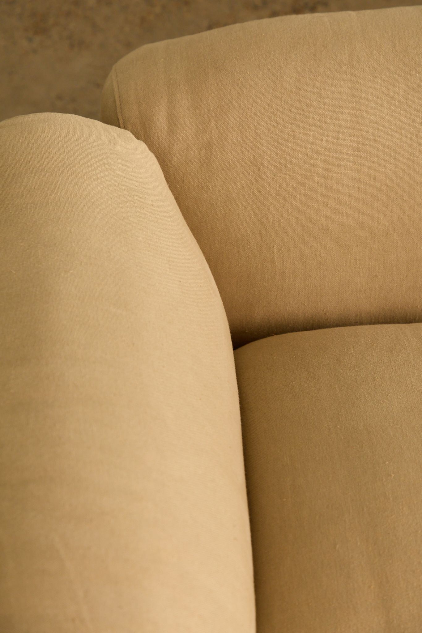 Italian Mario Marenco two-seater sofa, newly upholstered in linen. An exceptionally comfortable and compact design, produced by Arflex, Italy, circa 1970.
