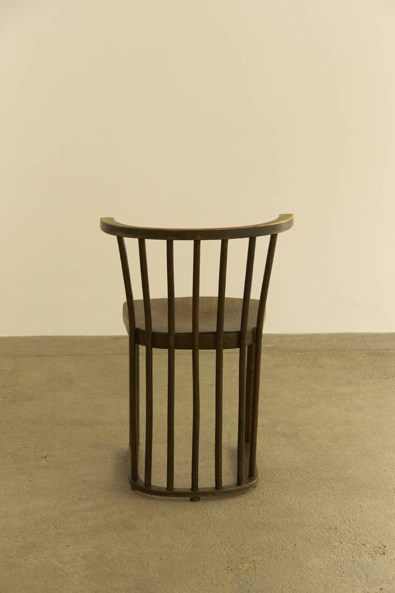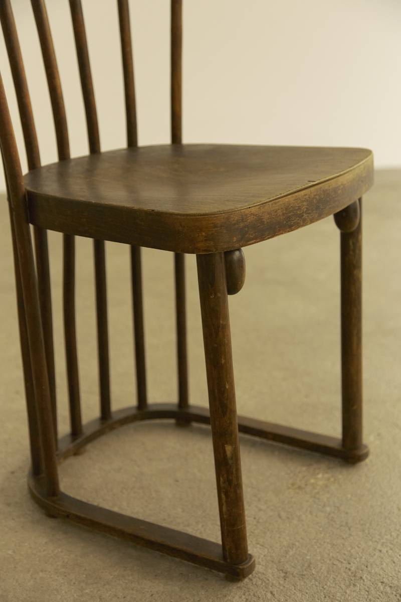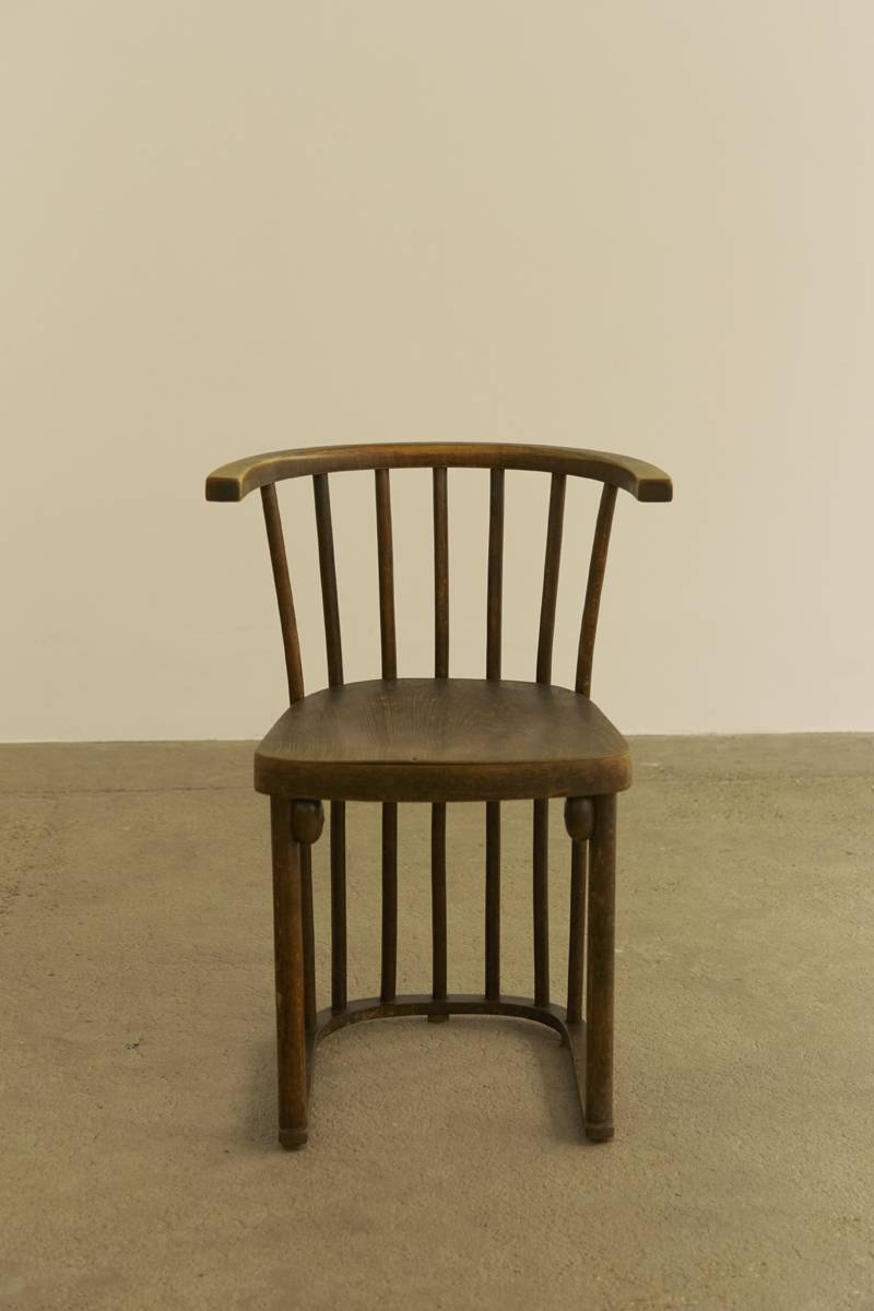 Marcel Kammerer, Nr. 761 from 1909. Josef Hoffmann used it to provide seating for the Viennese cabaret Fledermaus, which is why it received particular attention. . Stylist of the chair model: The strict structure of vertical and horizontal lines corresponds to Hoffmann’s geometric concept at the time; even the curved parts are subordinate to the structure. Only the balls - they support and decorate at the same time - break through the severity in a playful way. Its shape - at the same time light and solid, strict and elegant - made the chair a prime example of the modern Viennese style. Very beautiful together with the Hoffmann table.