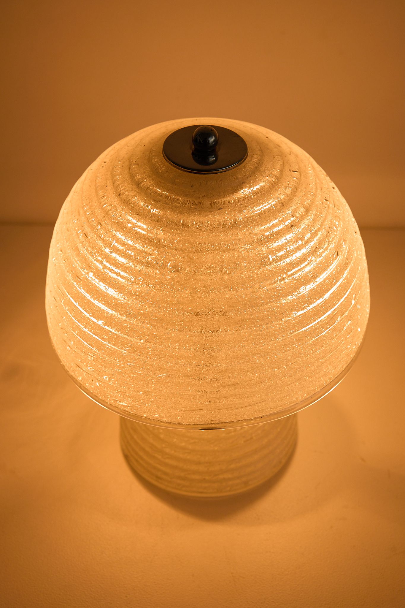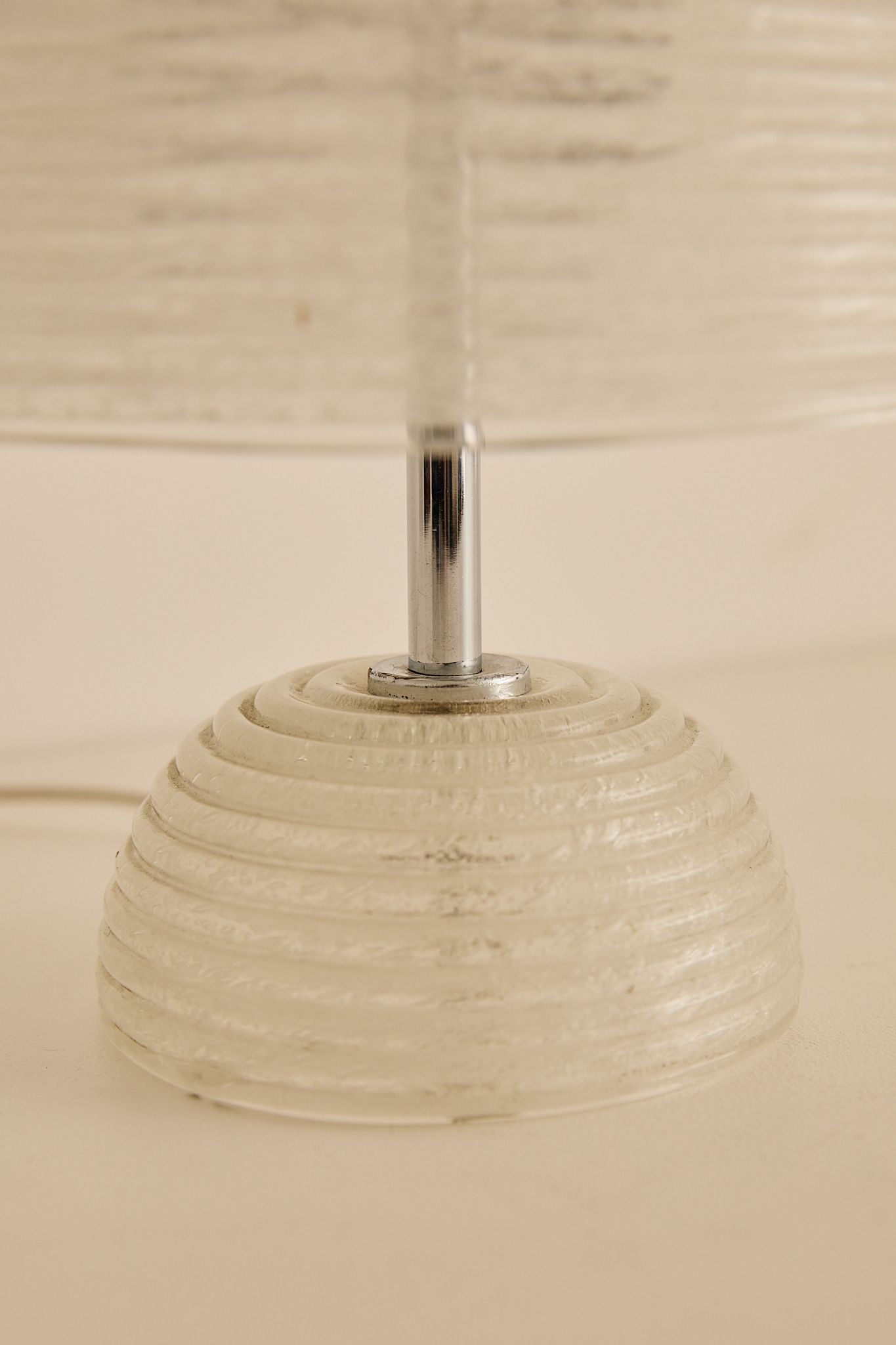 Ribbed Murano Glass Table Lamp textured glass dome shade and matching glass base, finished with chrome hardware for a soft, warm ambient glow.