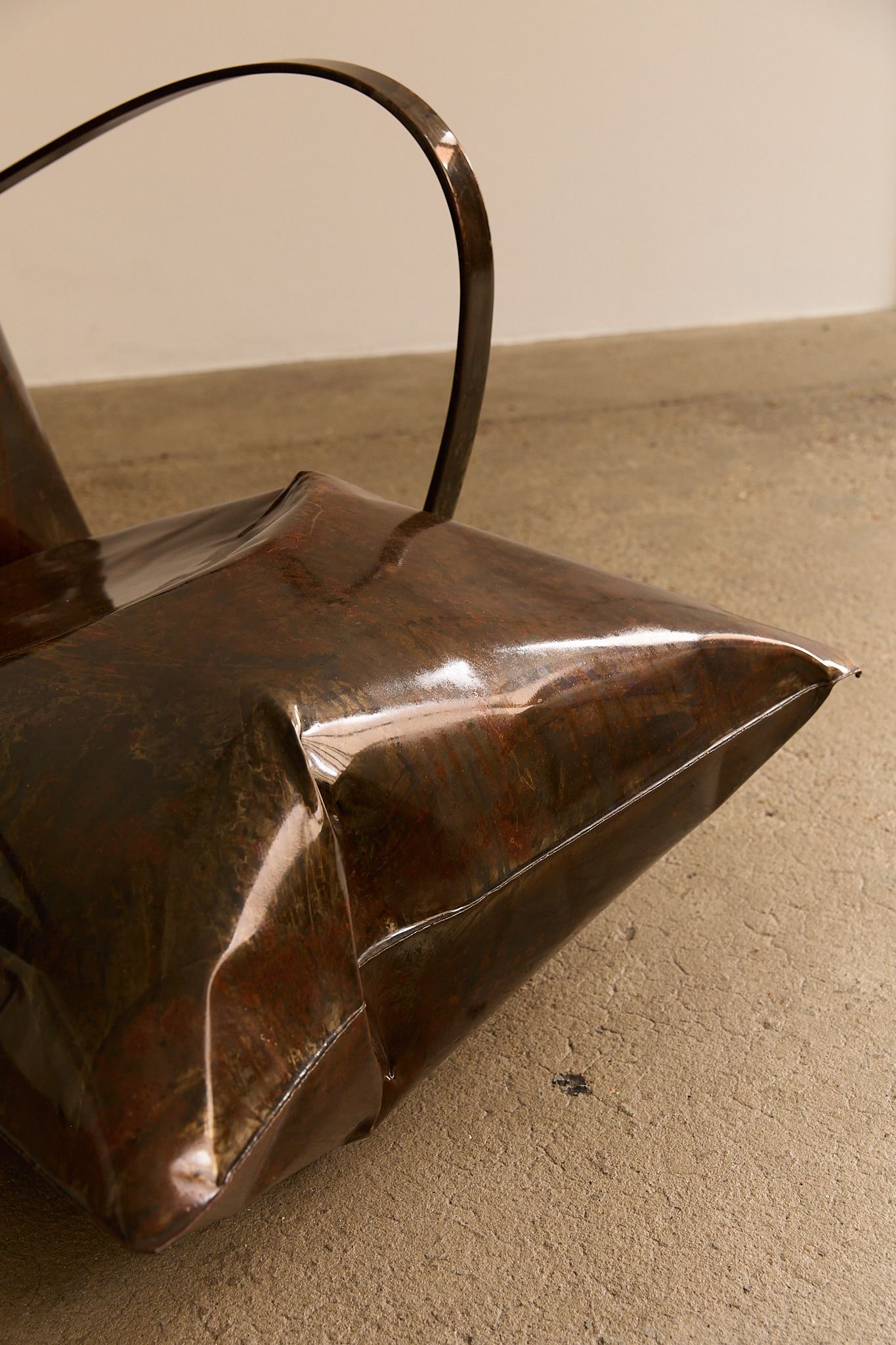 Striking and sculptural lounge chair, likely of German origin, attributed to the Neu Design movement of the 1980s. A unique, one-off piece that exemplifies the bold experimentation and industrial aesthetic of postmodern design.