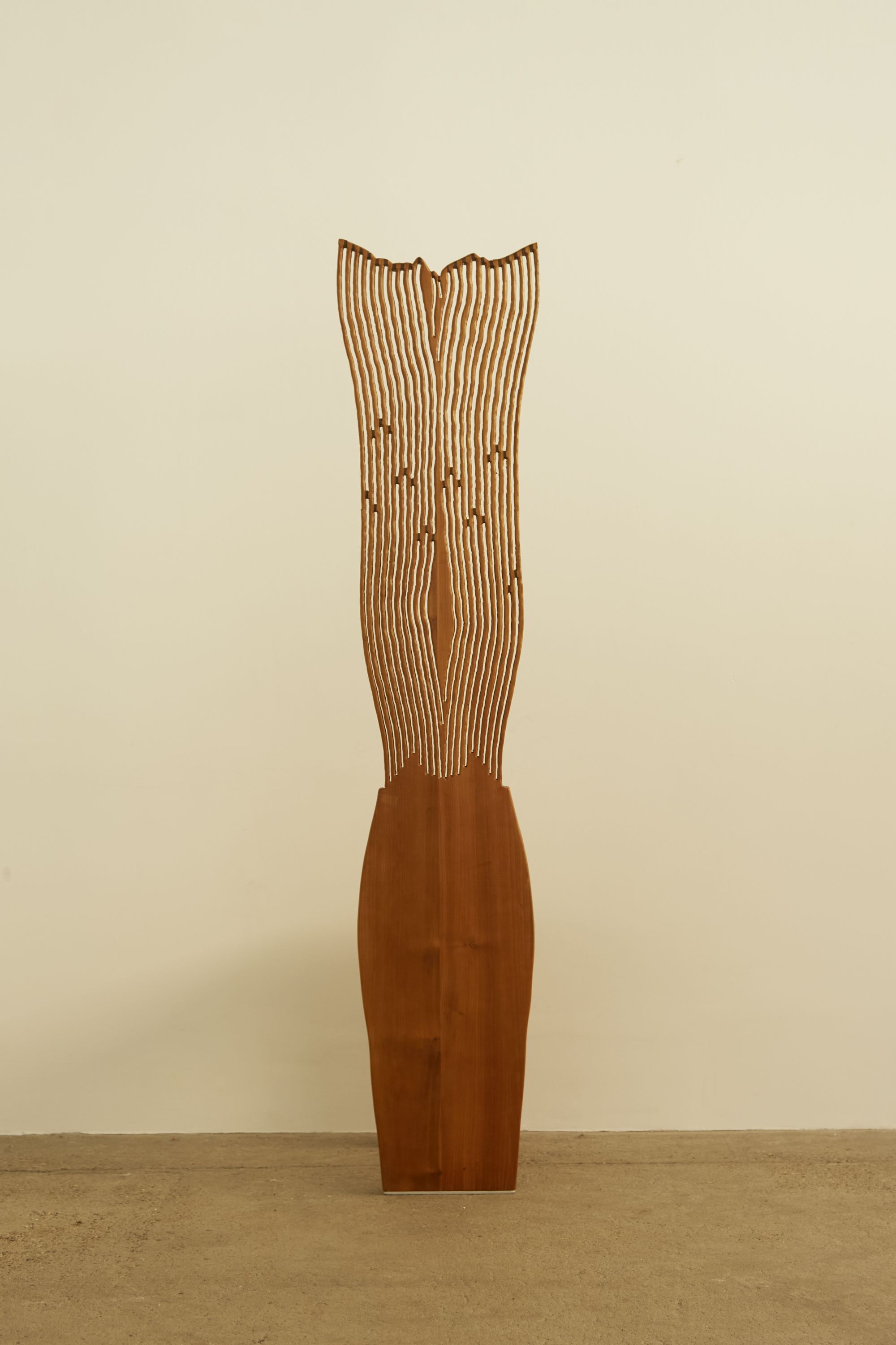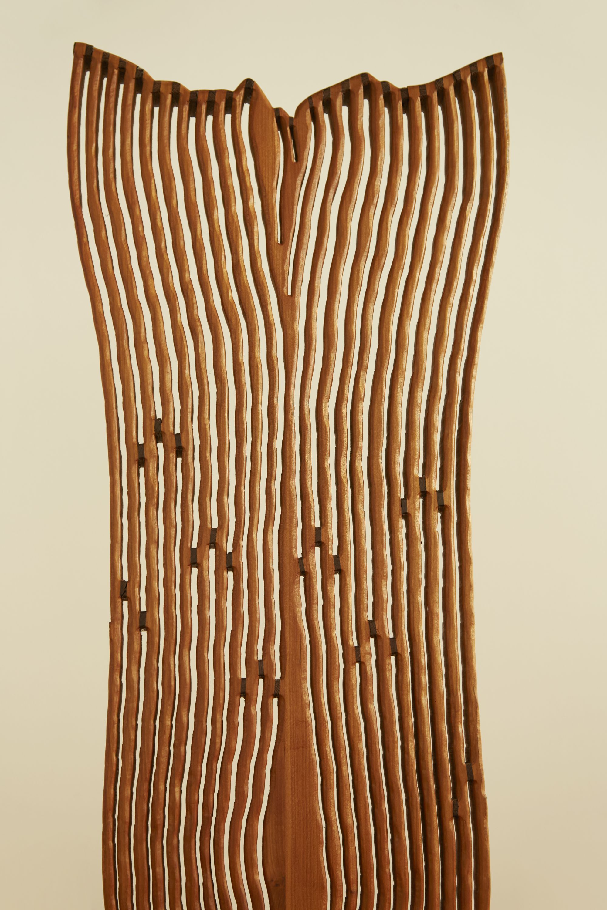 A sculptural high-back artist chair crafted by Italian sculptors Pyca and Leone in the 1980s in Sicily. Made from olive wood, this unique piece showcases intricate decorative details, highlighting its artistic and artisanal heritage.