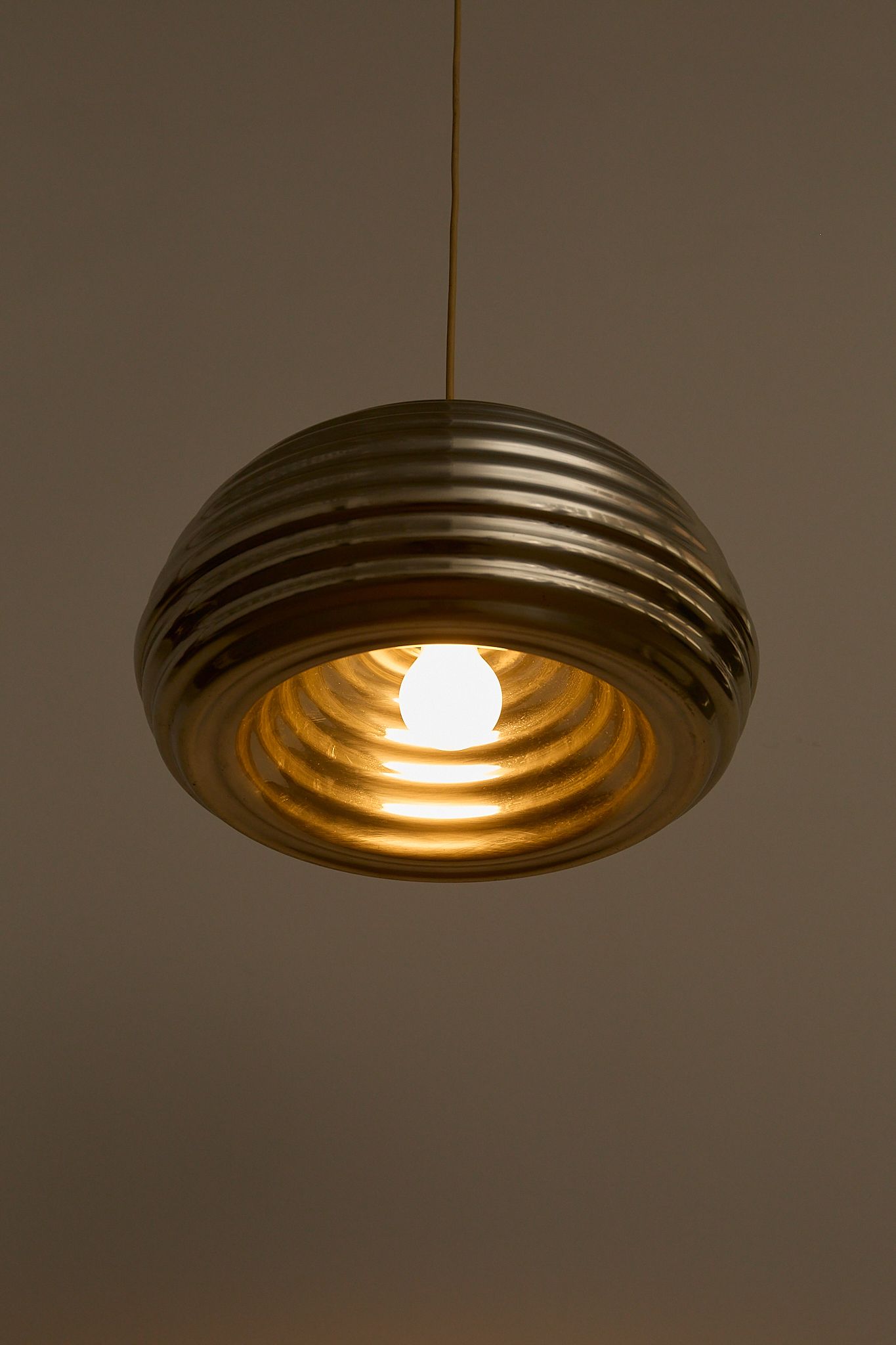 Pendant Light made by Flos in the 1970s, featuring a turned aluminum reflector, polished and protected with a transparent varnish.