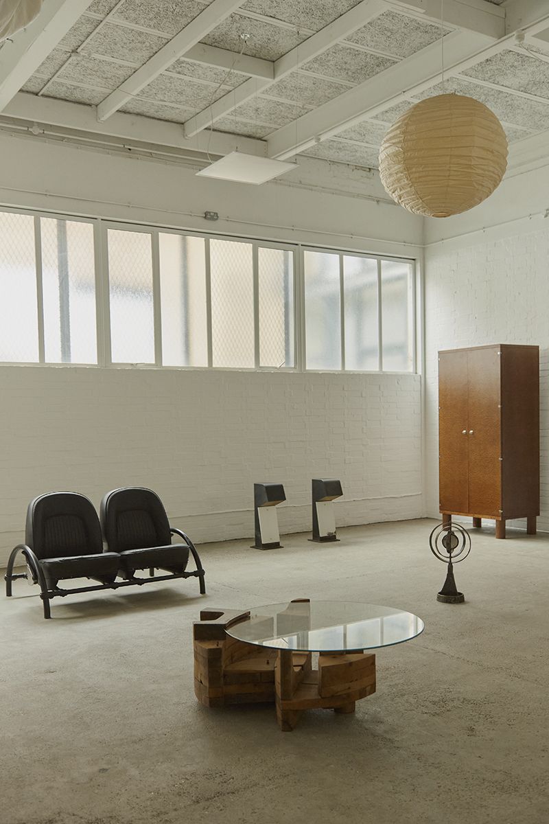 The structure is made of black lacquered folded steel housing a glass diffuser, resting on a square base