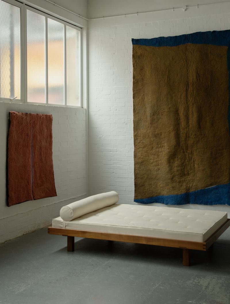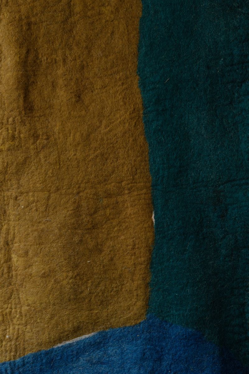 Mariana Chkonia (b. 1969) is an artist who lives and works between Tbilisi and Nukriani. In her prac- tice, she revives ancient felting traditions that have existed for centuries in the Tusheti, Kakheti, Khevi and Javakheti regions of Georgia. Today, these techniques have all but fallen out of use, and so Chkonia combines archival research with her own interpretation of felting methods to create her monumental, sculptural textile works: “I wanted to do something that I could not imagine, and make it bigger than myself. I wanted something to happen in the process that would drive me crazy,” she has said of producing her pieces.