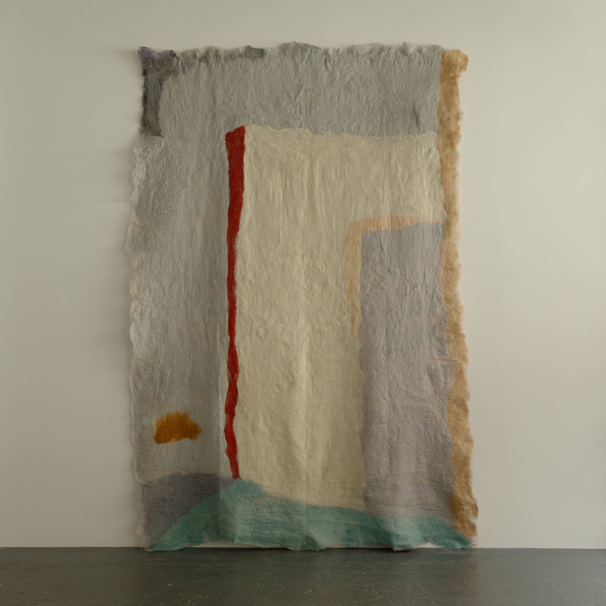 Mariana Chkonia (b. 1969) is an artist who lives and works between Tbilisi and Nukriani. In her prac- tice, she revives ancient felting traditions that have existed for centuries in the Tusheti, Kakheti, Khevi and Javakheti regions of Georgia. Today, these techniques have all but fallen out of use, and so Chkonia combines archival research with her own interpretation of felting methods to create her monumental, sculptural textile works: “I wanted to do something that I could not imagine, and make it bigger than myself. I wanted something to happen in the process that would drive me crazy,” she has said of producing her pieces.