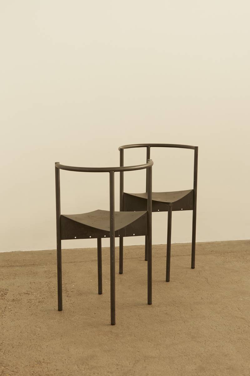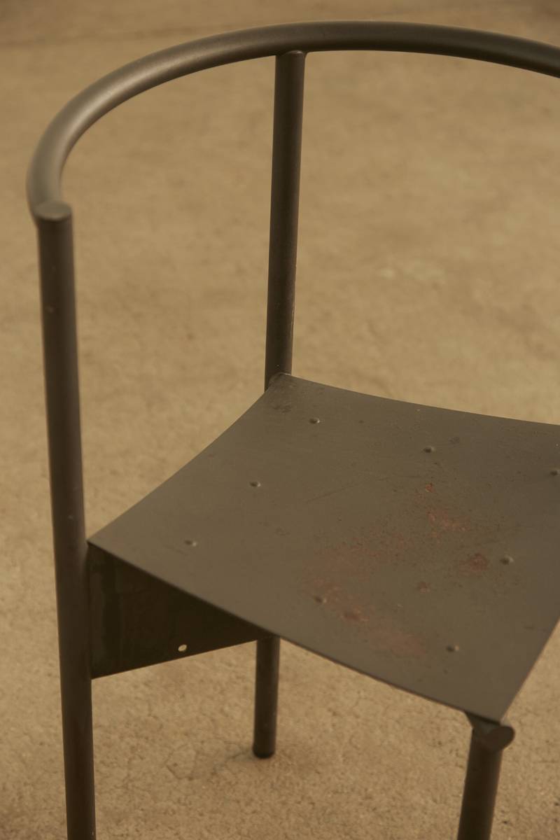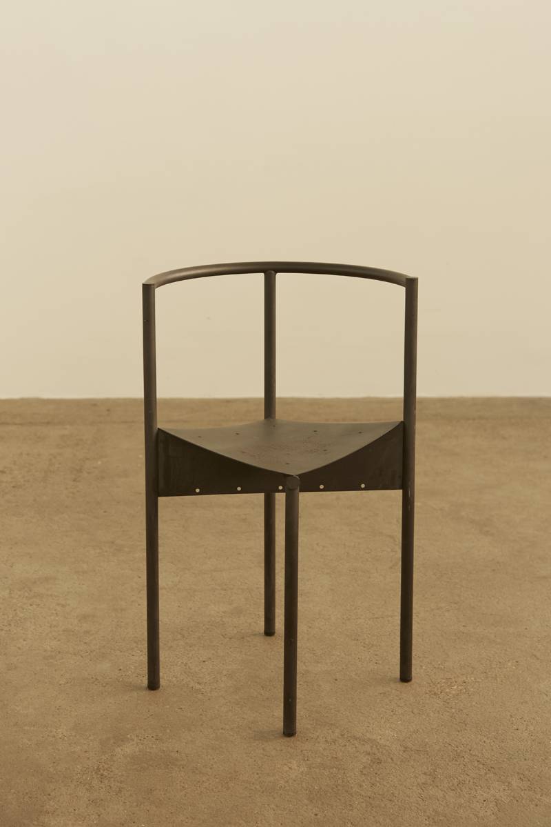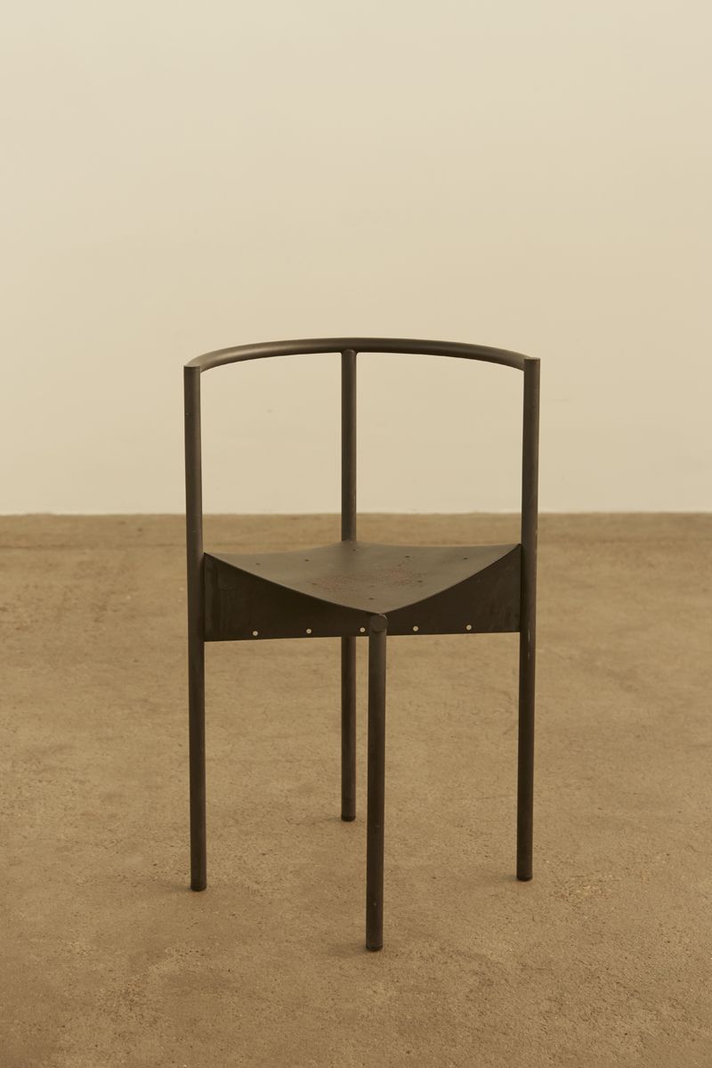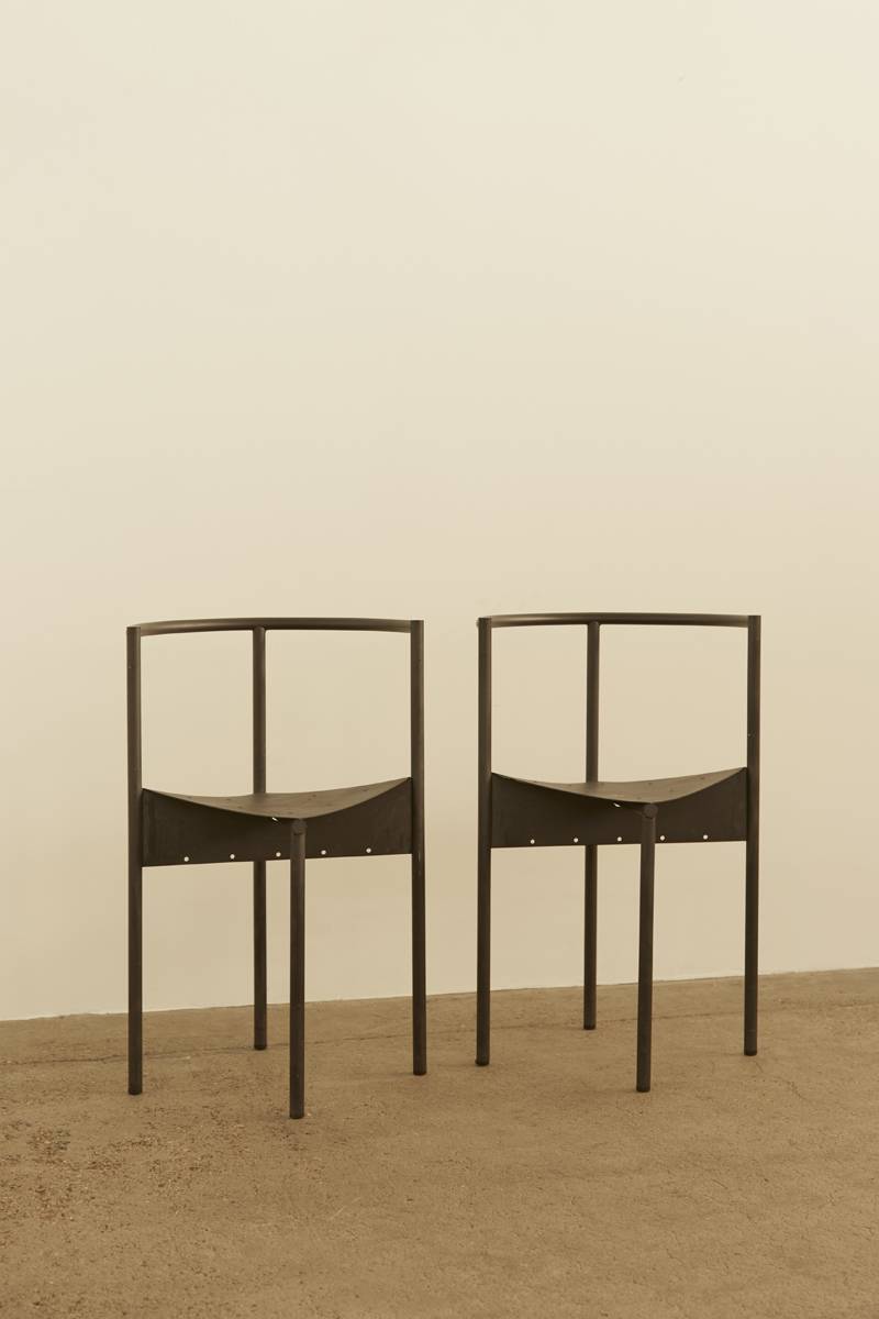 The Wendy Wright chair, designed by Philippe Starck in 1986 and produced by Spanish manufacturer Disform, is named after Philip K. Dick’s sci-fi novel Ubik. Its distinctive central leg design was later reinterpreted in Starck’s Jane Paille chair (1987). Some patina on the seats. Sold separately, price listed is for one chair.