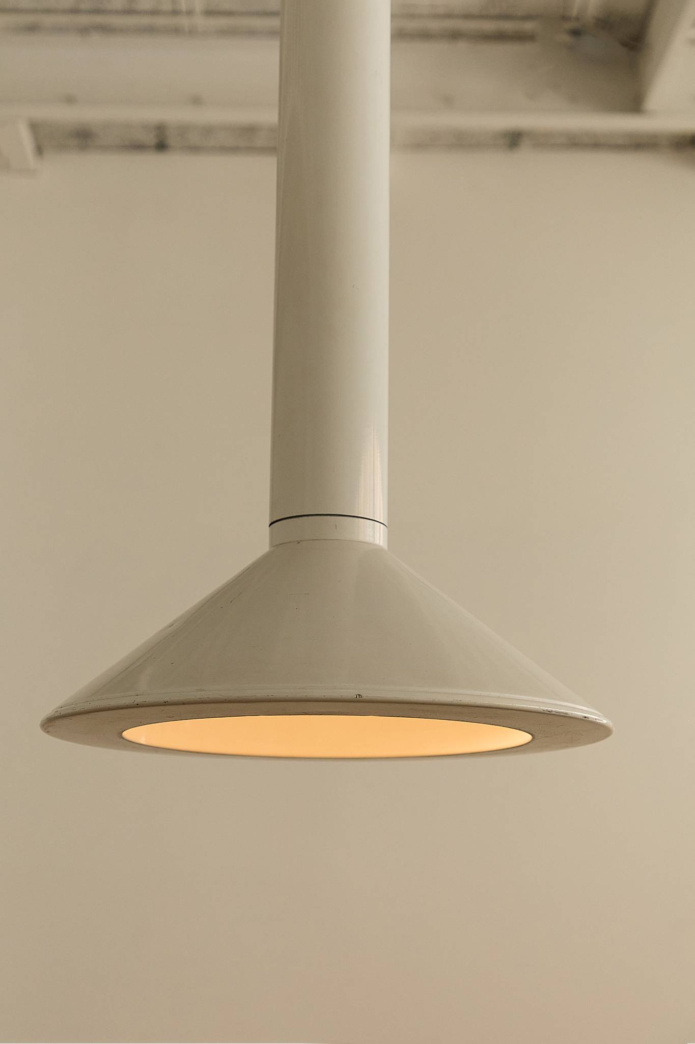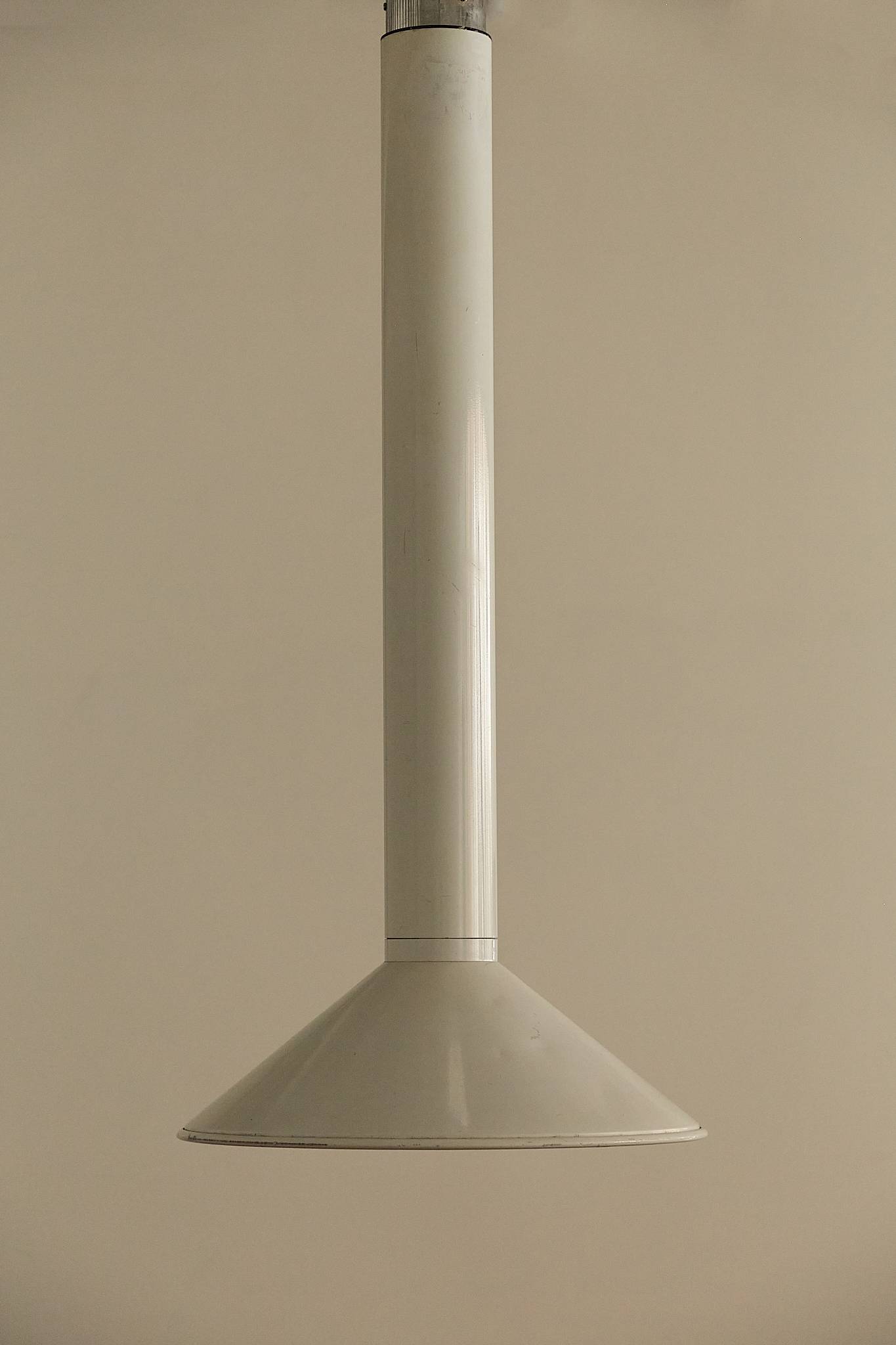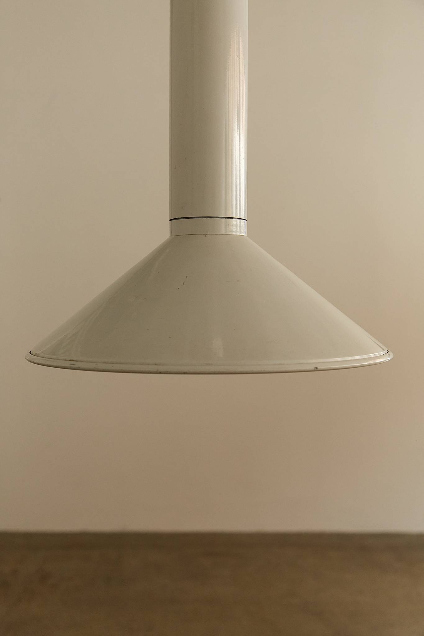 Milan-based architect Umberto Riva (b. 1928) opened his practice in 1960, developing a highly personal architectural style. As a lighting designer, he explored both poetic glass forms—like Medusa and Veronese—and modernist metal designs, such as the E63 and Telescopio. Named for its stepless, extendable arm, the Telescopio was first produced by Enzo Francesconi in Brescia before Bieffeplast acquired the rights in the early 1970s. This lamp is from the rare Francesconi edition, featuring subtly different proportions from the later Bieffeplast versions.
