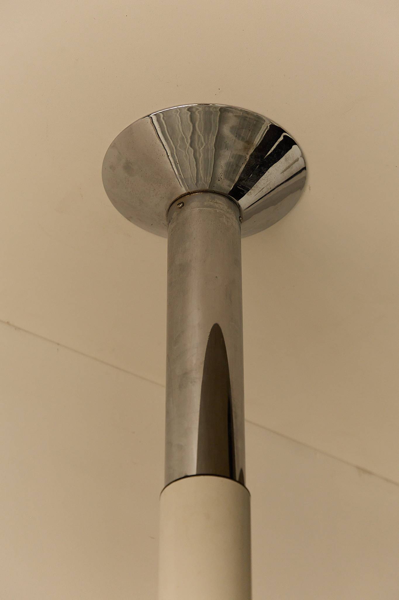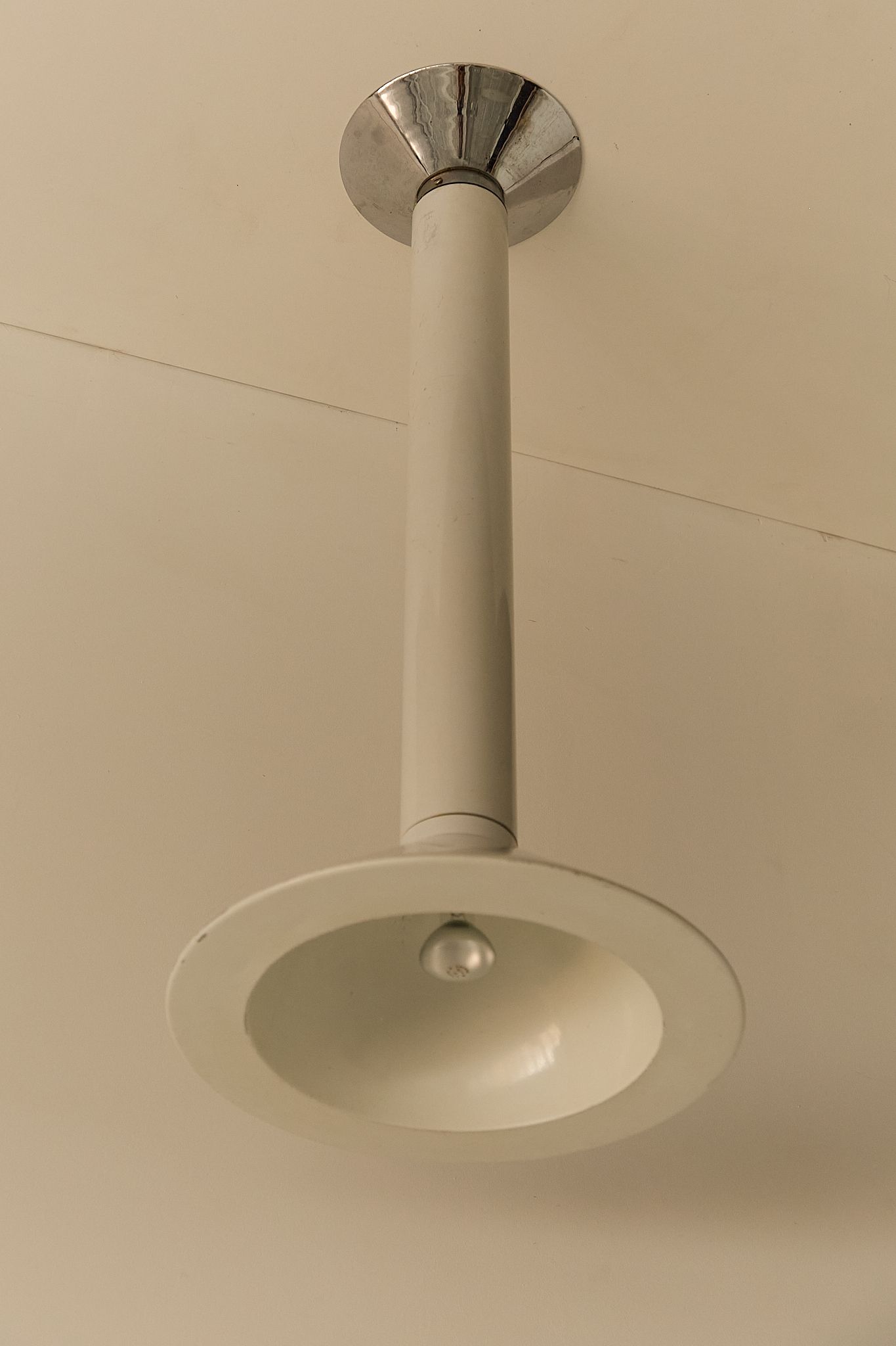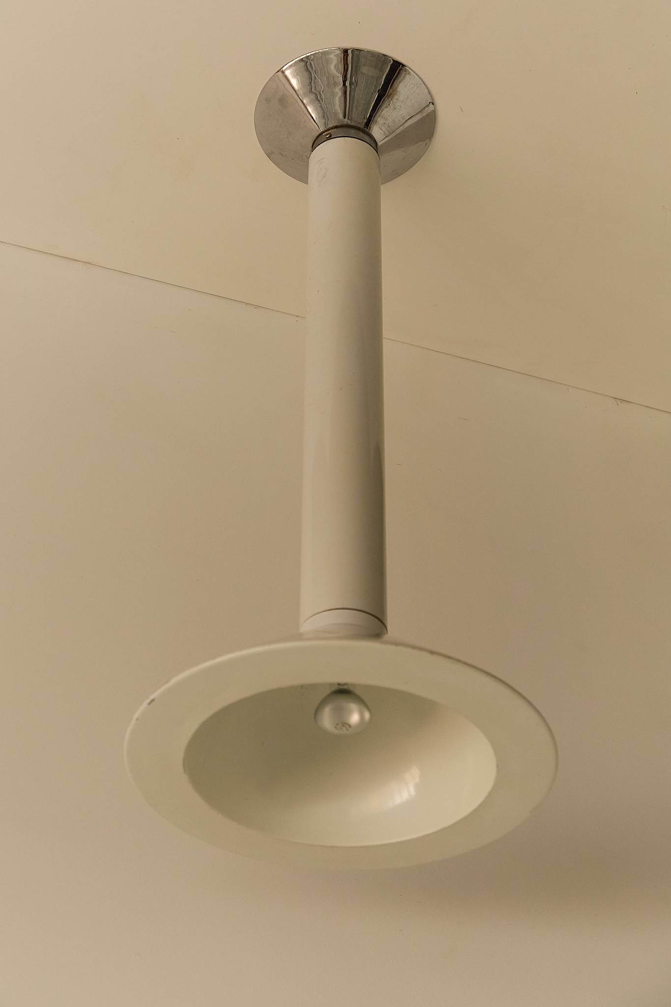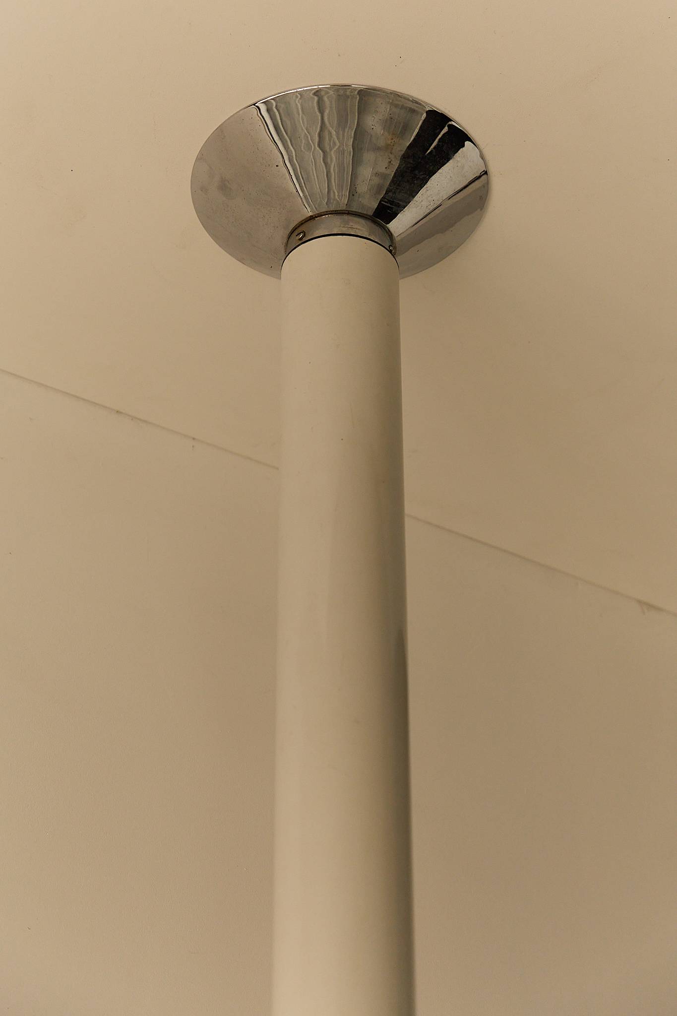 Milan-based architect Umberto Riva (b. 1928) opened his practice in 1960, developing a highly personal architectural style. As a lighting designer, he explored both poetic glass forms—like Medusa and Veronese—and modernist metal designs, such as the E63 and Telescopio. Named for its stepless, extendable arm, the Telescopio was first produced by Enzo Francesconi in Brescia before Bieffeplast acquired the rights in the early 1970s. This lamp is from the rare Francesconi edition, featuring subtly different proportions from the later Bieffeplast versions.