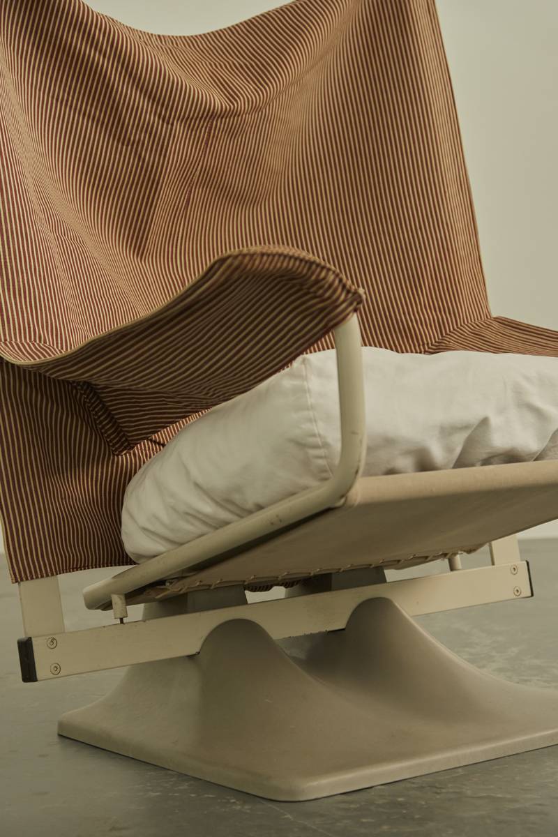 The ‘AEO’ chair designed by Paolo Dagenello in 1973 was the last piece produced by the Archizoom group. The unconventional design was manufactured by Cassina and originally available for self-assembly with a wide array of upholstery options in order to provide greater opportunity for personalisation. The piece is able to be disassembled and washed, it is light and comfortable and suits most spaces. The chair’s upholstery is in its original condition.