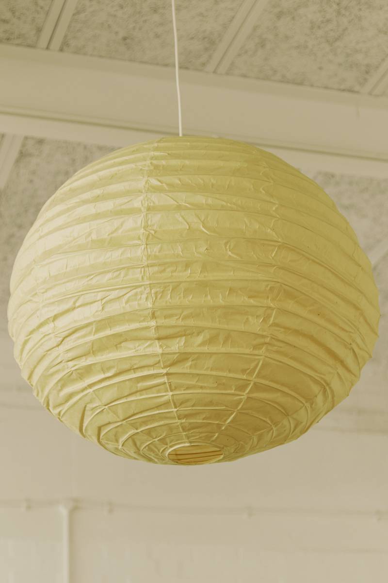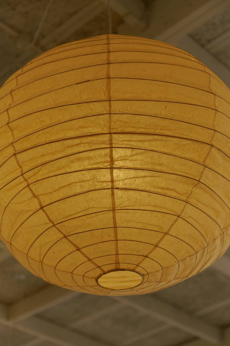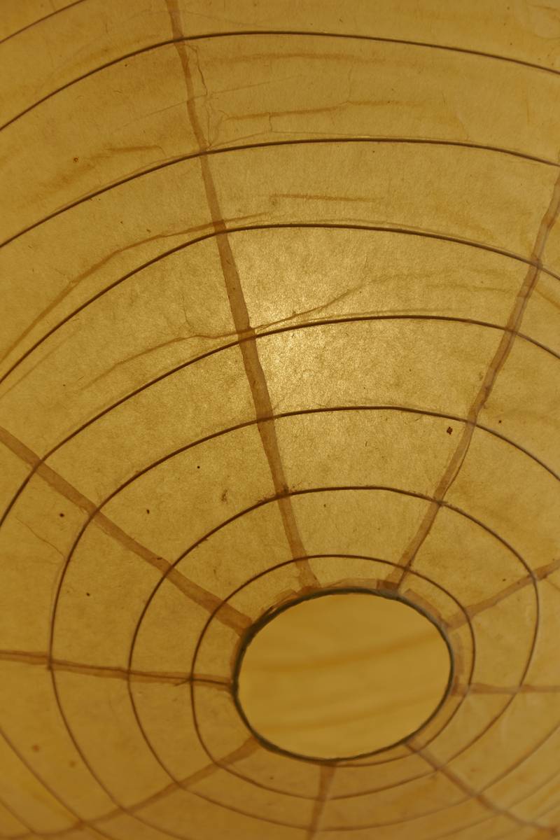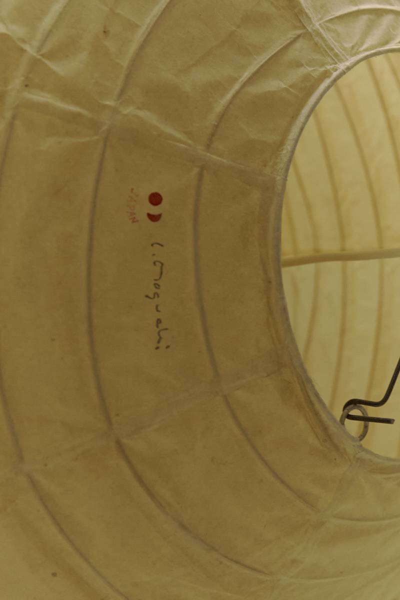 Discover the timeless allure of the Isamu Noguchi Akari Lamp, model 75D, a pendant lamp/light sculpture designed around 1950 and manufactured by Ozeki & Co. Ltd. in Japan. This mid-century modern masterpiece features a bamboo ribbing structure covered by washi paper, crafted using traditional procedures that showcase Noguchi’s commitment to artistic innovation. An early edition, this lamp bears the stamped manufacturer’s mark, adding a touch of authenticity to its design. In original condition, this piece exudes character with a beautiful patina as captured in the detailed photos.