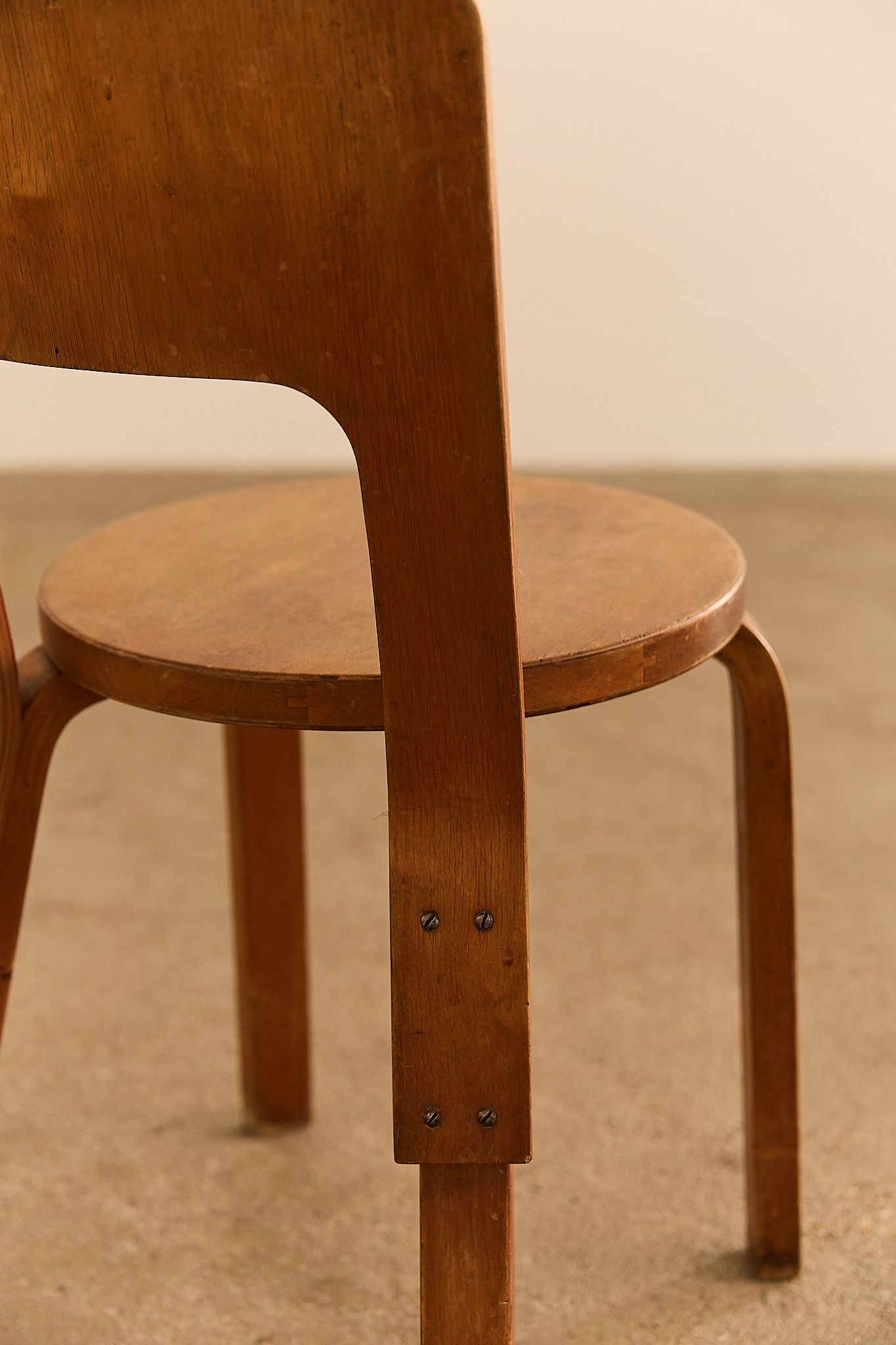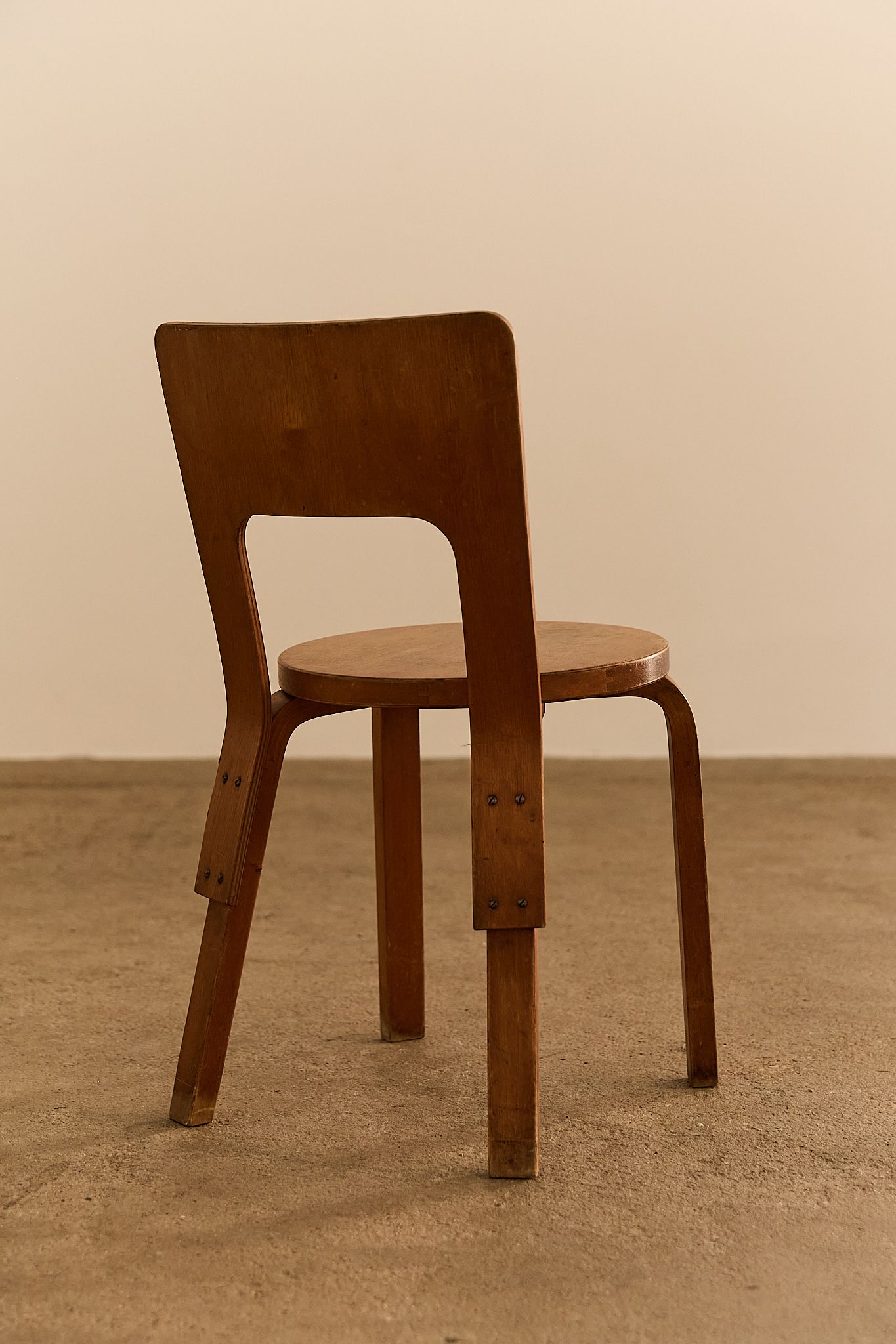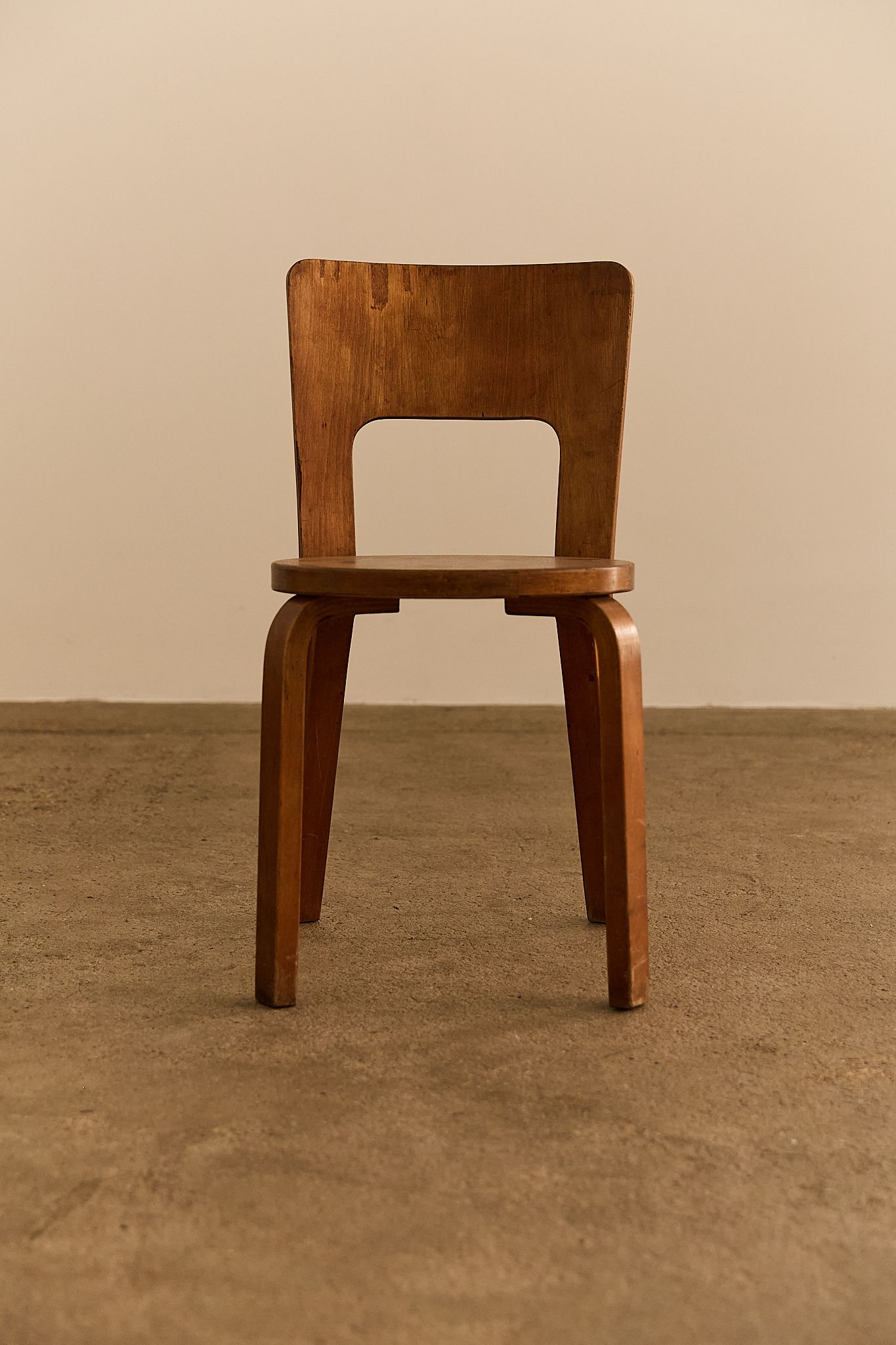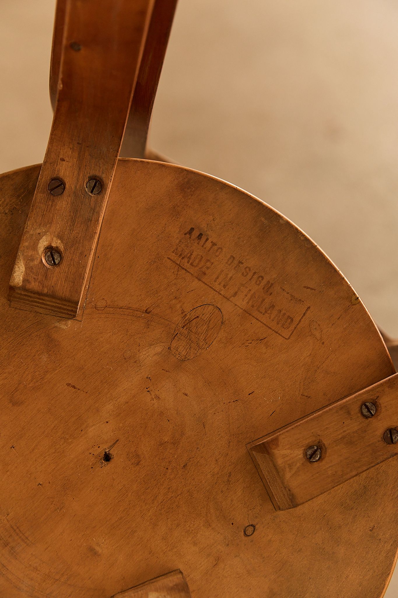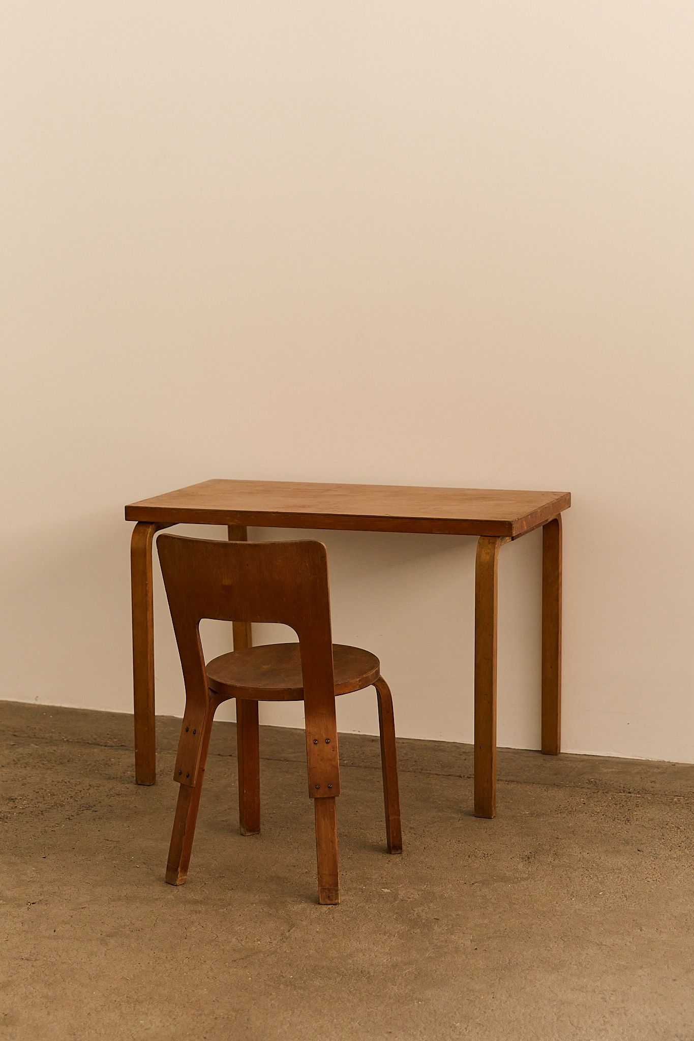 This is an early version of Alvar Aalto’s Chair 66 (1935) and Table 81B, designed in the 1930s. Crafted from birch with Aalto’s iconic L-leg construction, the set reflects his pioneering approach to modern design. Marked “Aalto Design Made in Finland”, these pieces are rare examples of early Finnish modernism.