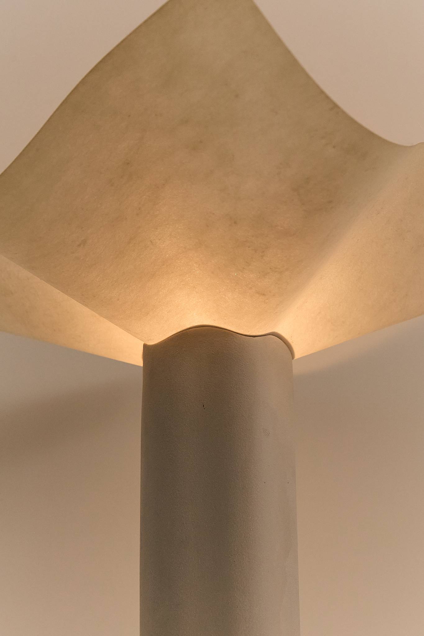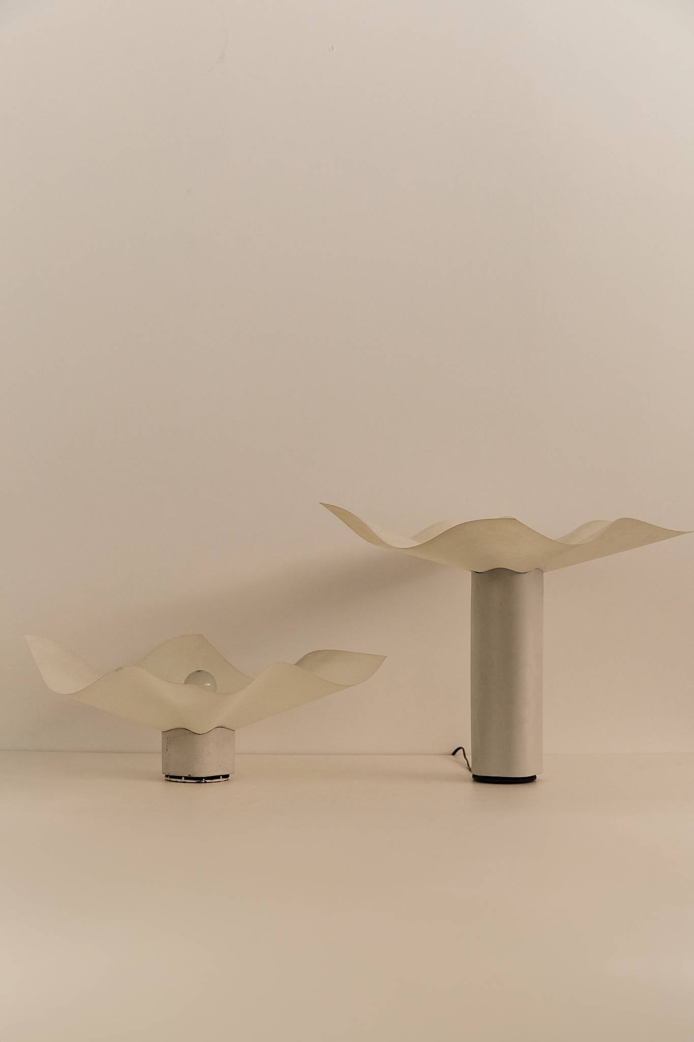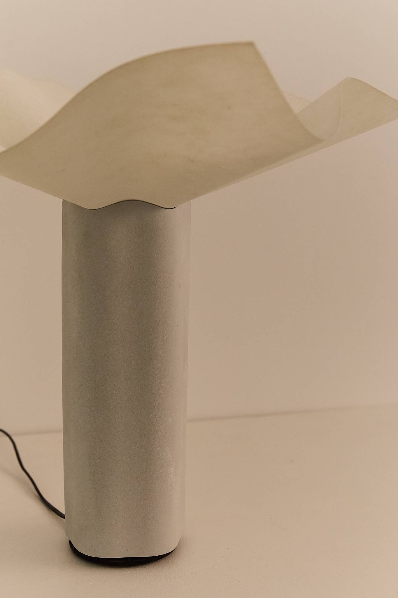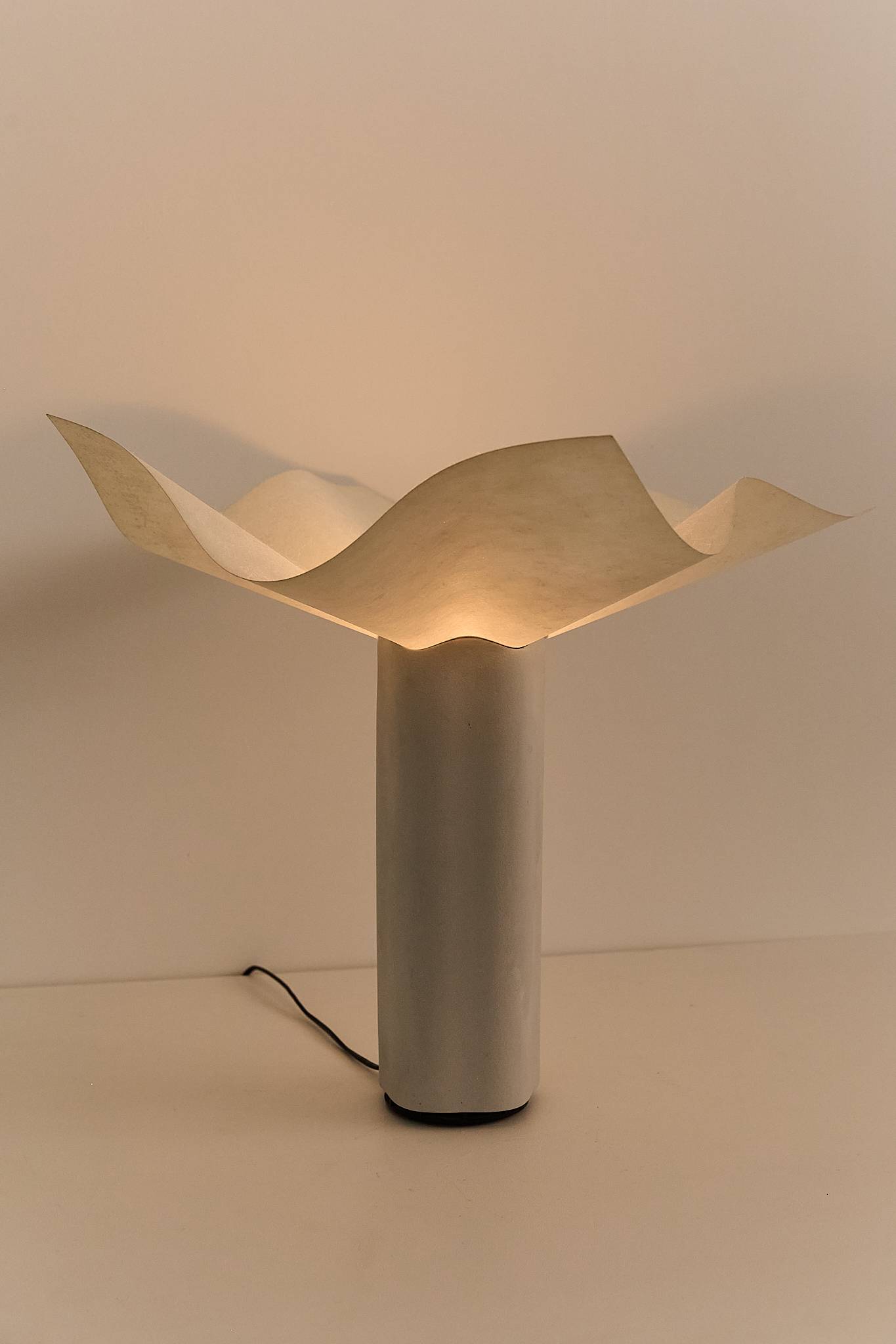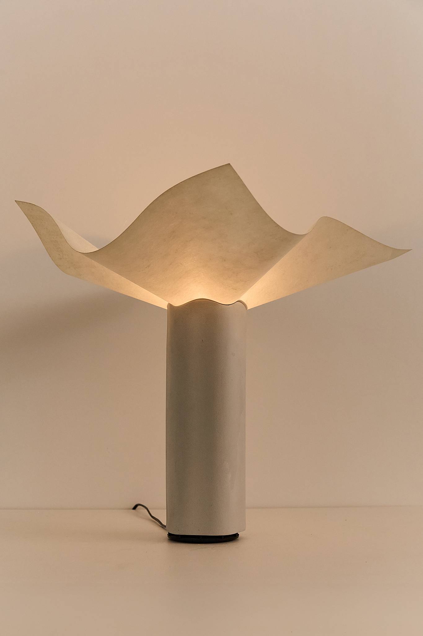 With his signature architectural precision, Mario Bellini’s Area lamp evokes the form of a blooming flower. Held in the permanent collection of MoMA New York, its undulating shade rests atop a scalloped porcelain base with a subtly textured surface. The bulb, positioned at the center, becomes the flower’s pistil — merging function with poetic form. VAT will be added as its a EU item.