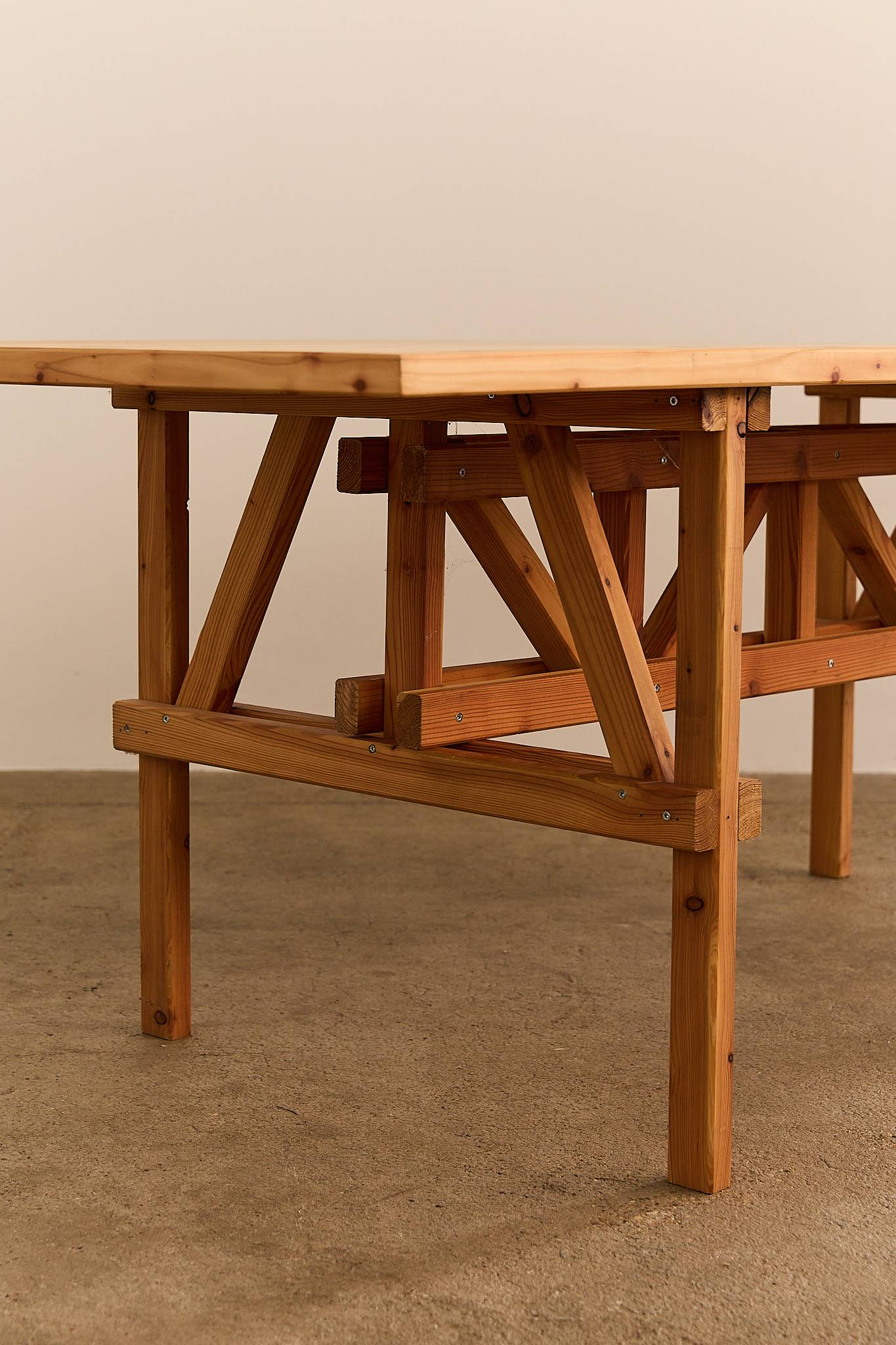In 1974, the Italian designer Enzo Mari published 19 furniture designs that one could make by oneself in his book ‘Autoprogettazione?’, herein creating a milestone in the history of design. Built from Enzo Mari’s original plans for the ‘Tavolo-Rettangolare-Grid’, this pine wood table embodies his democratic design ethos. Part of the Autoprogettazione project, it reflects Mari’s vision of accessible, self-built furniture rooted in simplicity and function.