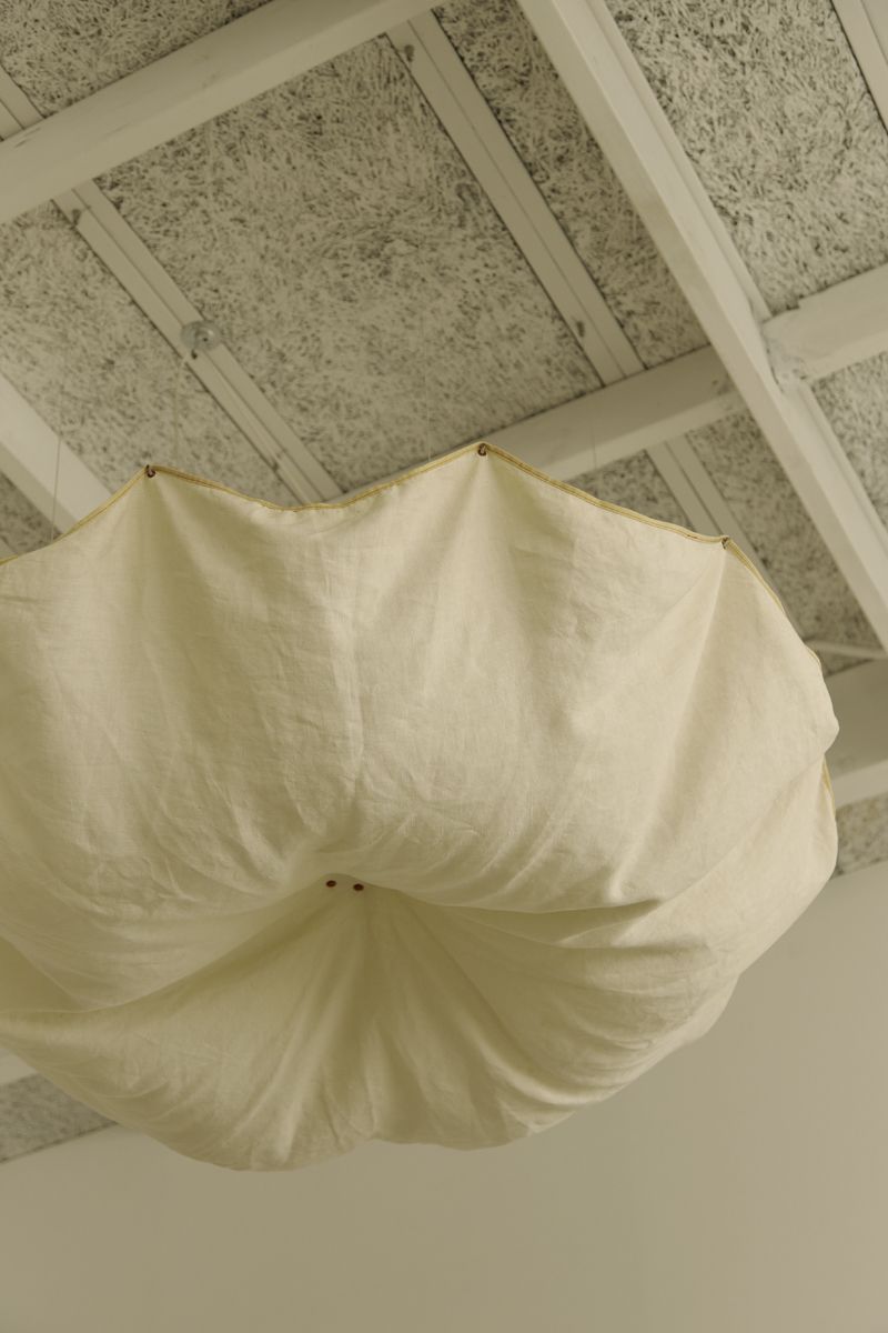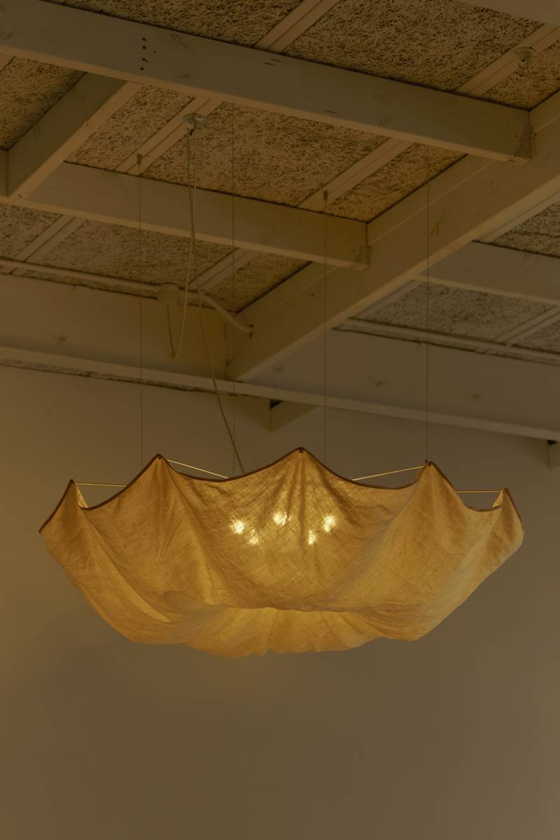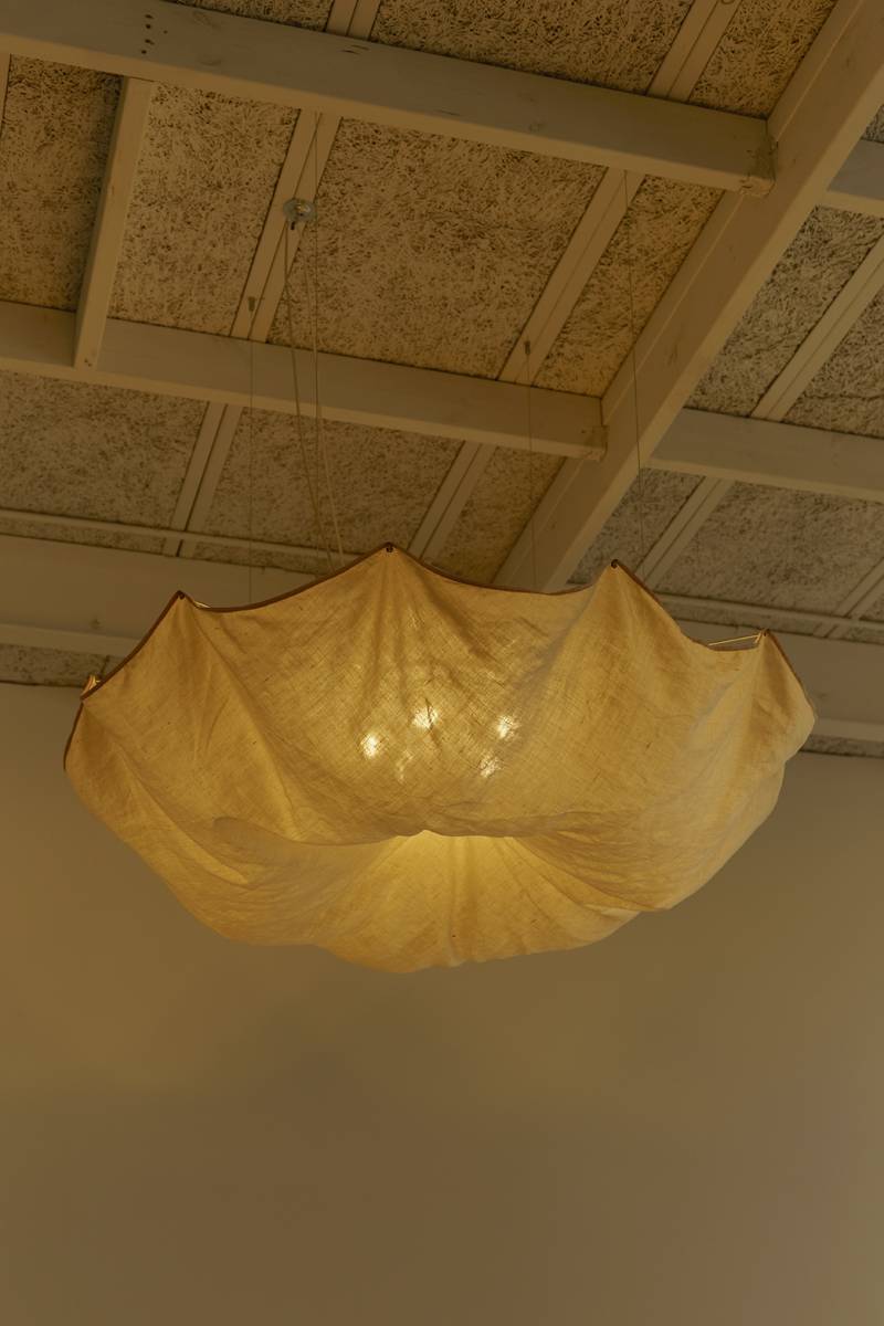 The Celestia ceiling lamp, designed by Tobia Scarpa for Flos in the 1980s, merges artistry with function. Its grand size and elegant design make it more than just a light fixture; it’s a statement piece. Draped in soft linen, the lamp’s fabric creates a beautiful play of light and shadow, casting a refined, ethereal glow that elevates any space.