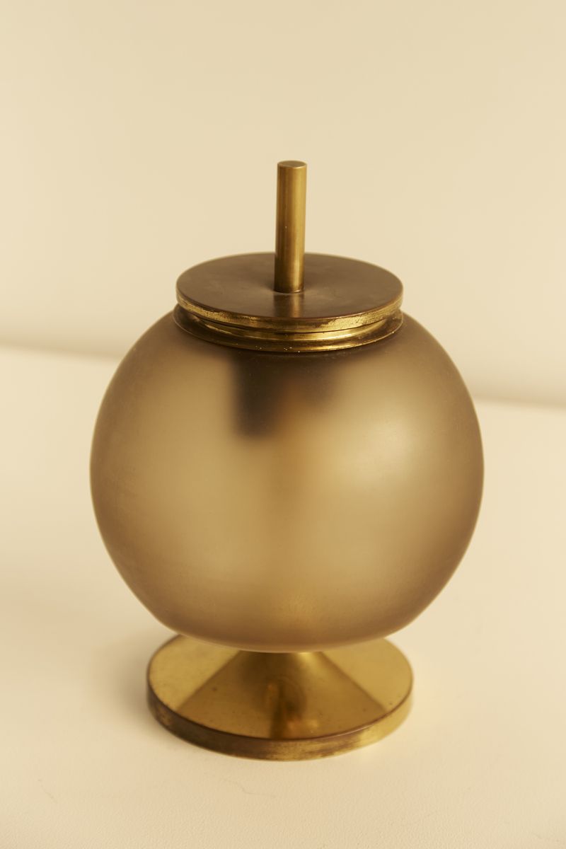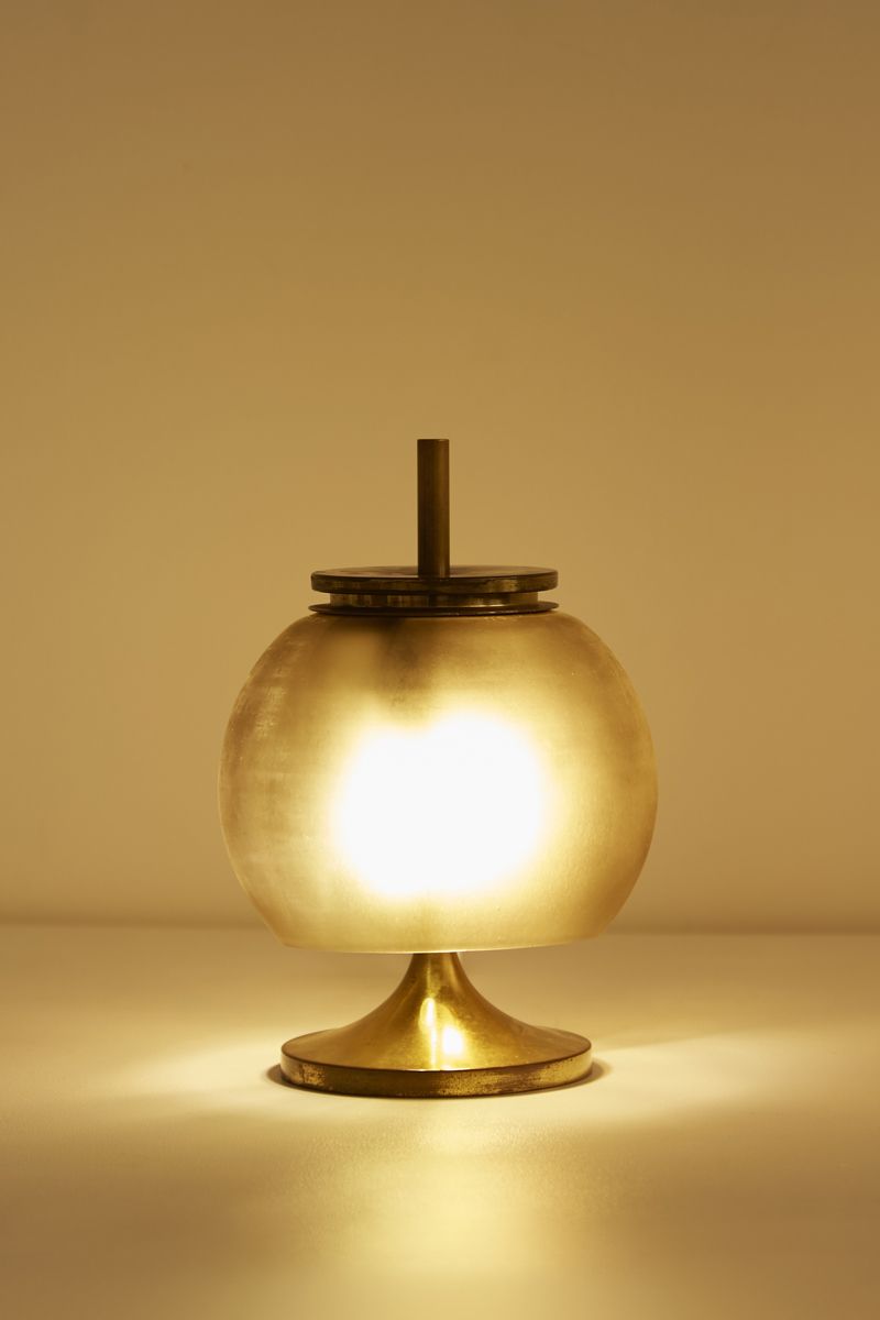 Nickel-plated brass structure with an etched glass diffuser. Produced by Artemide, Italy, 1961.