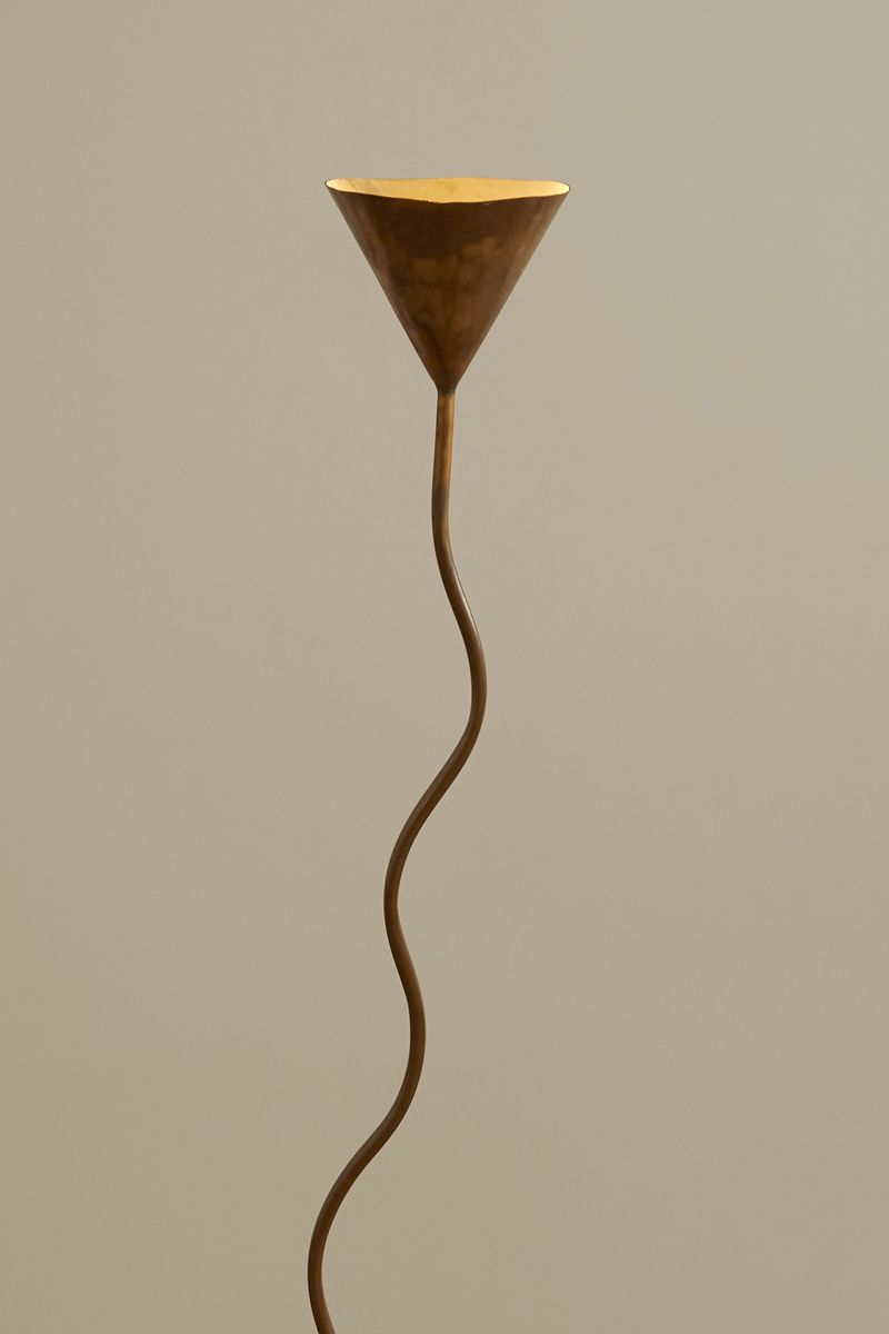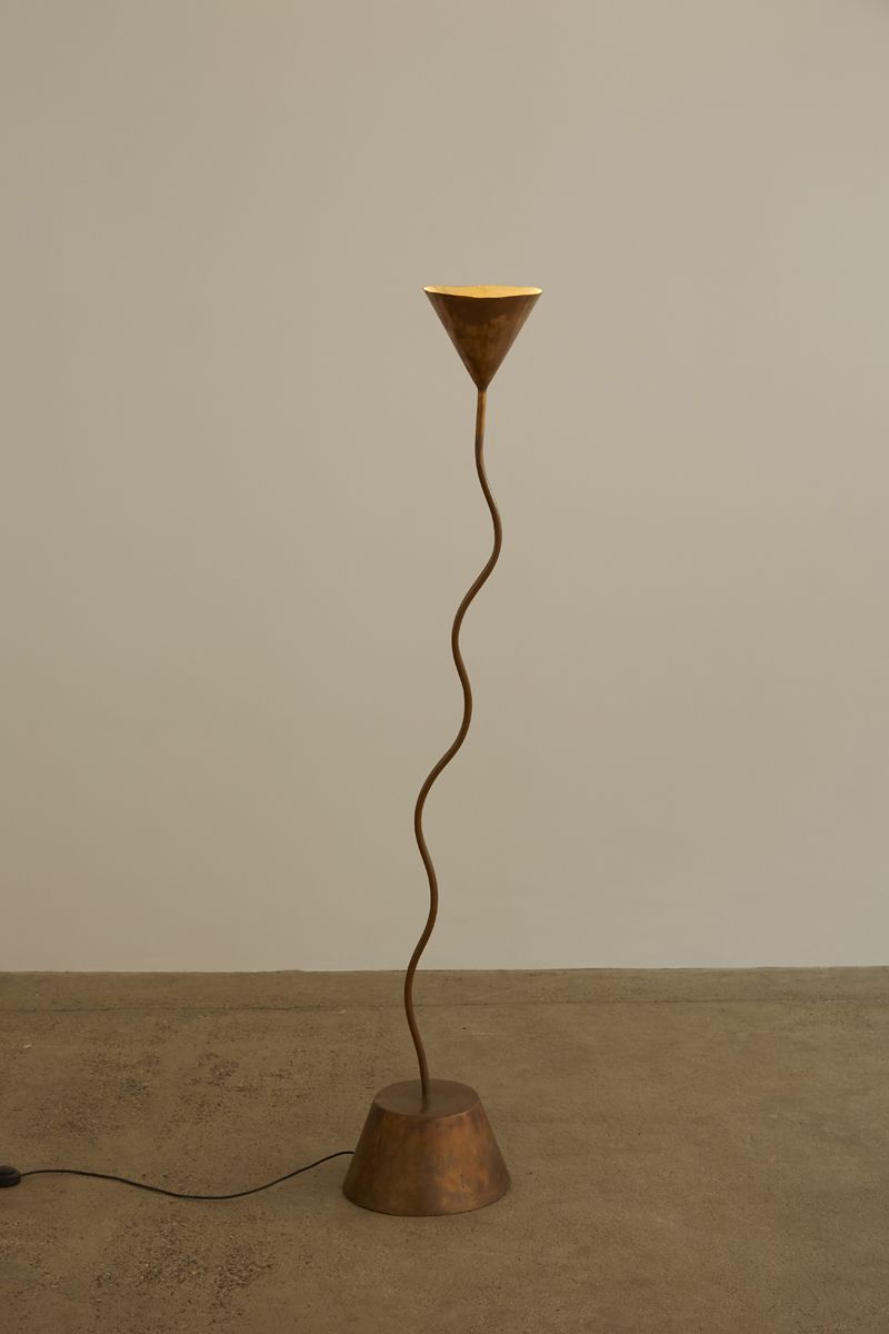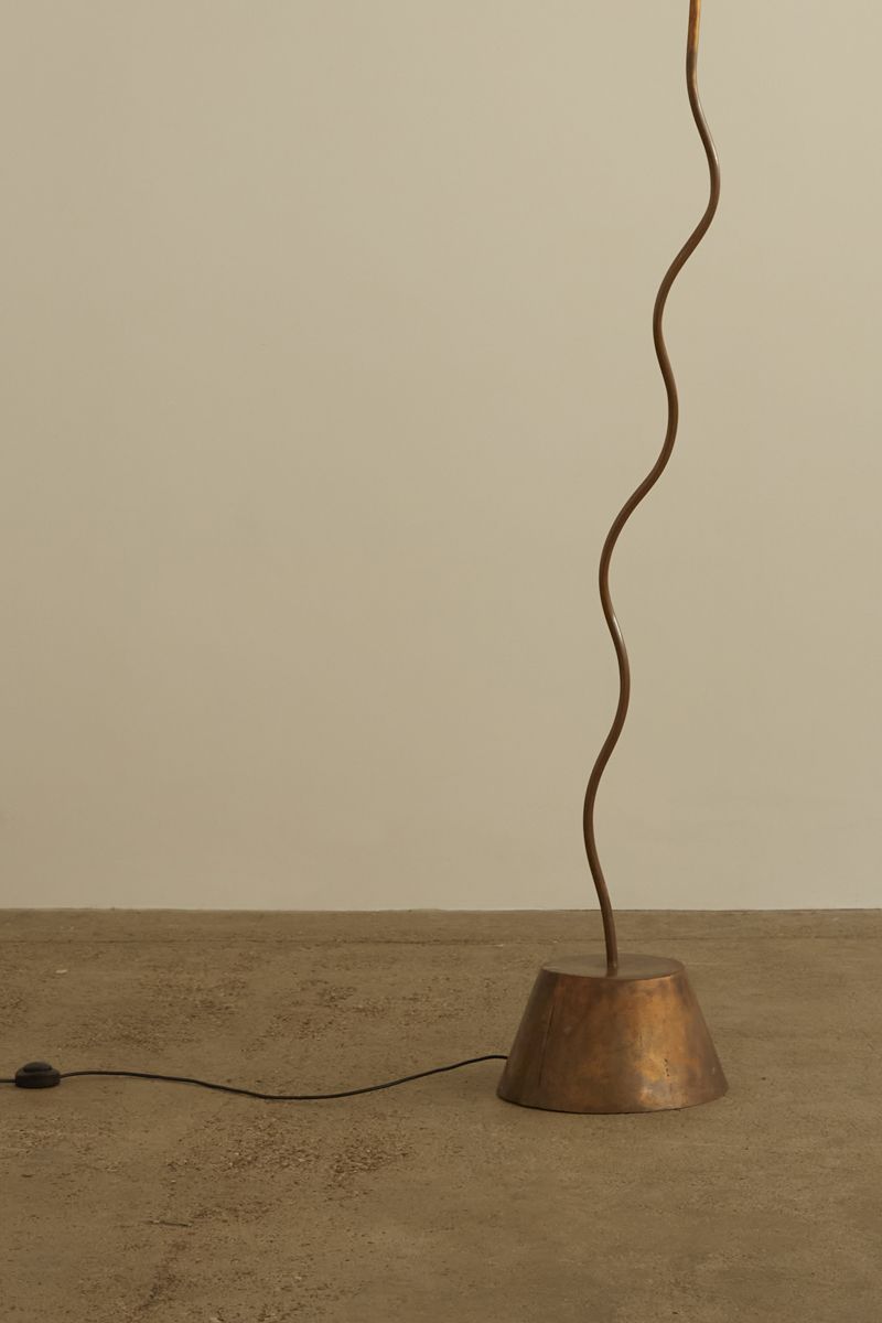 Handcrafted by an artisanal maker in Italy during the 1970s, this sculptural floor lamp features a gracefully curved design. Made entirely of copper, its patinated finish and organic form add a warm, elegant touch to any interior.