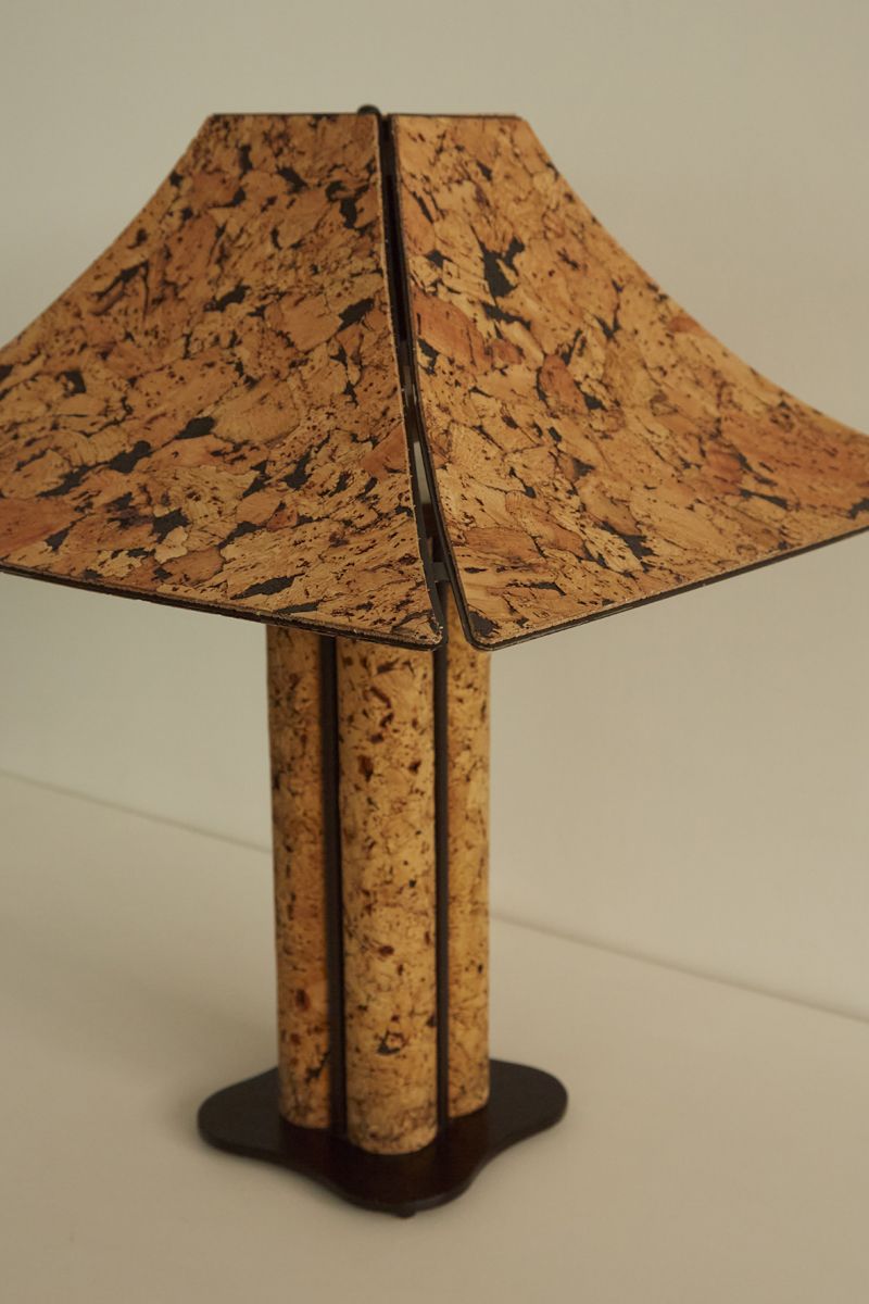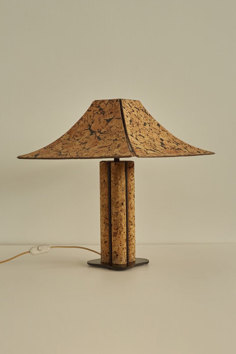Sourced in Germany, this table lamp showcases a unique design with its base and shade crafted from cork. Influenced by Ingo Maurer’s work; the natural textures and warm tones of the cork material give it a distinct organic aesthetic, perfect for adding character and charm to any interior space.