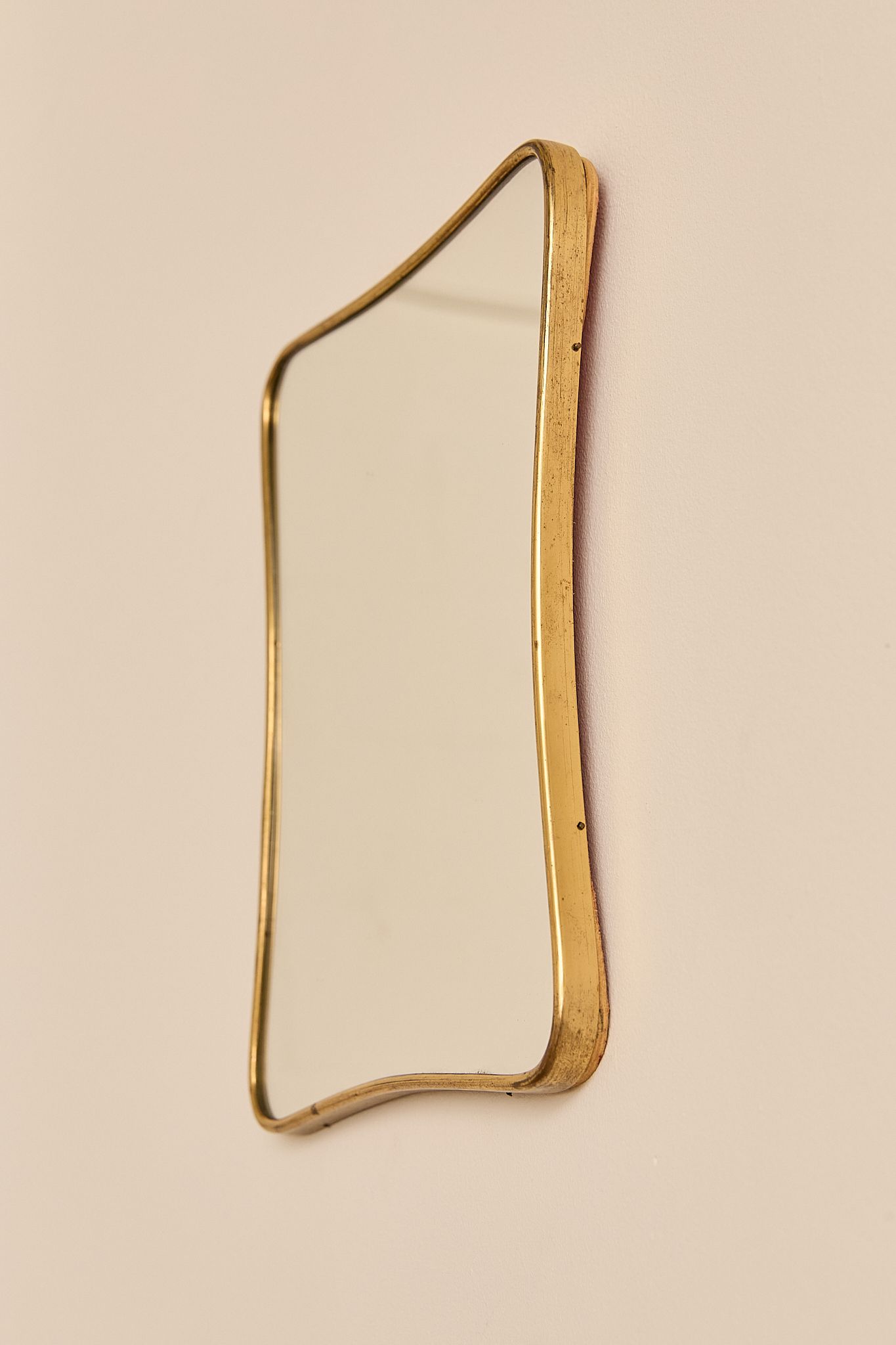 Featuring a gently curved rectangular form with a slim brass frame, this piece combines simplicity and elegance