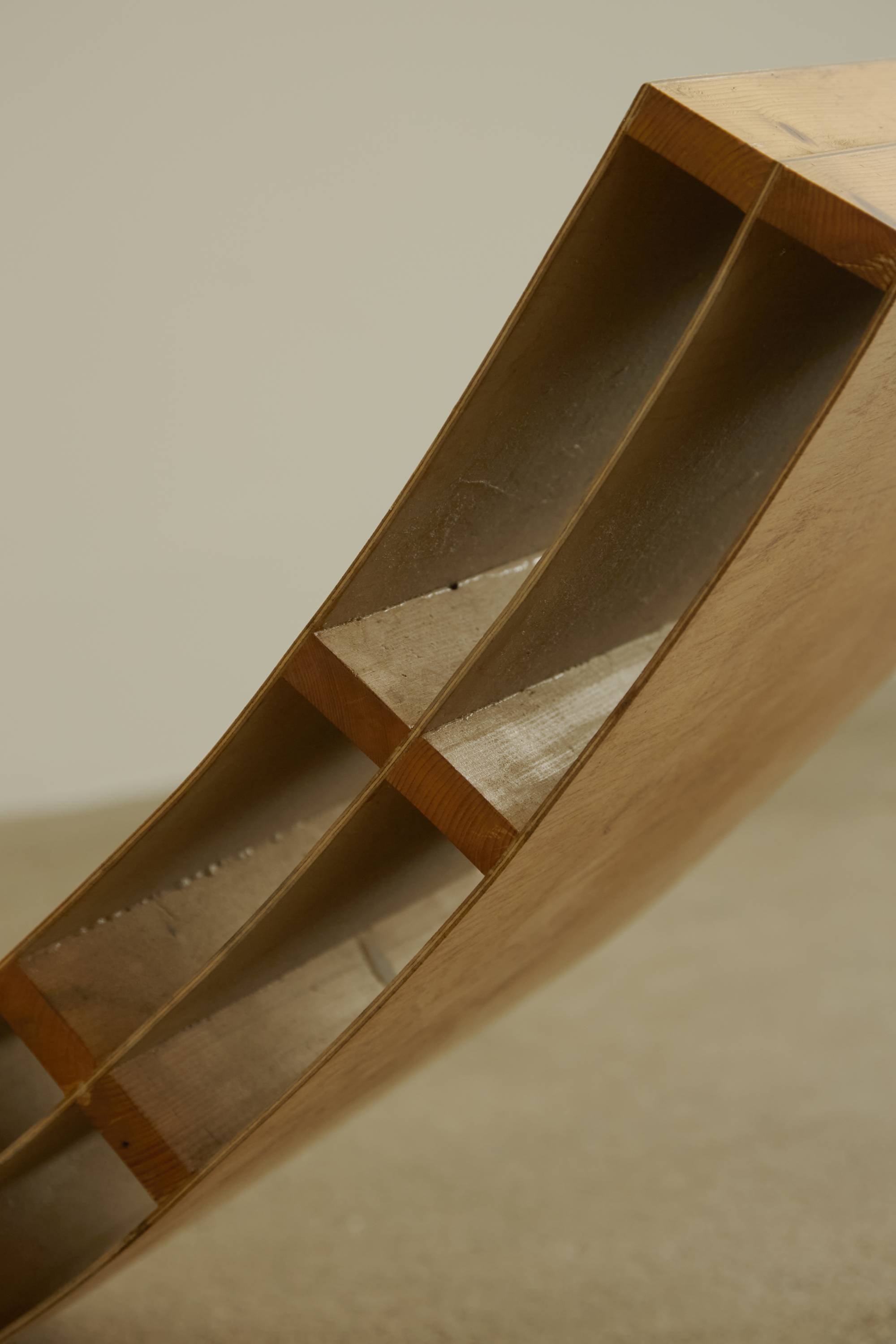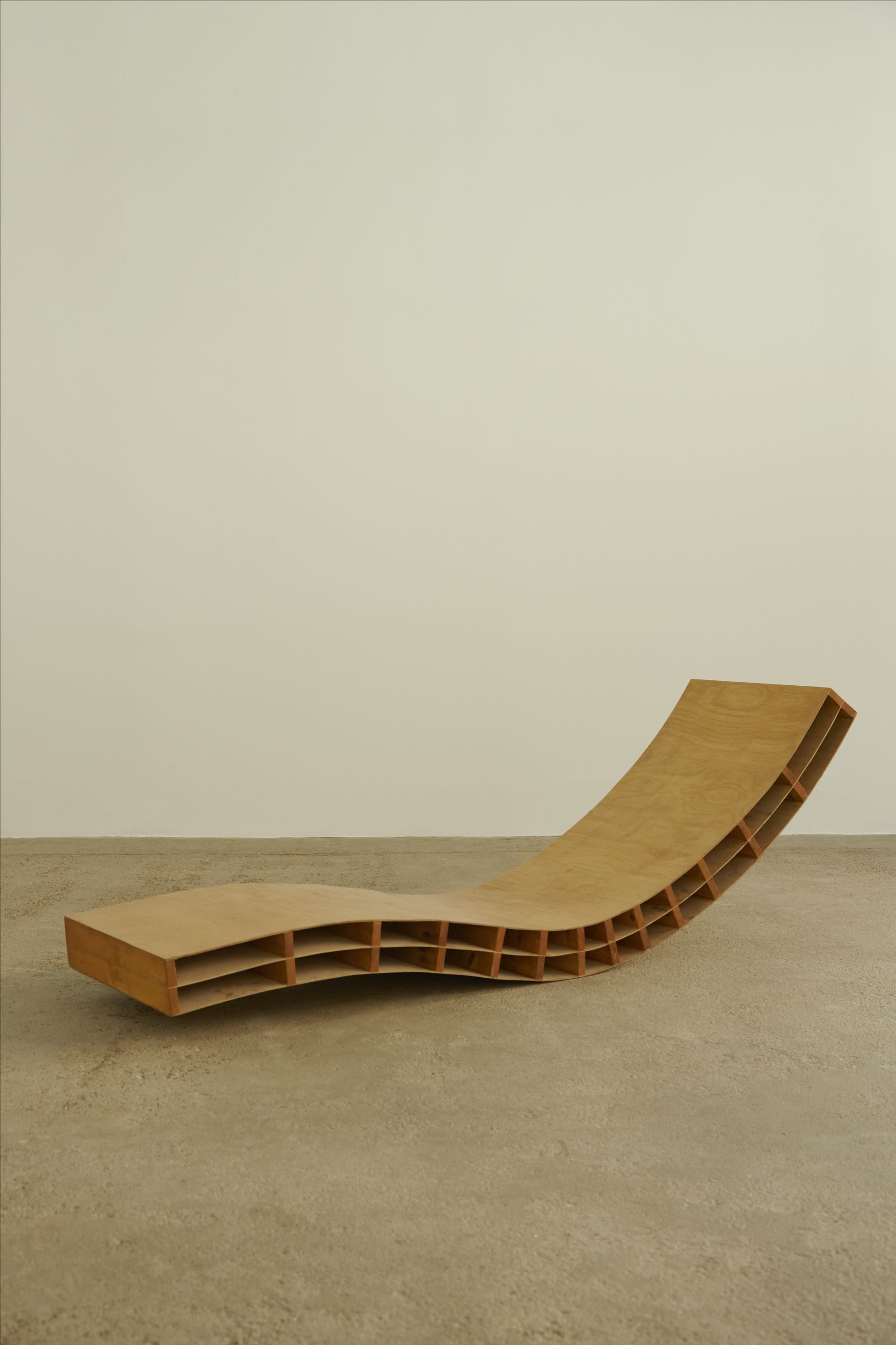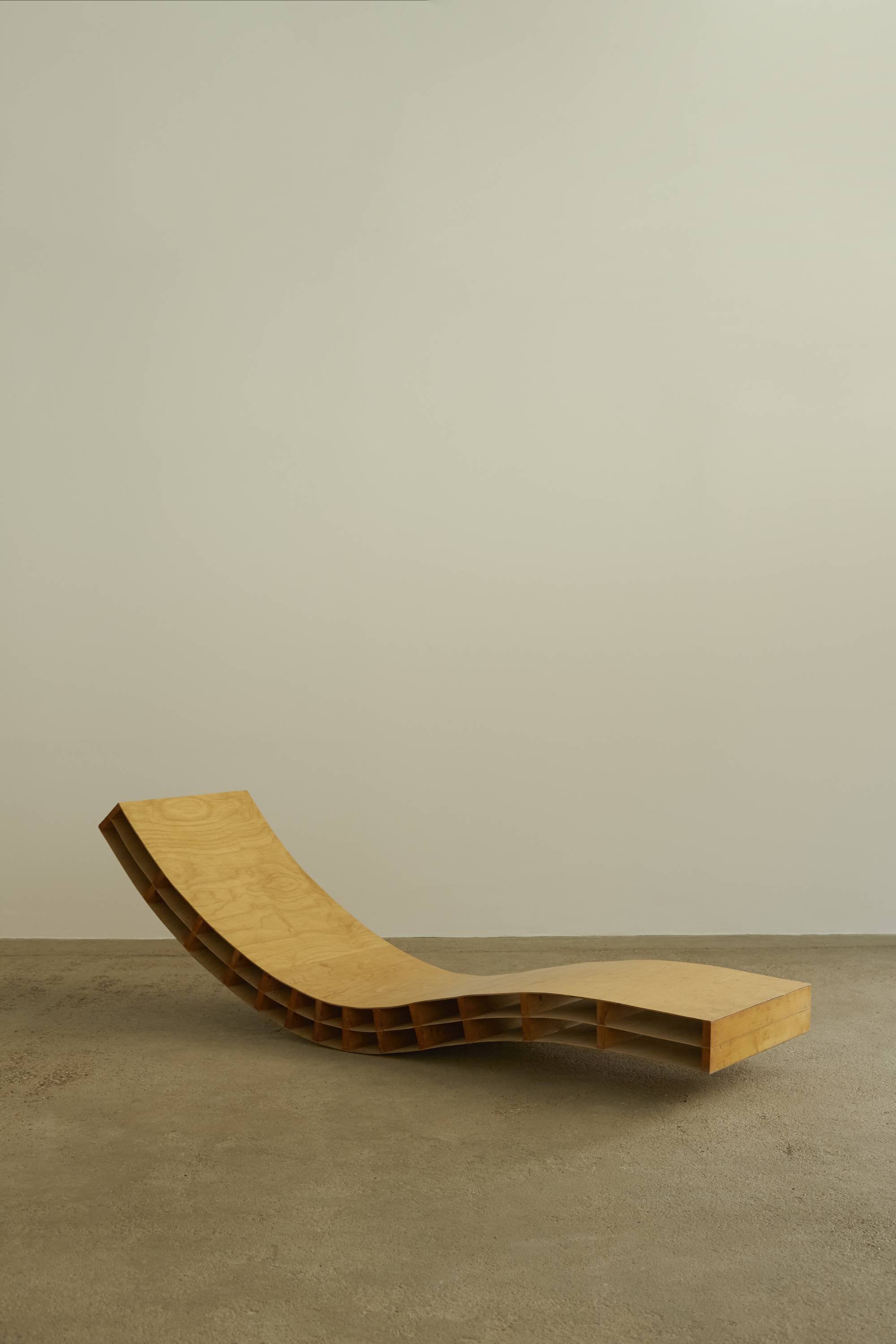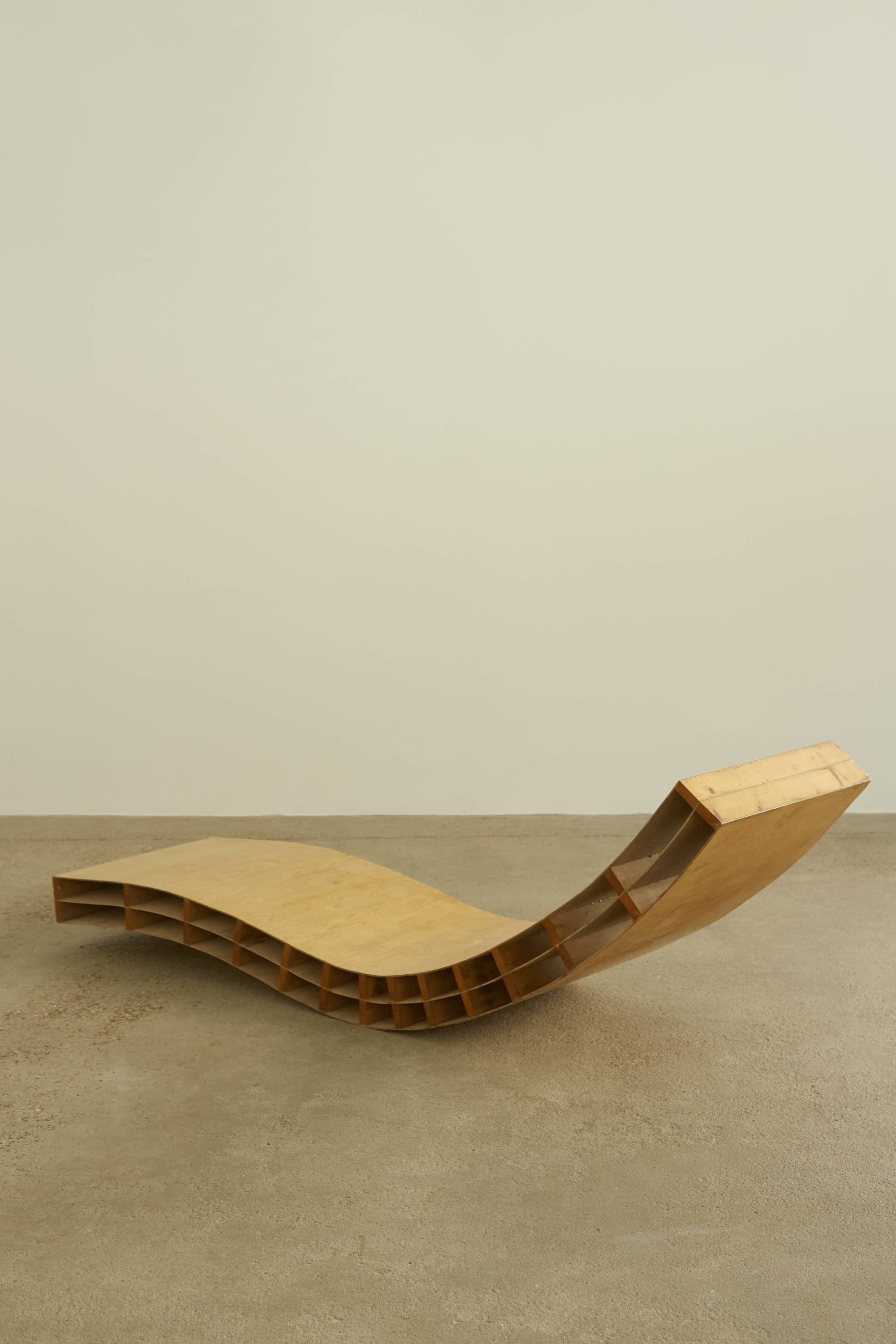 A 1970s prototype chaise sourced in the Netherlands. This decorative piece is a beautiful example of craftsmanship and shows its makers keen interest in support, structural integrity and clean lines. This lounger requires space in order to properly be displayed and admired.