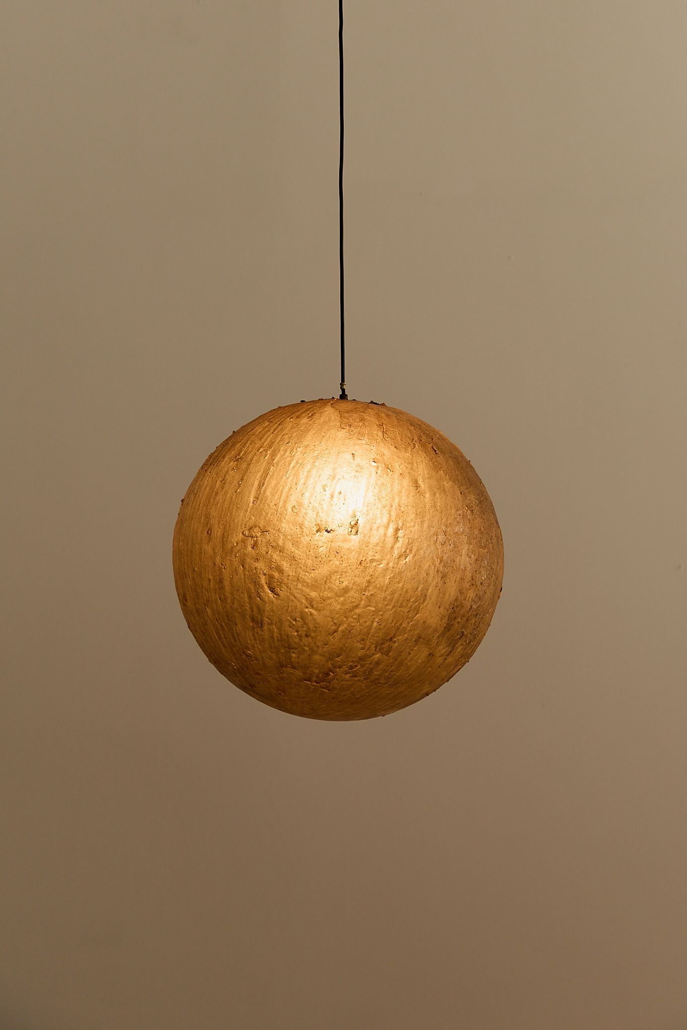 Italian fibreglass ceiling light, likely from the 1970s. Featuring a softly diffused glow and a sculptural form, this piece combines lightweight construction with a warm, ambient presence.