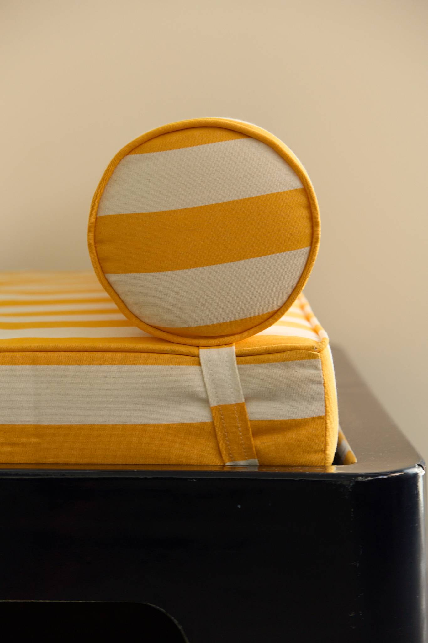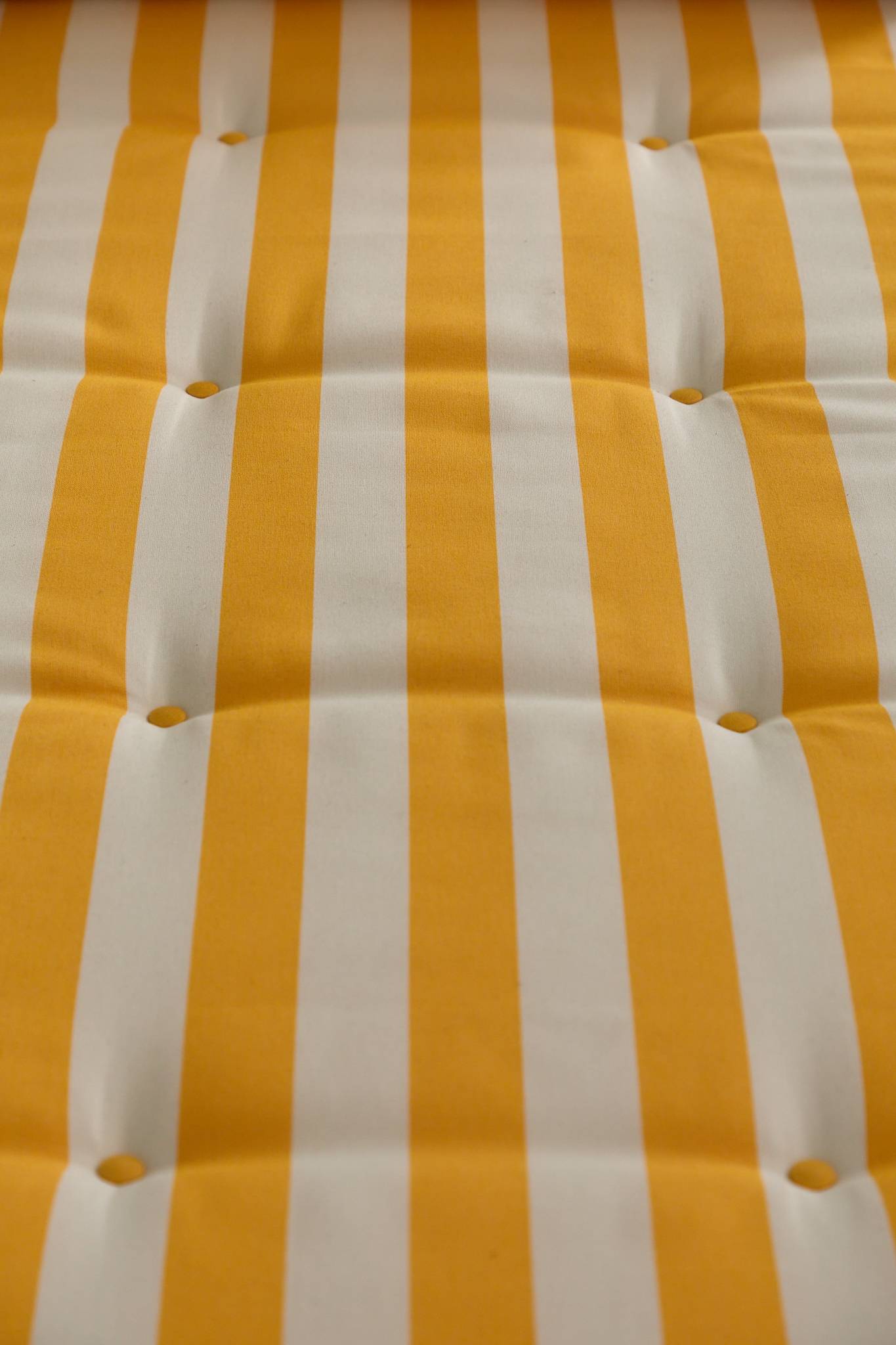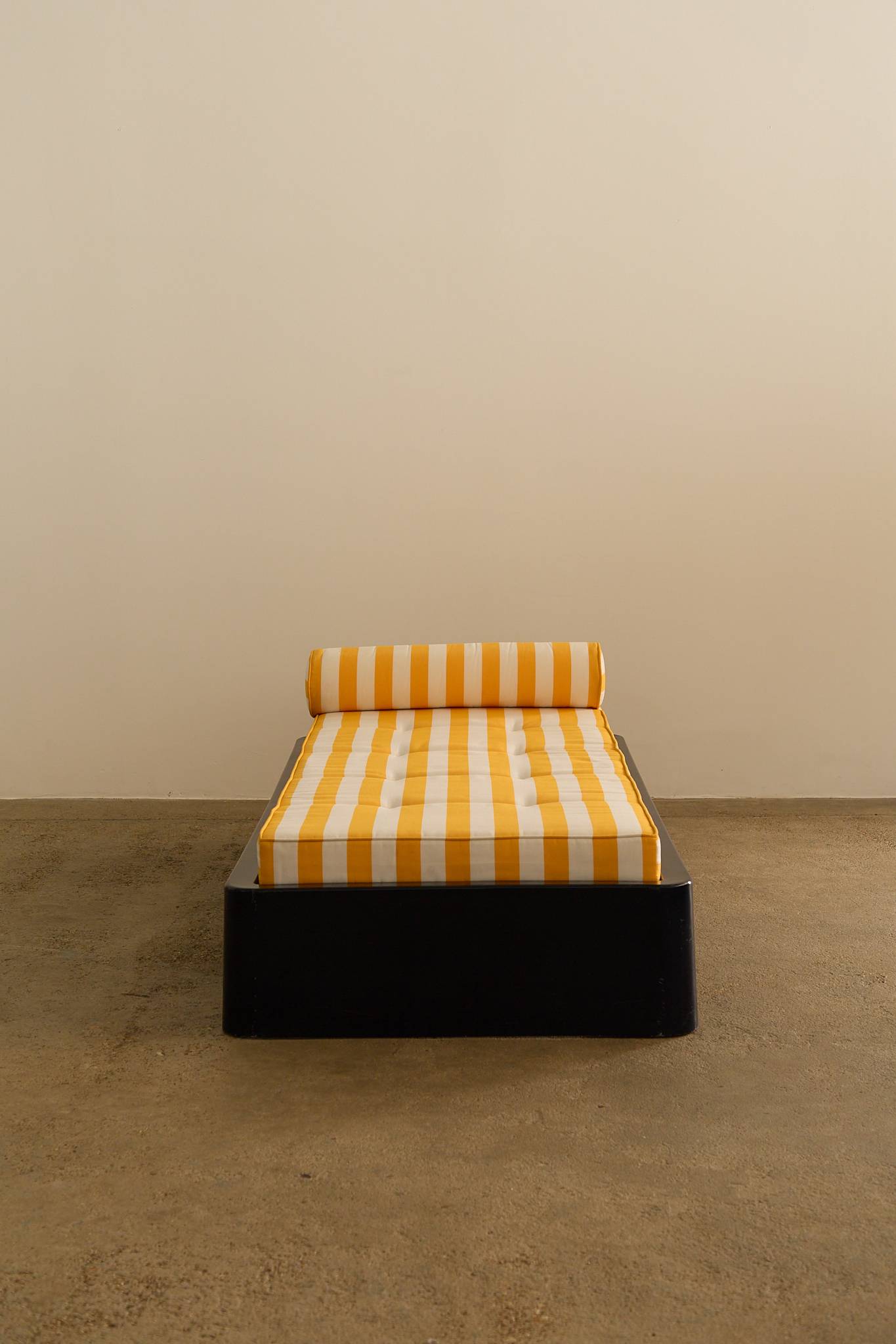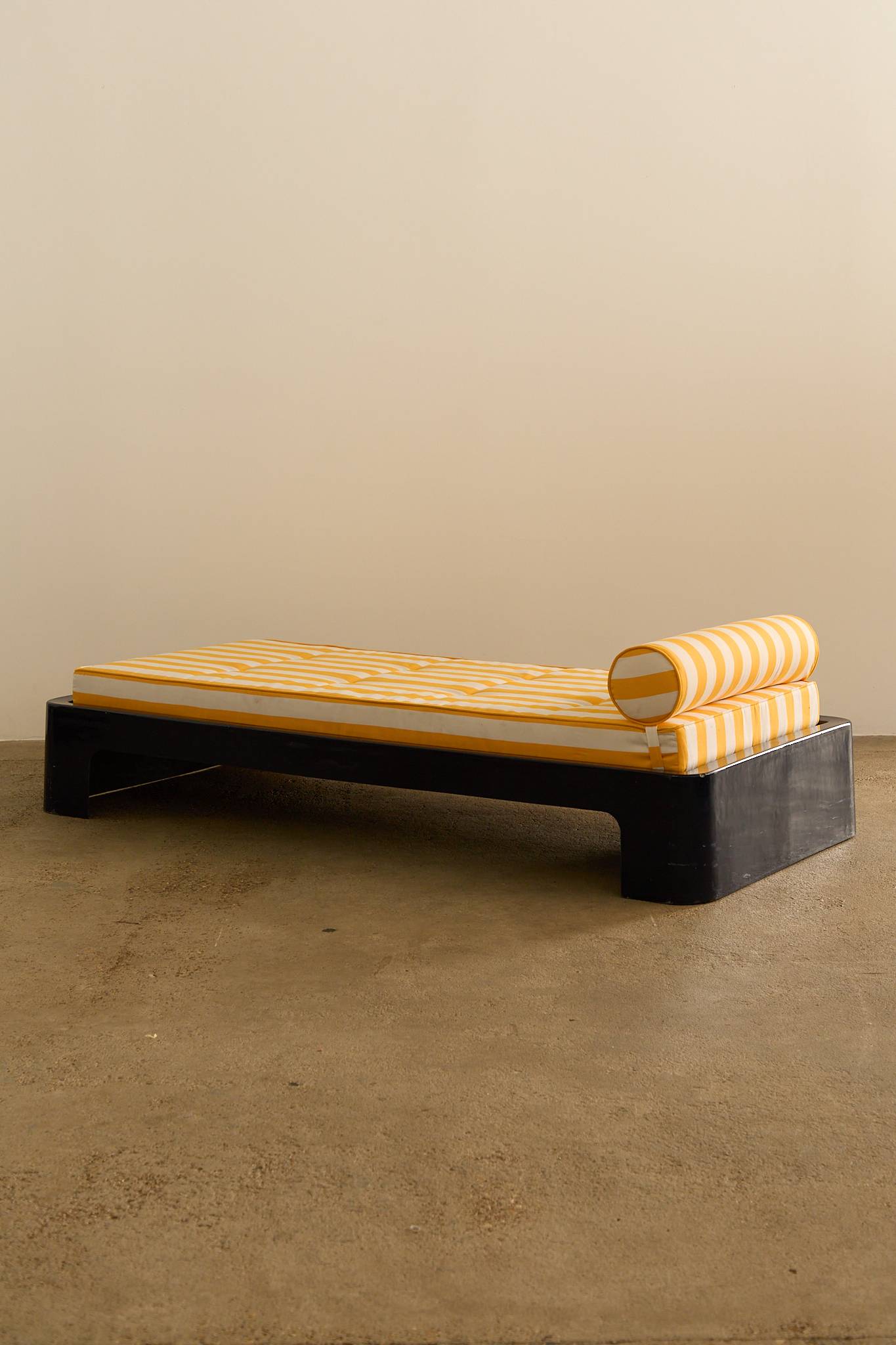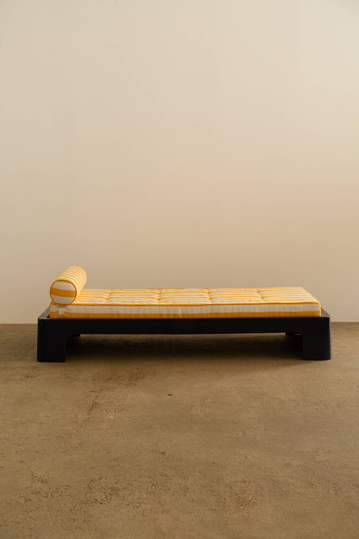 1970s French fiberglass daybed in the style of Marc Berthier. Newly upholstered in striped cotton with a dark blue structure. The mattress is separate from base / detachable.