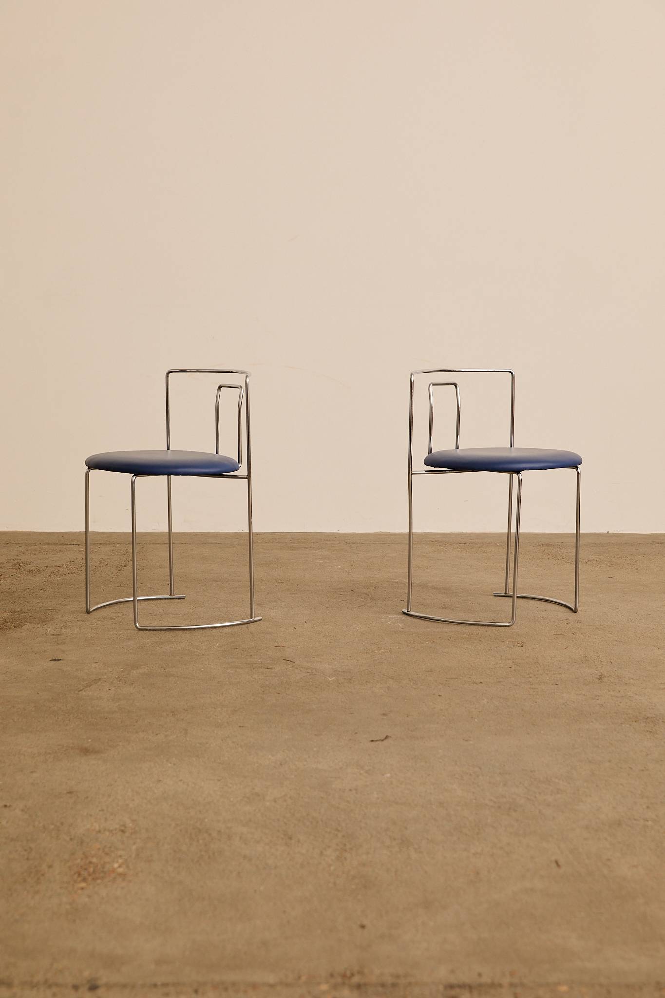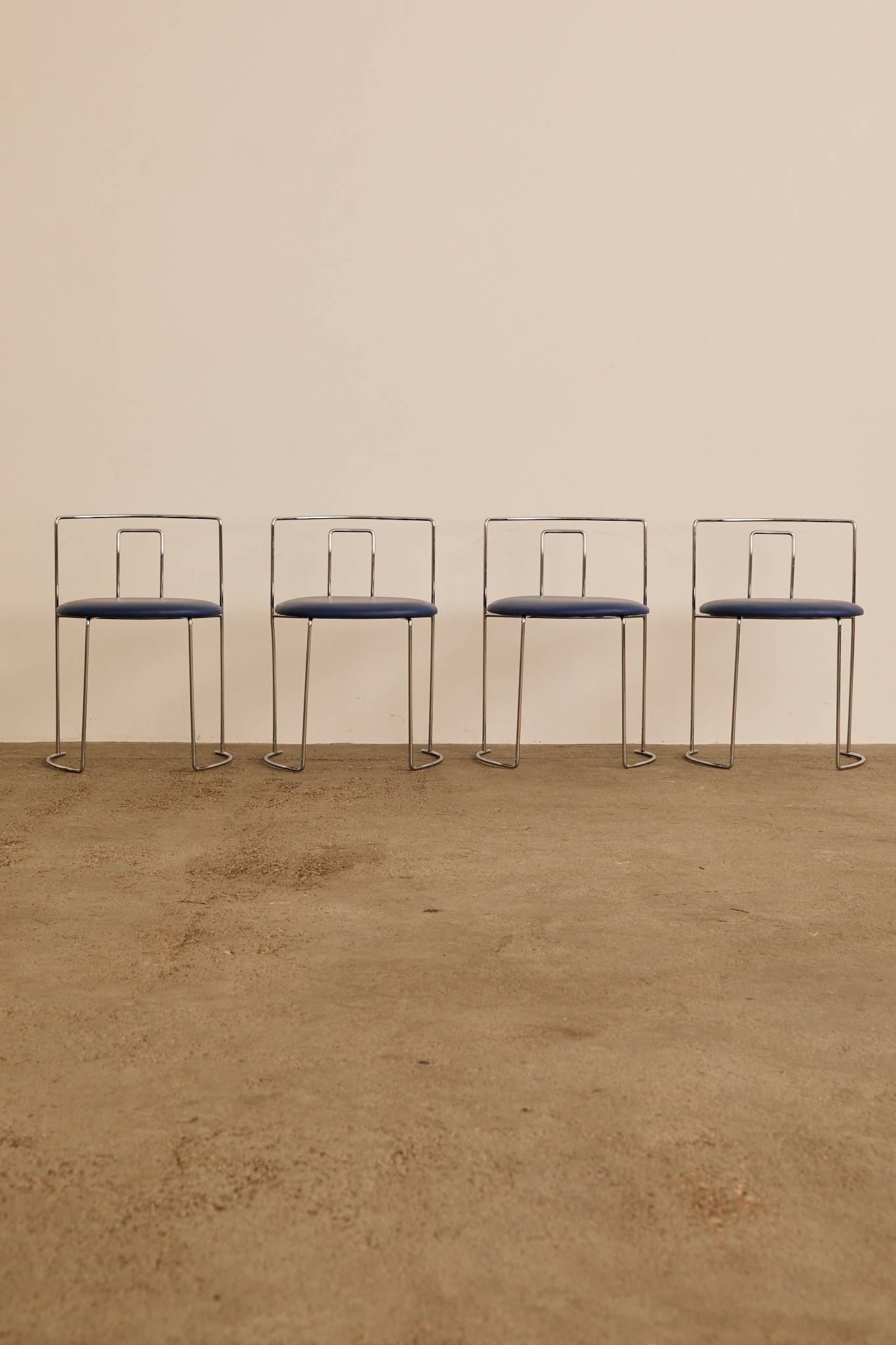 Iconic Italian design chairs from the 1970s, model “Gaja” by Kazuhide Takahama for Simon Gavina. Lightweight and elegant, featuring a delicate, slender steel frame with a clean architectural silhouette; designed to stack for easy, space-saving storage. Price is for the set. Reupholstery service available upon request.