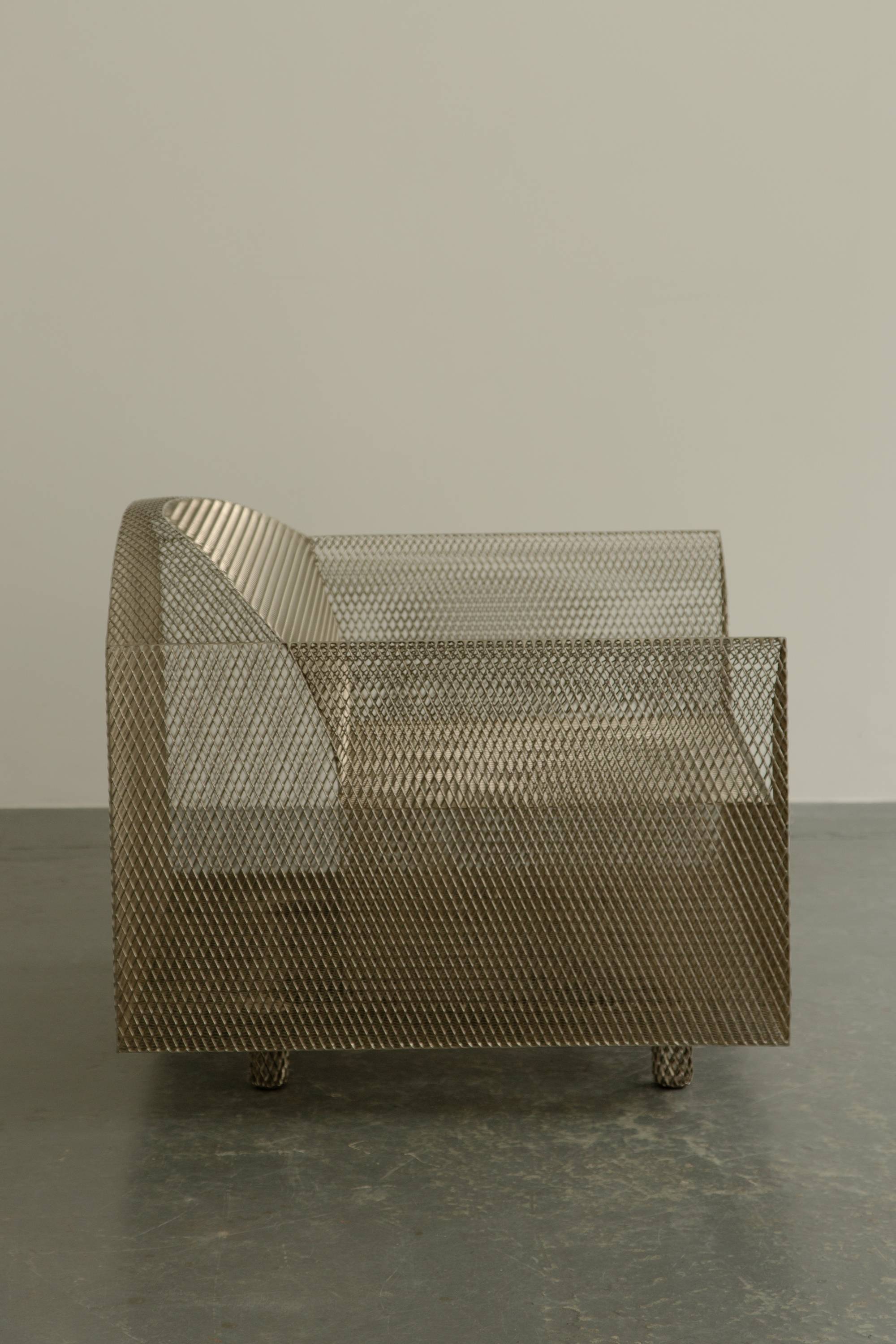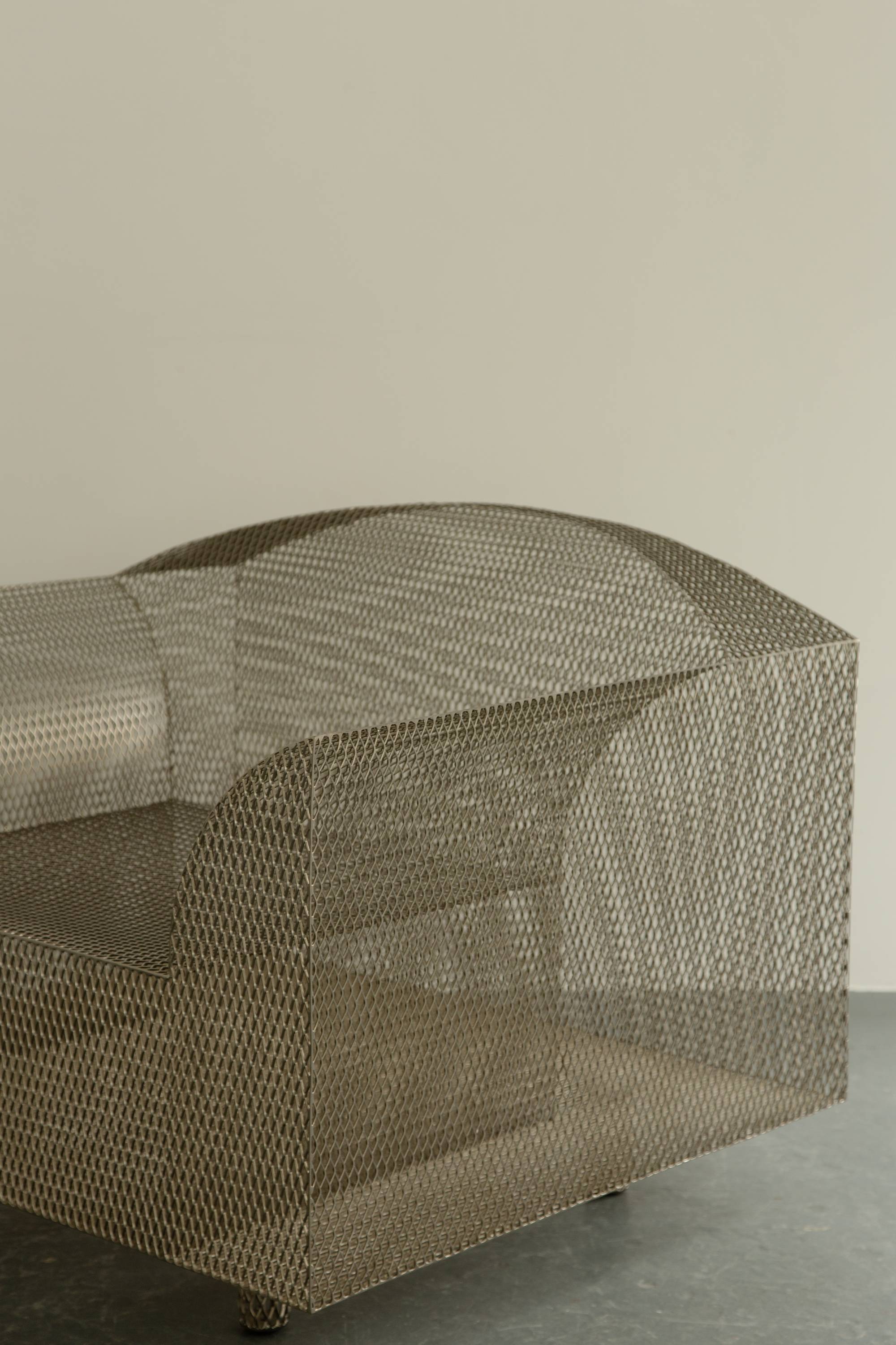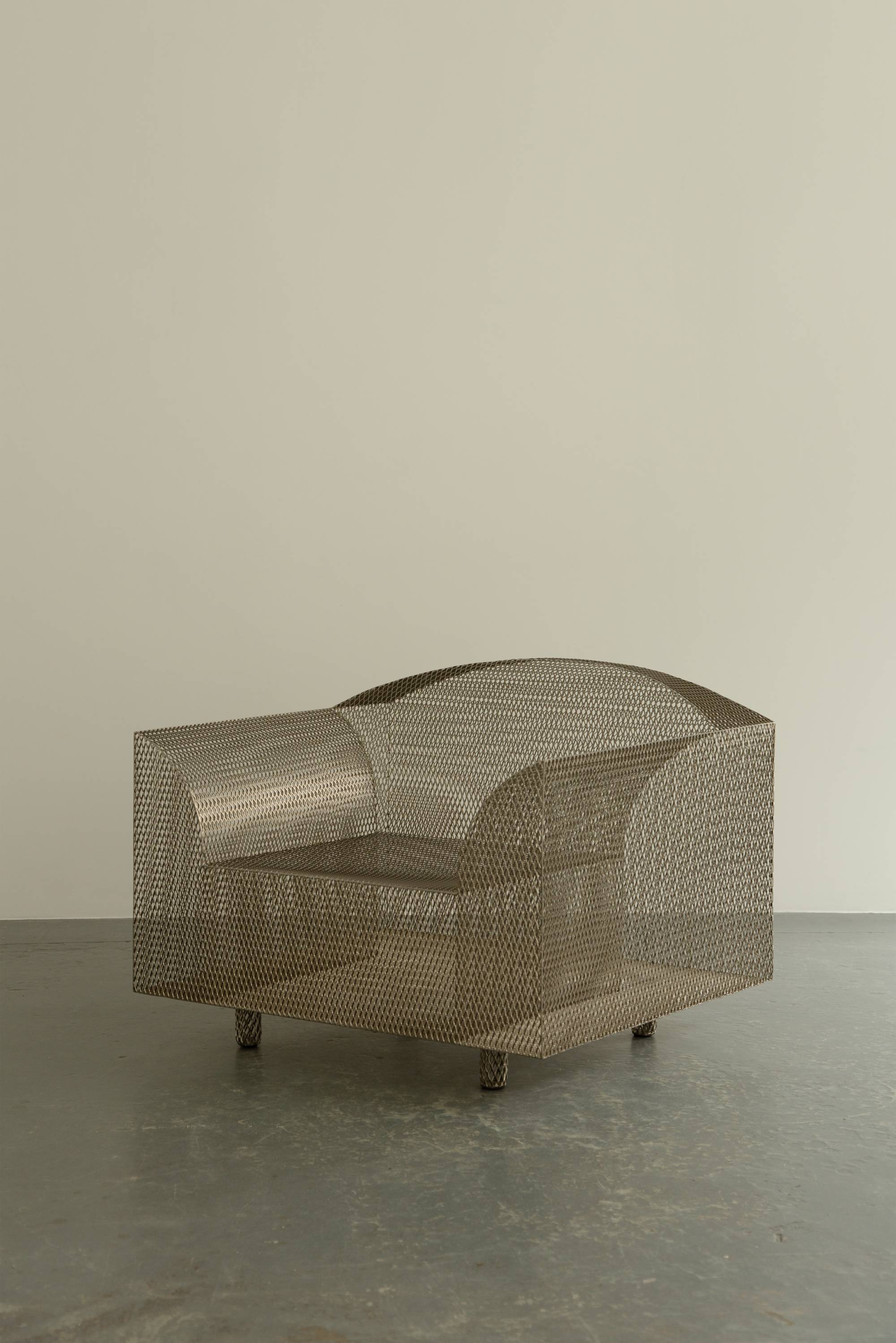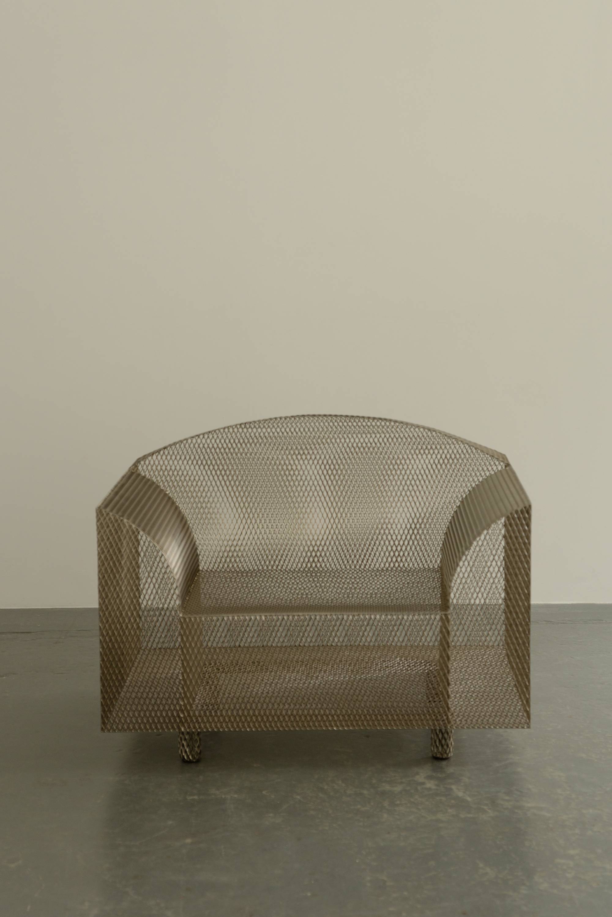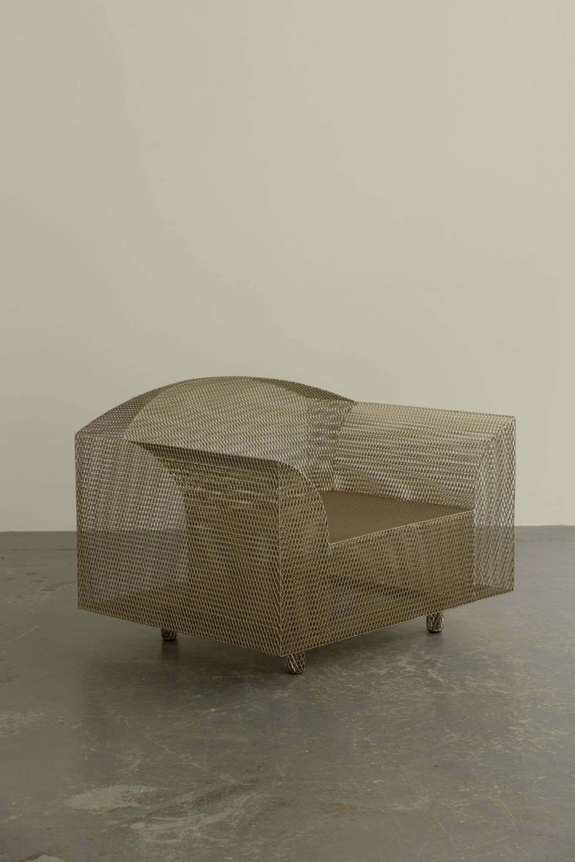 Shiro Kuramata’s ‘How High the Moon’ chair is famously ironic for its use of thin metal mesh to reinterpret the form of a traditionally wide and bulky upholstered armchair. The famous Japanese architect and designer’s work was hugely influential to his peers both inside and outside of Japan, towards the end of the 1980s he was invited by Ettore Sottsass to become a founding member of the Memphis Group. This chair is a limited edition piece manufactured by the Swiss manufacturer Vitra as part of their art furniture line, Vitra Edition.