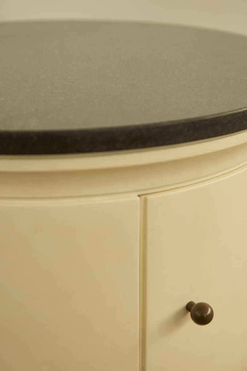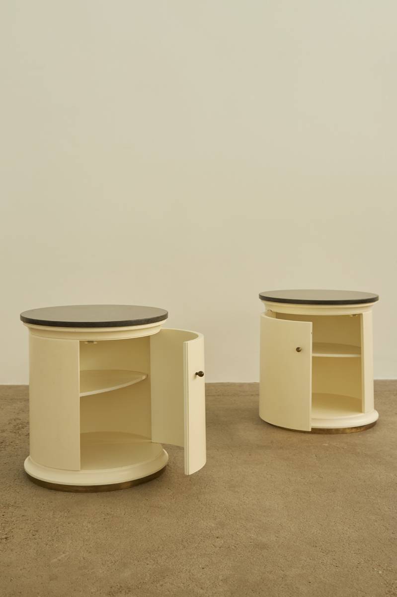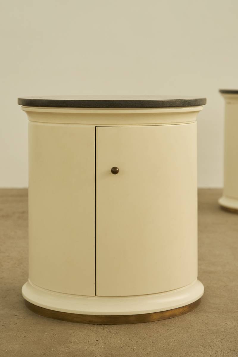 1960s Italian bedside tables / storage in lacquered wood, granite and original brass knobs.
