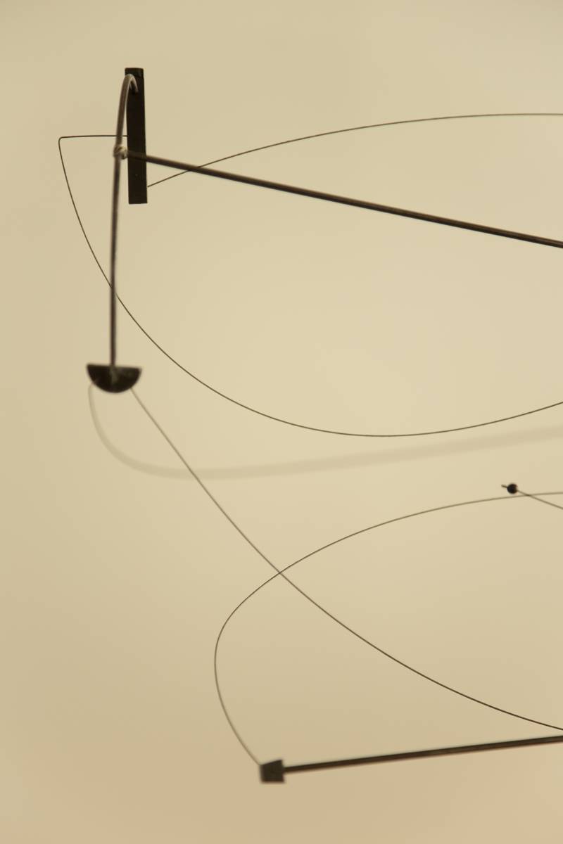 This elegant suspension piece by Arnaud Bazille, known as BAZ, blends minimalist design with sculptural expression. Mobile lunaire features a delicate arrangement of rods and tension wires that create sweeping, orbital curves in space, reminiscent of celestial motion. The dynamic composition balances precision with organic flow, transforming light and structure into a floating kinetic artwork. Both functional and poetic, the piece is signed on a small disc and stands as a striking example of contemporary mobile design.