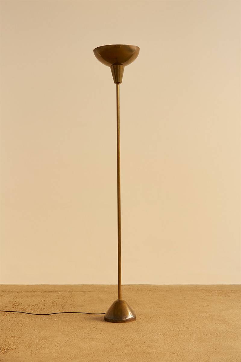 A rounded base contrasts with the brass uplighter, with a beautiful patina throughout. Produced by Azucena in the 1940s. Milanese architect and designer Luigi Caccia Dominioni (1913–2016) played a key role in postwar Milan’s revival and won multiple Compasso d’Oro awards. He first gained recognition collaborating with Livio and Pier Giacomo Castiglioni on pioneering radios before co-founding Azucena in 1947 with Ignazio Gardella and Corrado Corradi Dell’Acqua.