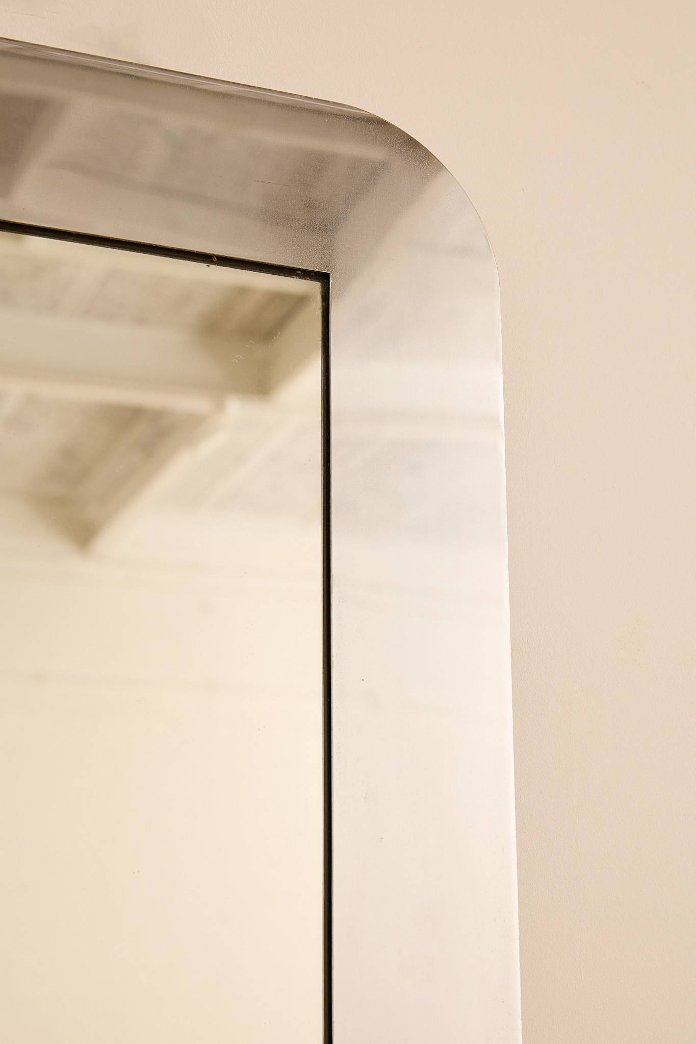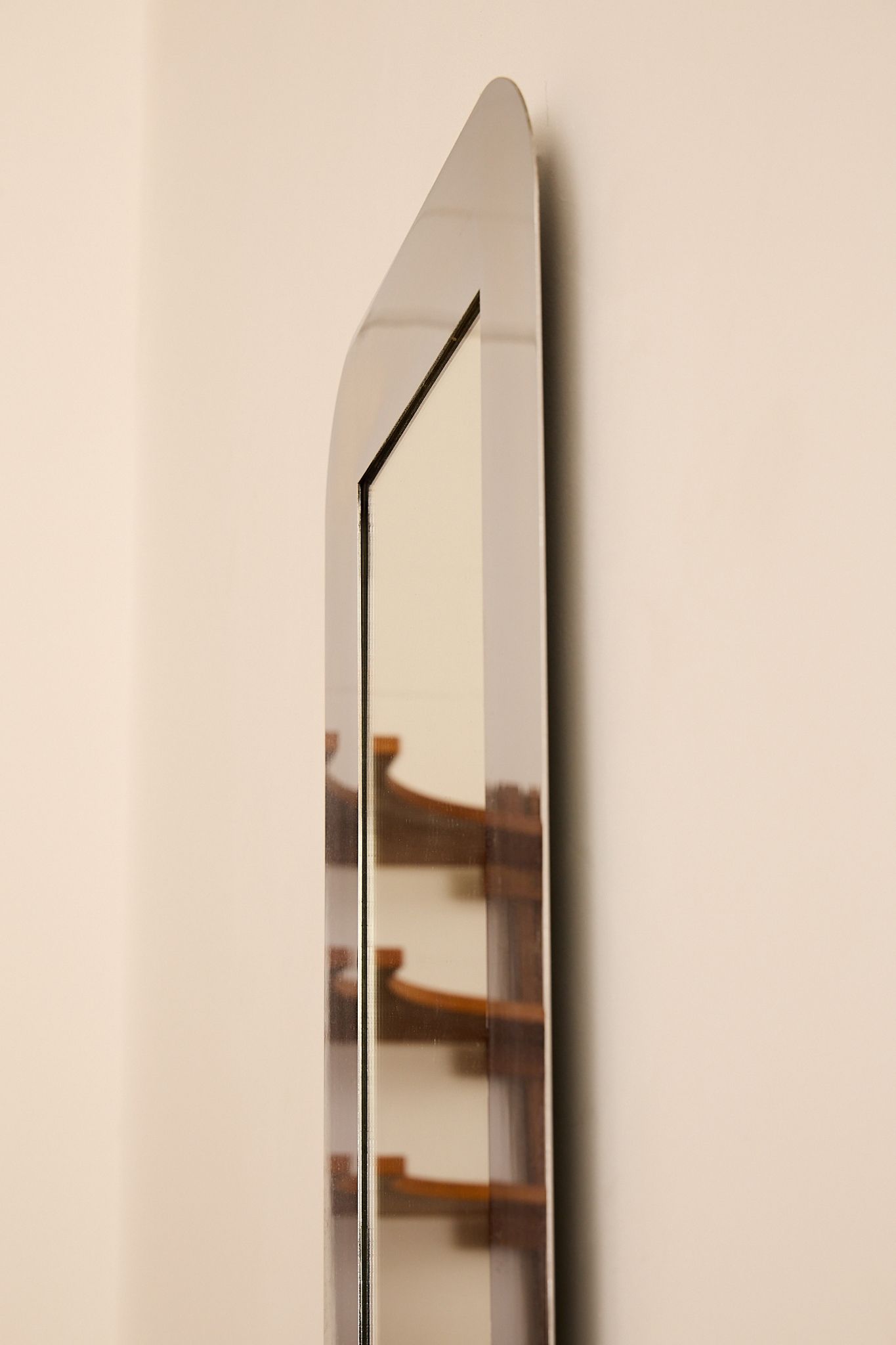 Mirolunga mirror with steel frame by Giuliana Gramigna and Sergio Mazza, Italy. Equipped with a suspension system for vertical or horizontal wall mounting.