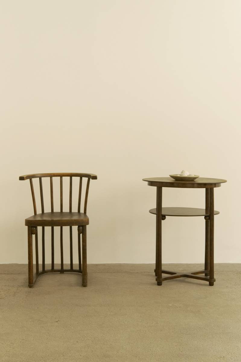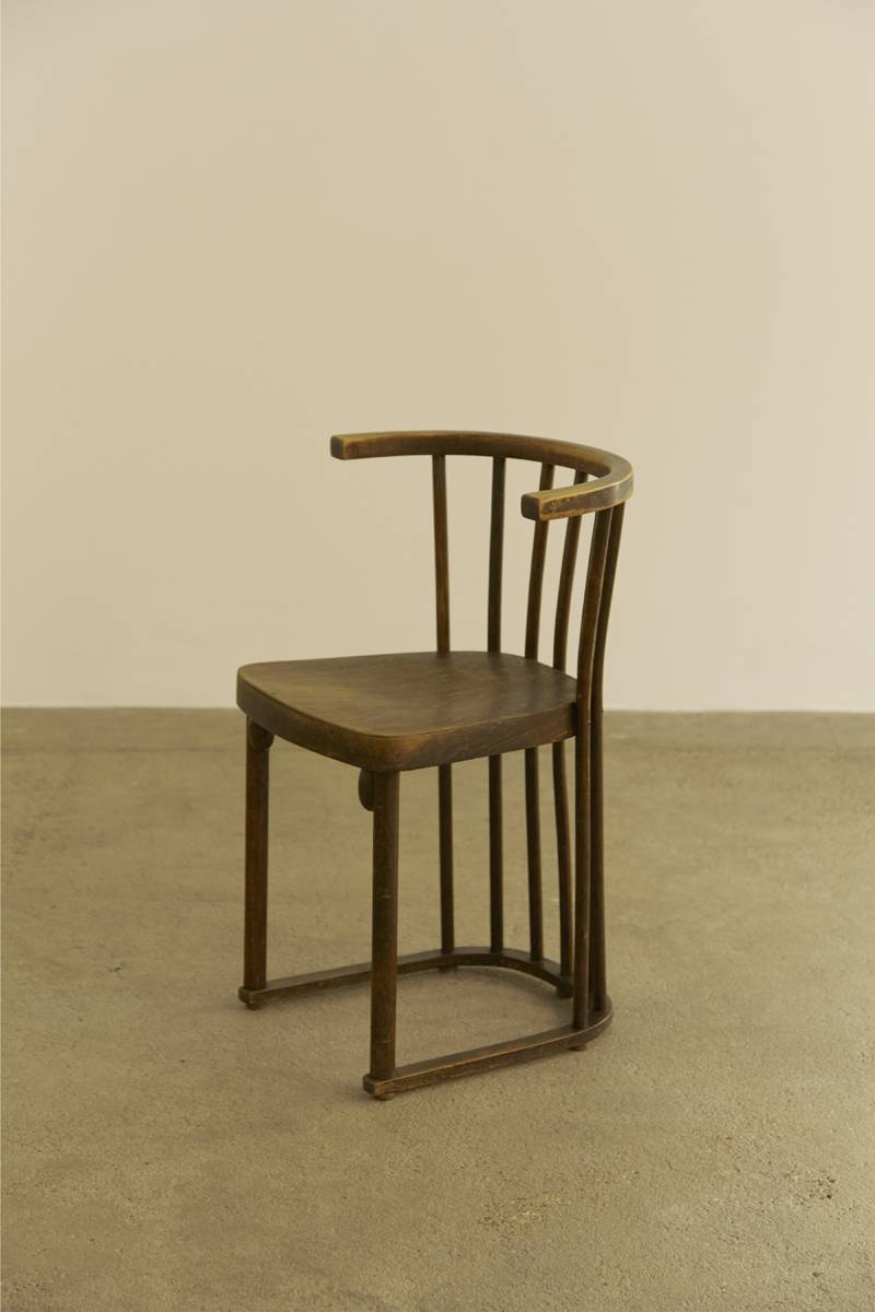 Marcel Kammerer, Nr. 761 from 1909. Josef Hoffmann used it to provide seating for the Viennese cabaret Fledermaus, which is why it received particular attention. . Stylist of the chair model: The strict structure of vertical and horizontal lines corresponds to Hoffmann’s geometric concept at the time; even the curved parts are subordinate to the structure. Only the balls - they support and decorate at the same time - break through the severity in a playful way. Its shape - at the same time light and solid, strict and elegant - made the chair a prime example of the modern Viennese style. Very beautiful together with the Hoffmann table.