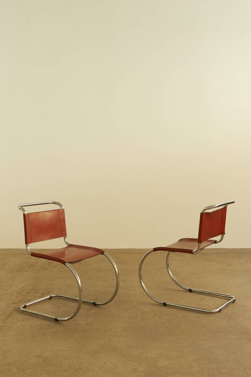 This set of 10 iconic MR10 dining chairs, designed by Ludwig Mies van der Rohe and manufactured by Knoll International, is celebrated for its sleek design, exceptional metal craftsmanship, and overall comfort. Great leather condition and chrome is in super condition too.