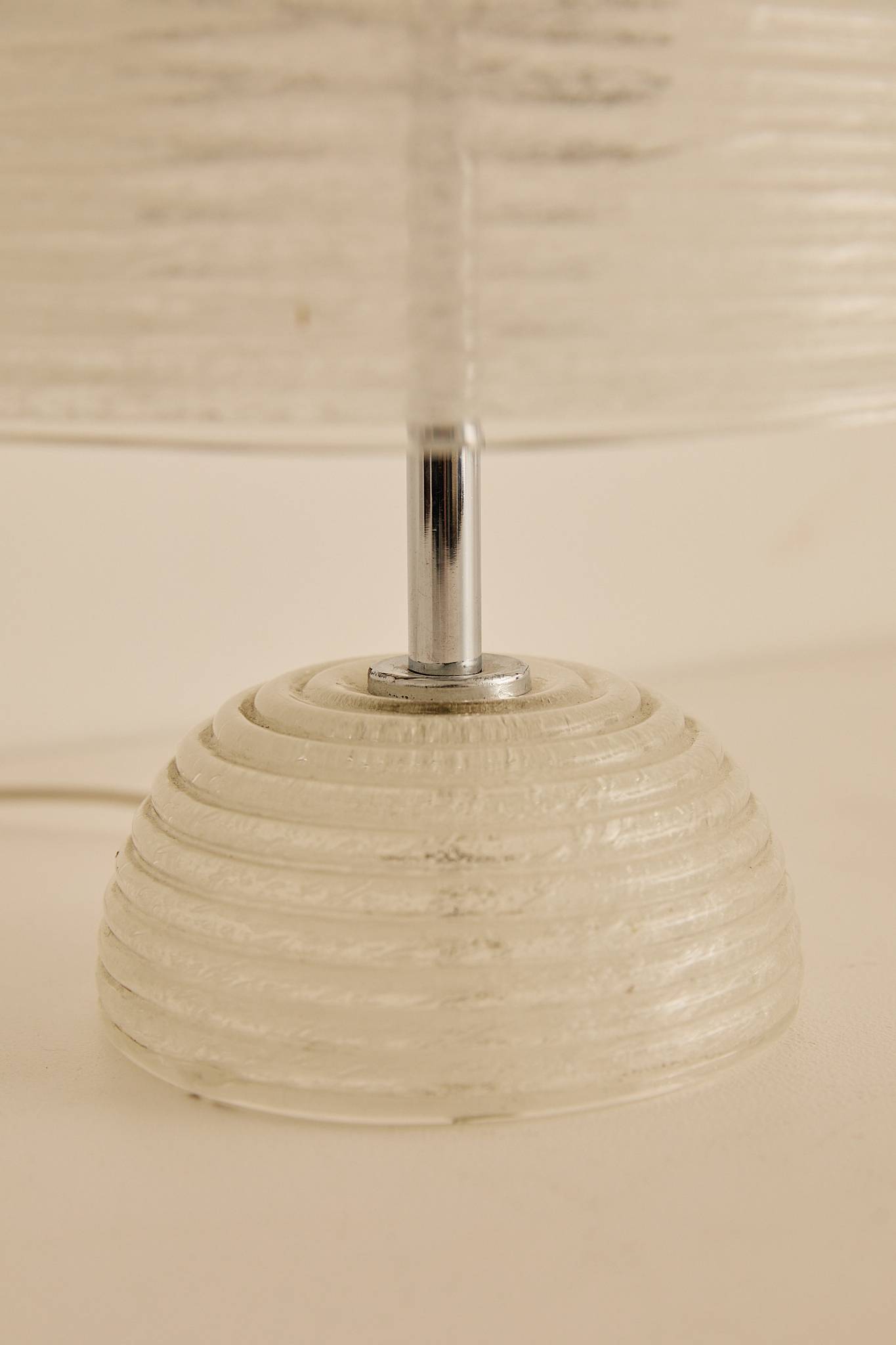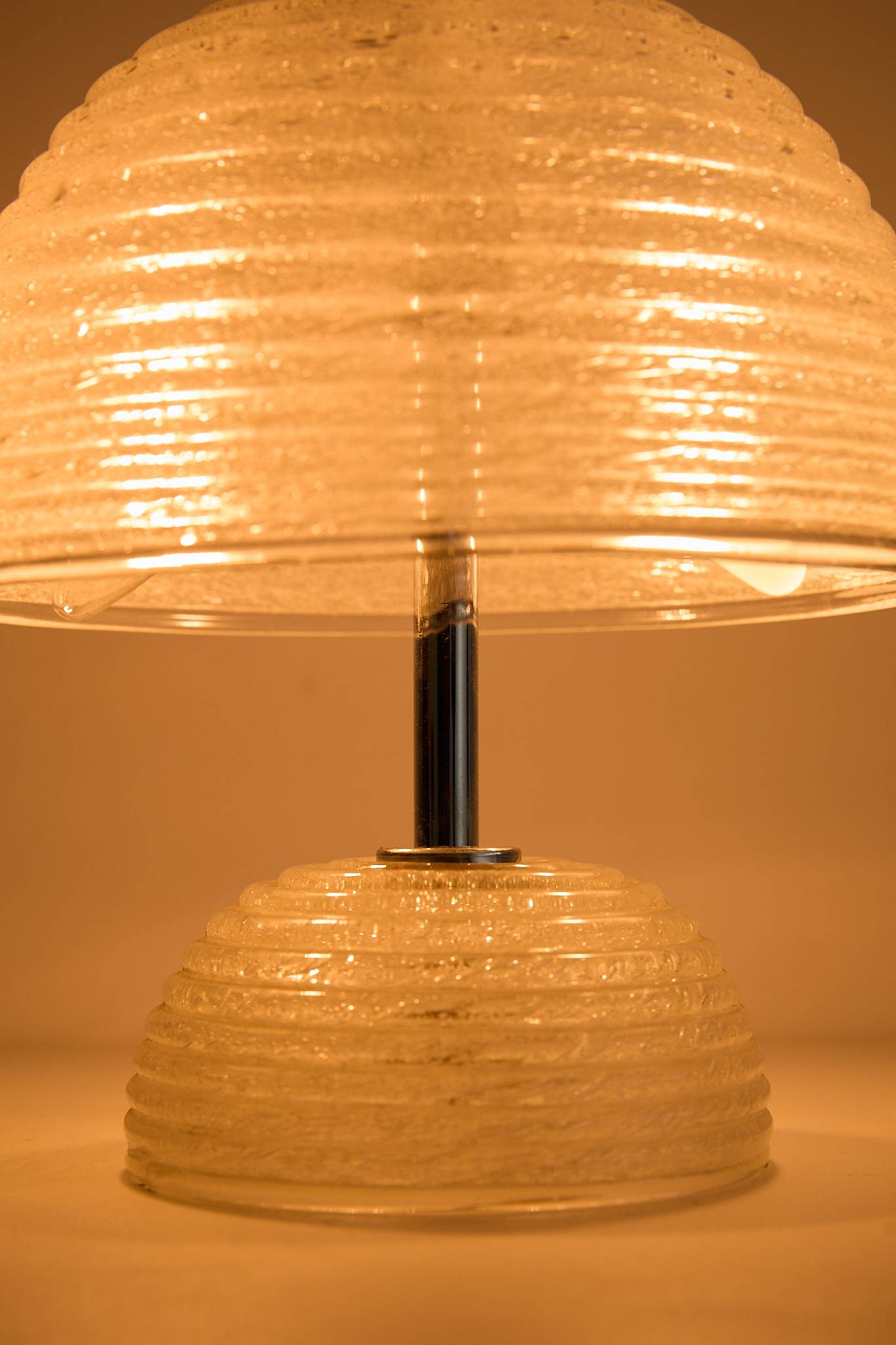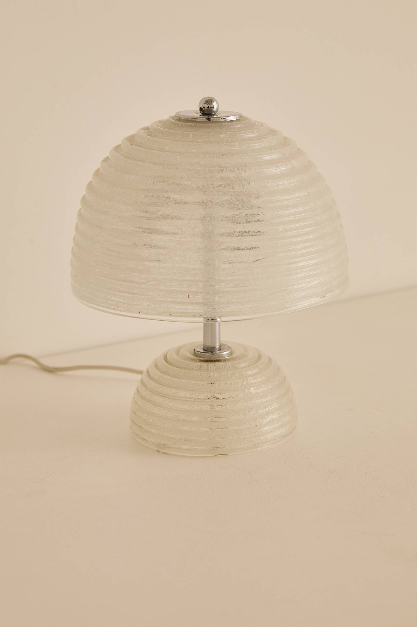 Ribbed Murano Glass Table Lamp textured glass dome shade and matching glass base, finished with chrome hardware for a soft, warm ambient glow.