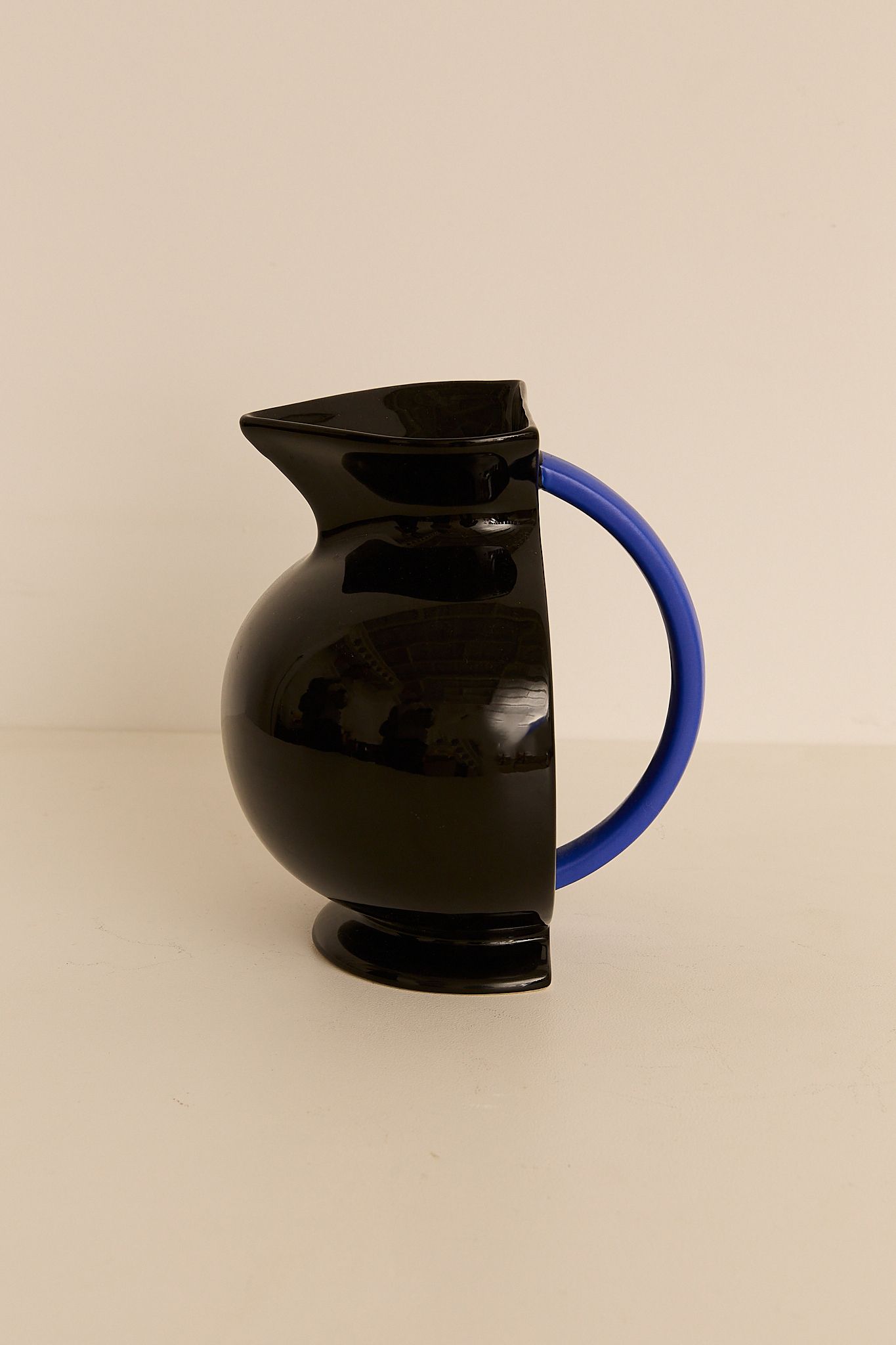 Fabulous Bitossi “Hollywood” pitcher in striking black and blue. Designed by Marco Zanini for the Memphis collection and crafted in Italy. A bold postmodern statement piece from an iconic design era.