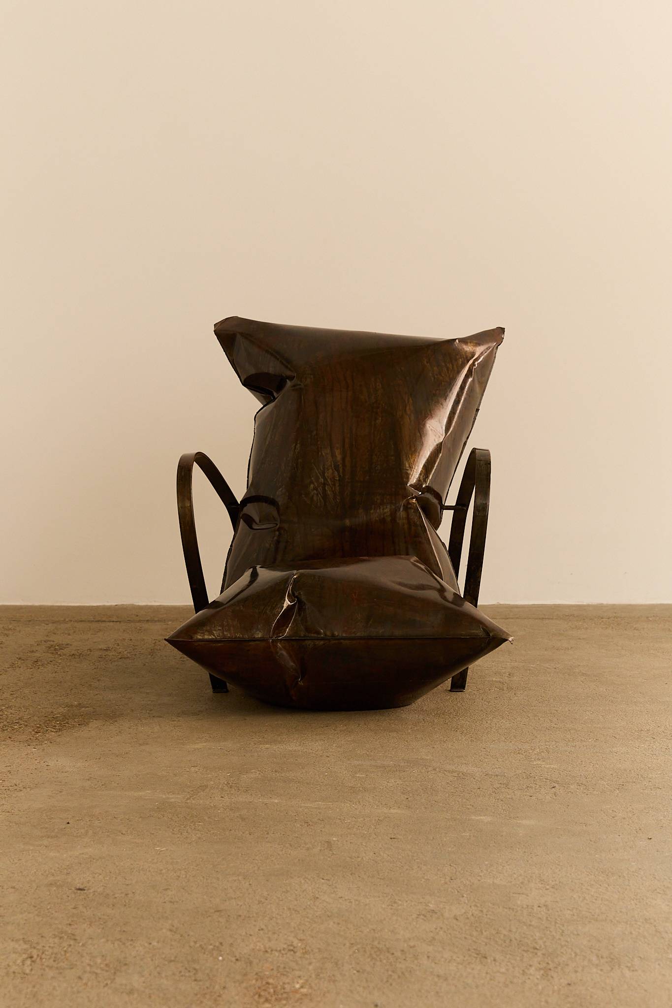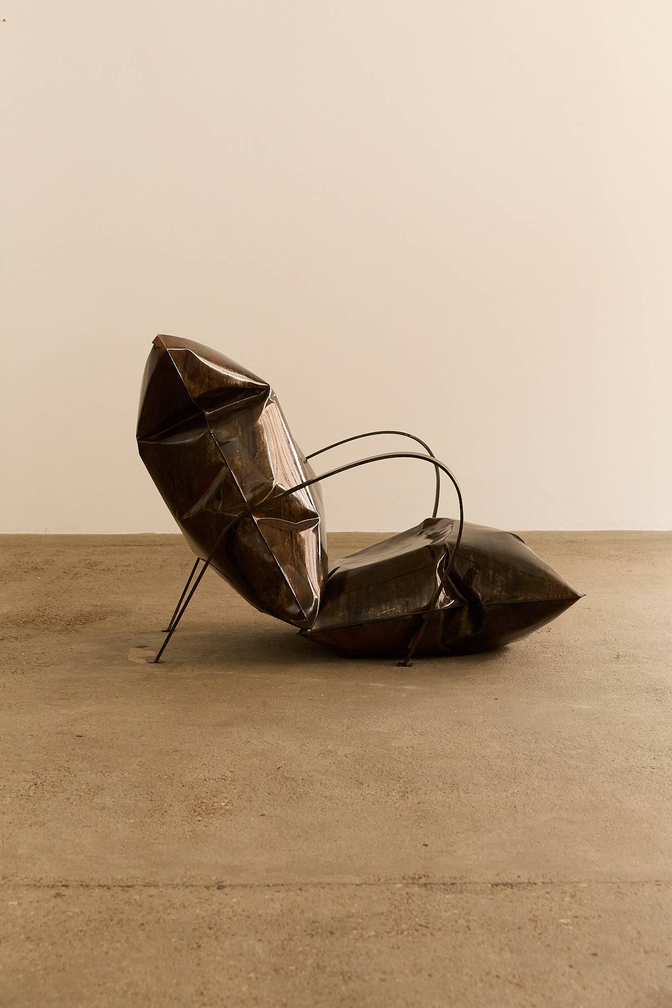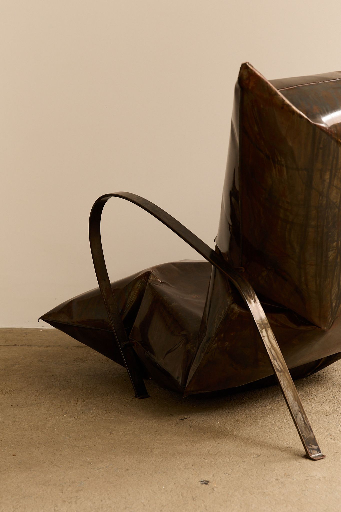 Striking and sculptural lounge chair, likely of German origin, attributed to the Neu Design movement of the 1980s. A unique, one-off piece that exemplifies the bold experimentation and industrial aesthetic of postmodern design.