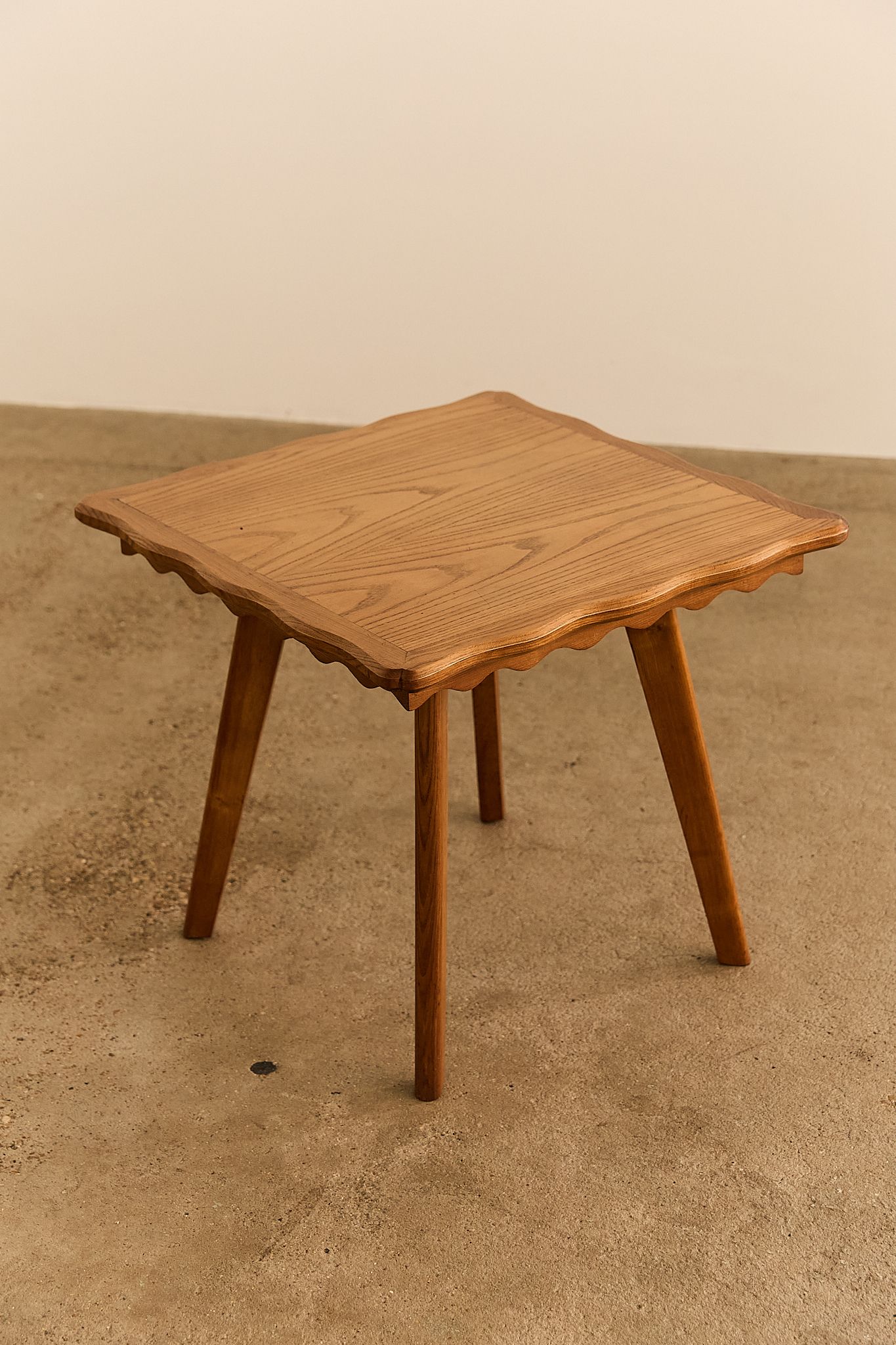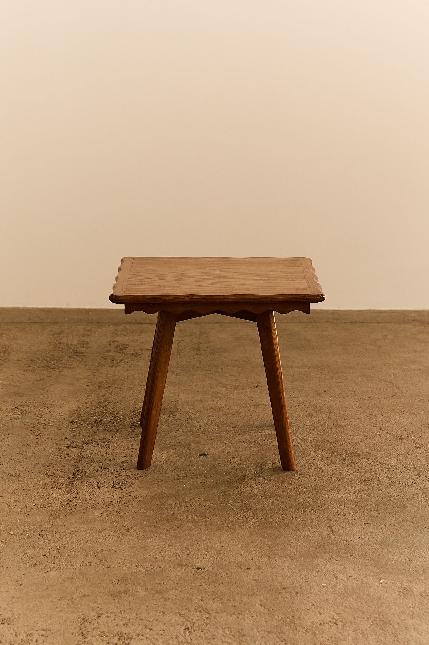 An elegant side table att to Paolo Buffa. Crafted in solid wood, the table features a subtly scalloped edge and gently tapered legs; hallmarks of Buffa’s refined style. The tabletop showcases beautiful natural grain, combining craftsmanship with understated ornamentation.