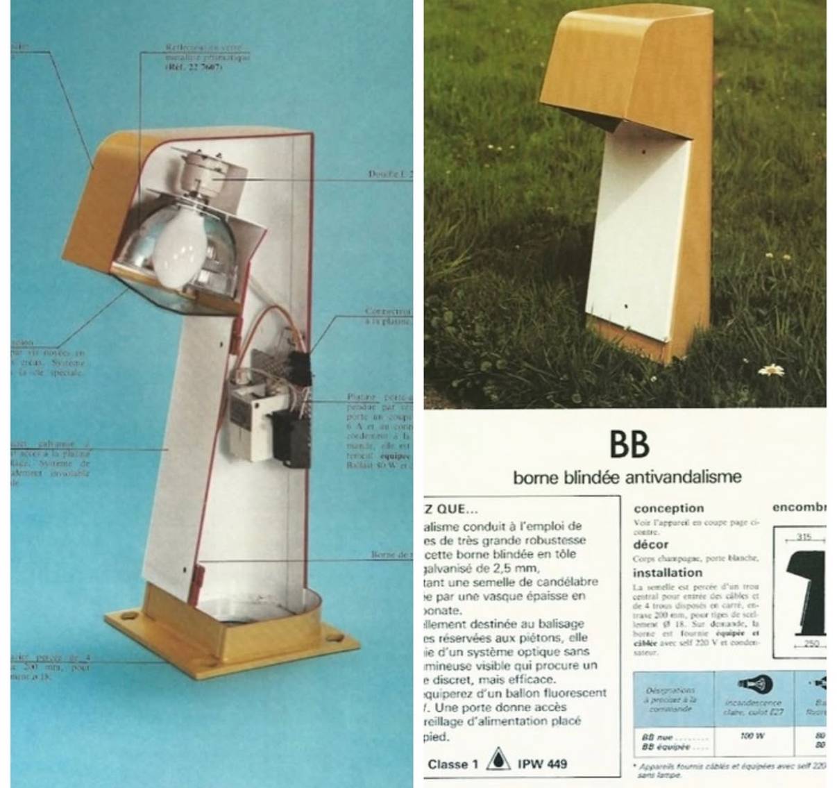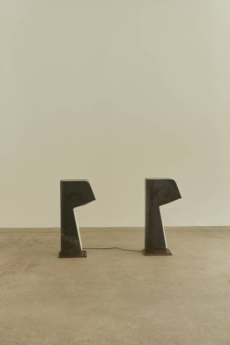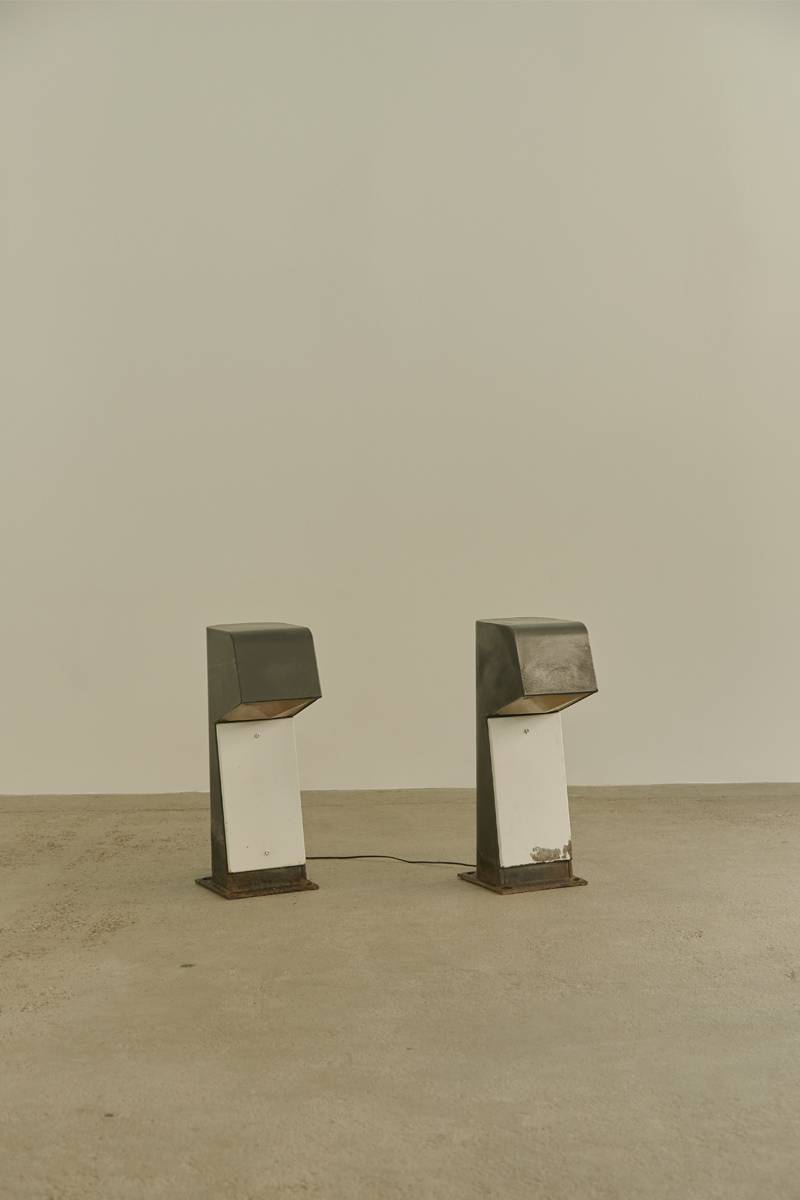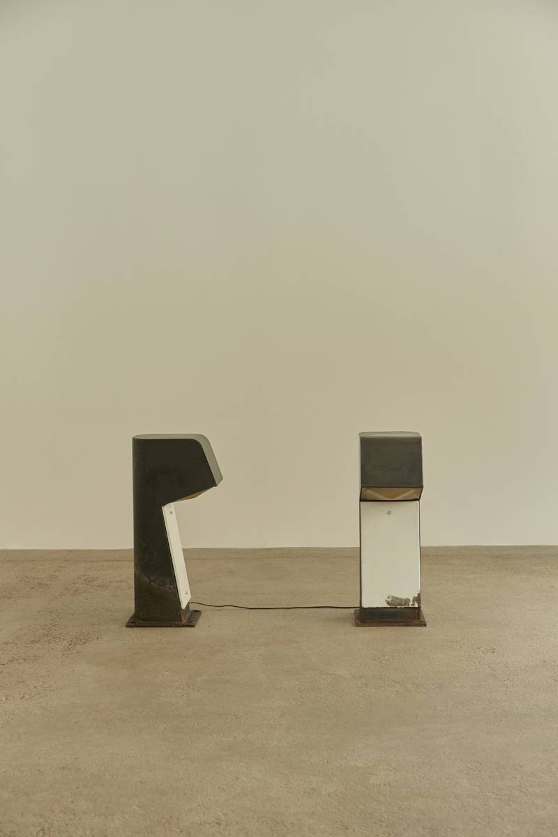 A rare pair of lighting terminals, known as Blind Bollards (BB), designed by French architect Jean Balladur.