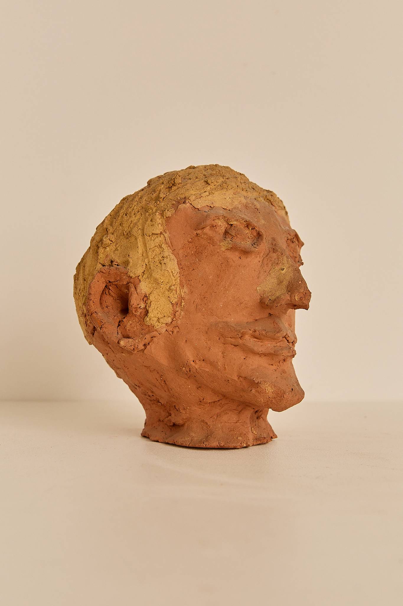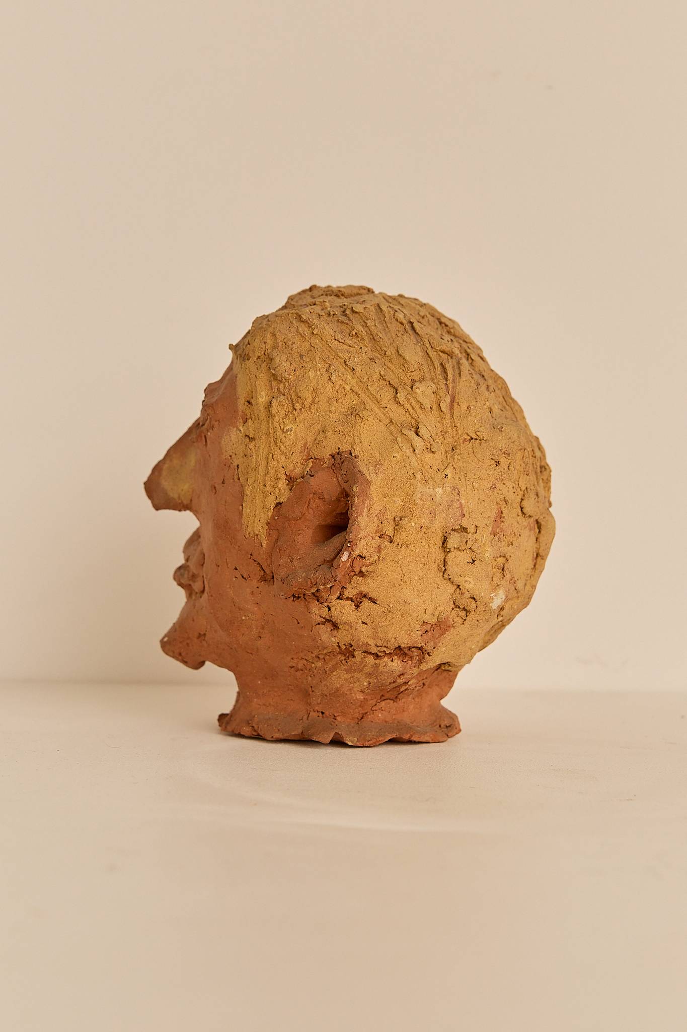 Hand-formed terracotta head with a raw, expressive texture. Imperfect and human – a one-of-a-kind piece with warmth and character.